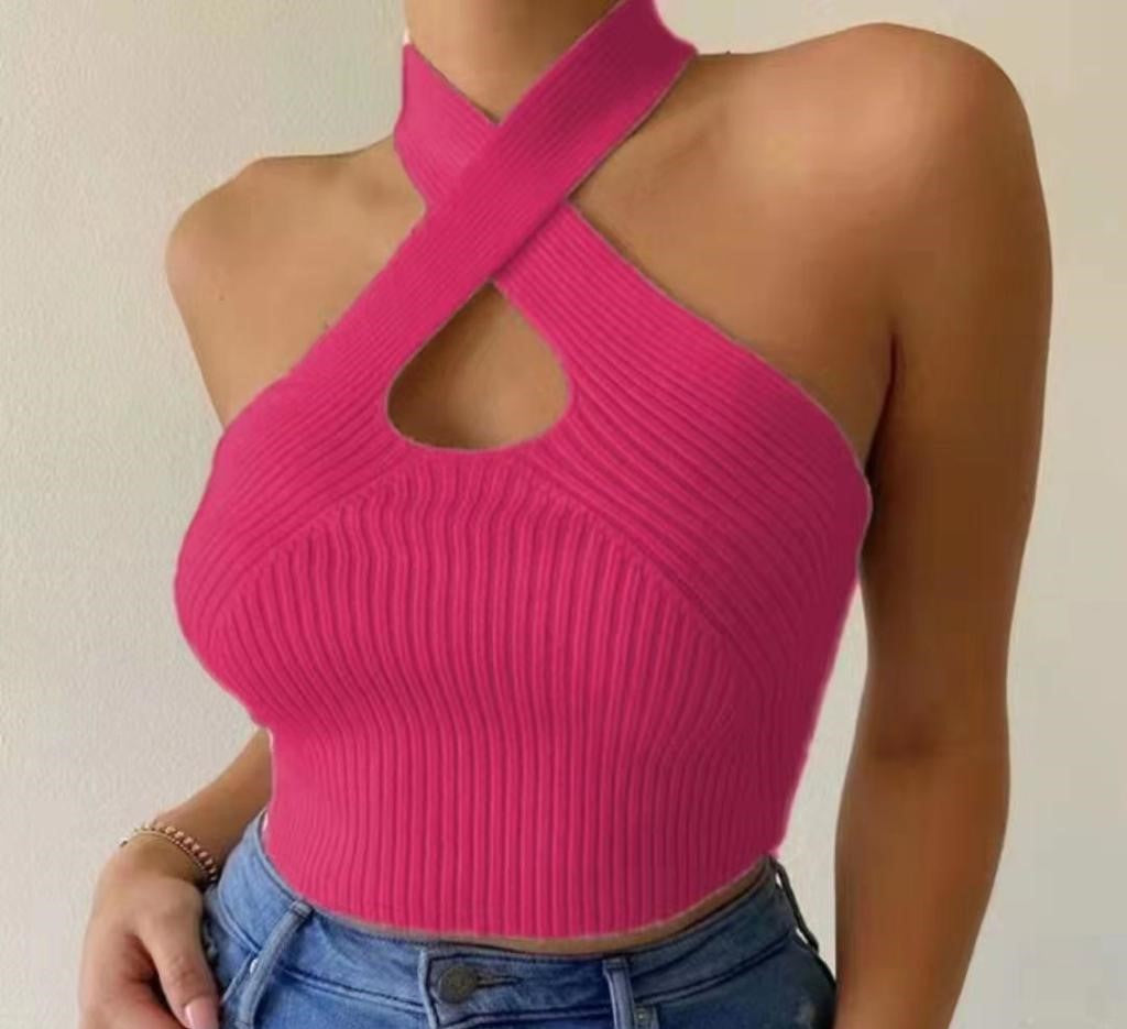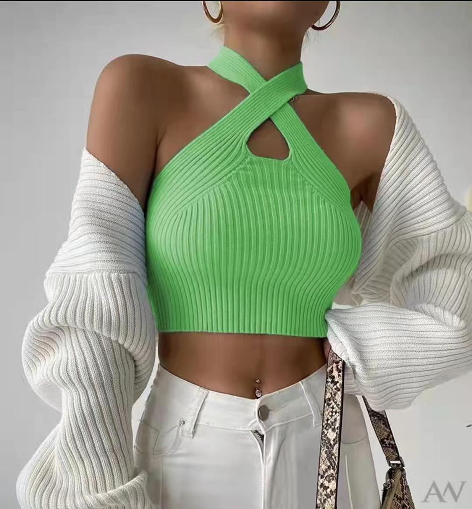 Patrón corto acanalado superior en color sólido, con cuello cruzado a la abertura cruzada y central. Glamour, para una mirada versátil y un ajuste óptimo y de moda. Fabricado en el extranjero.