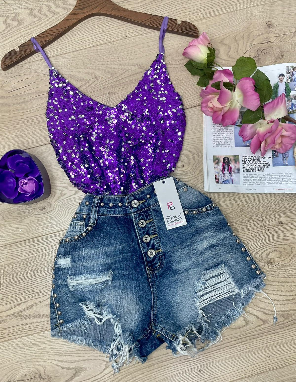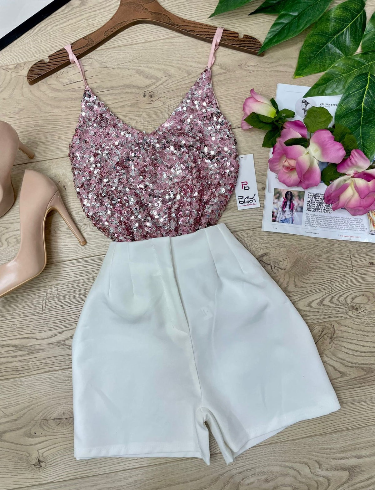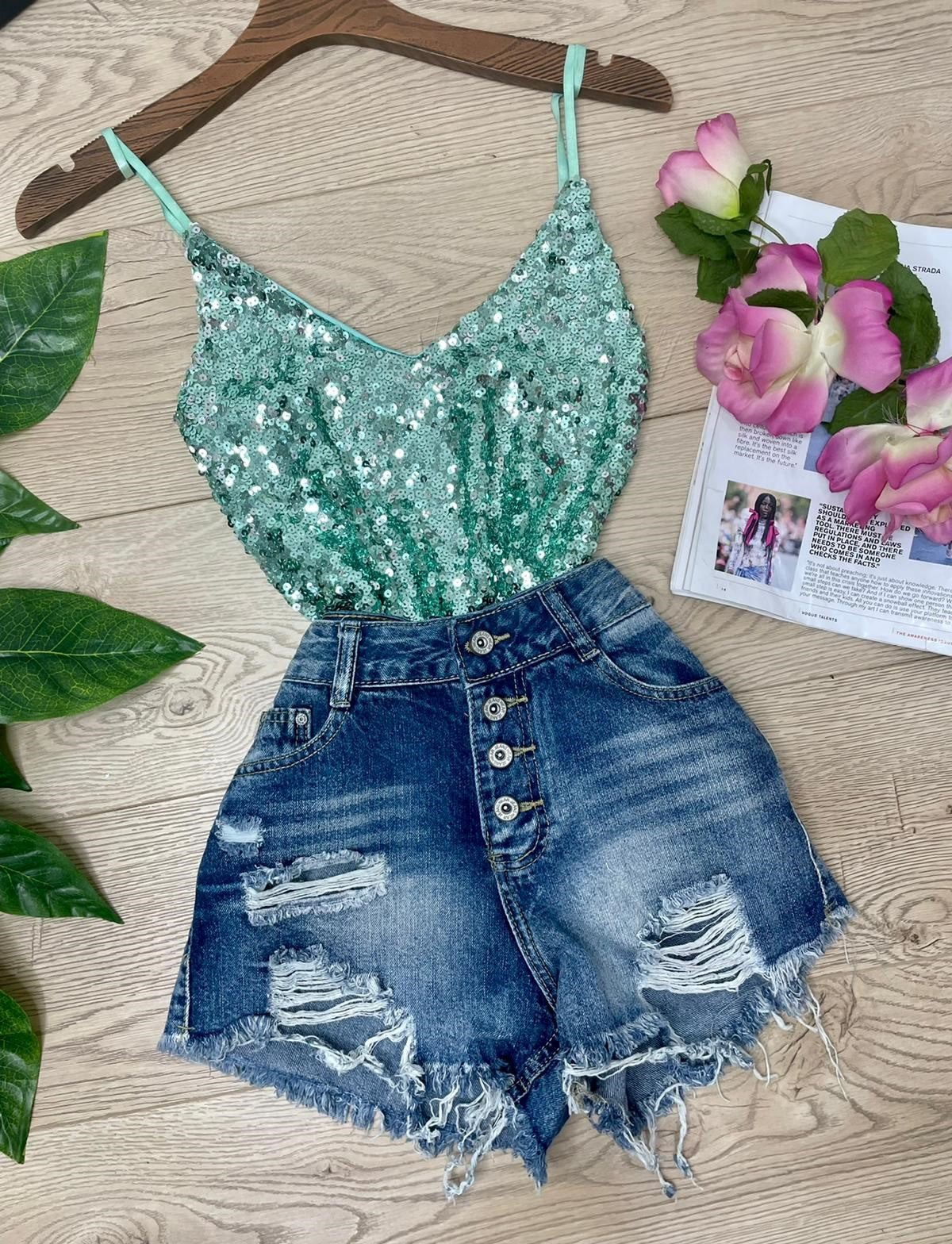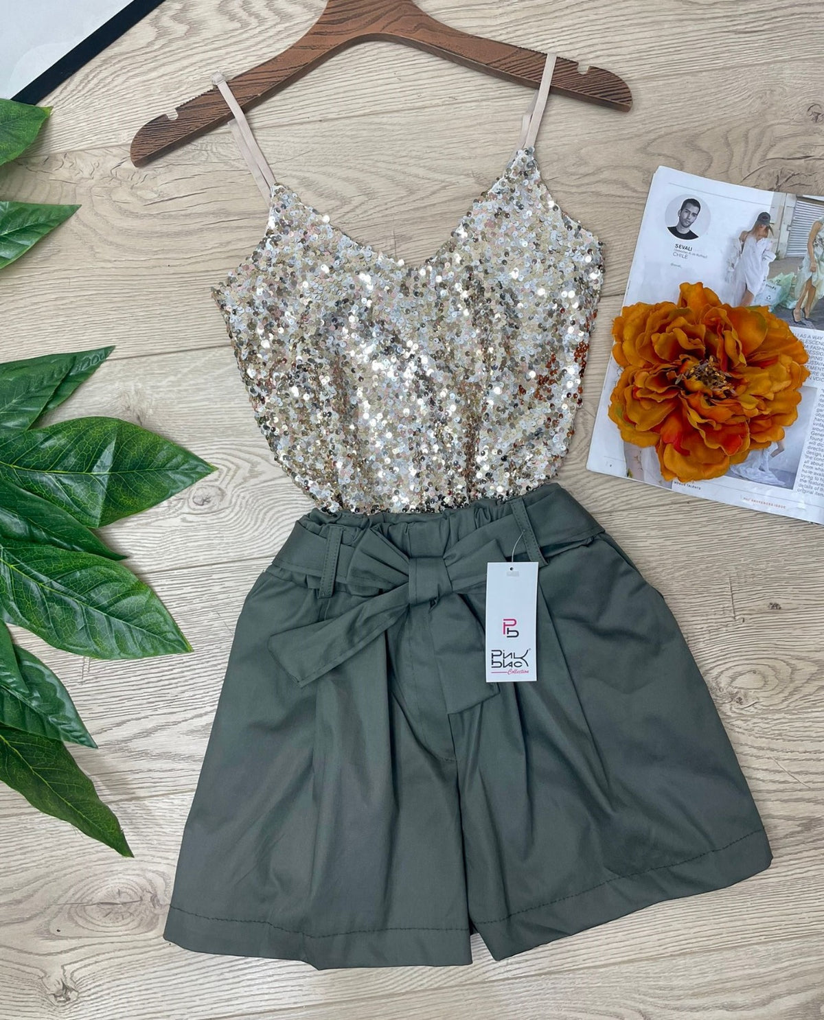 Top con paillettes e spalline regoalbili. Fabbricato all'estero.