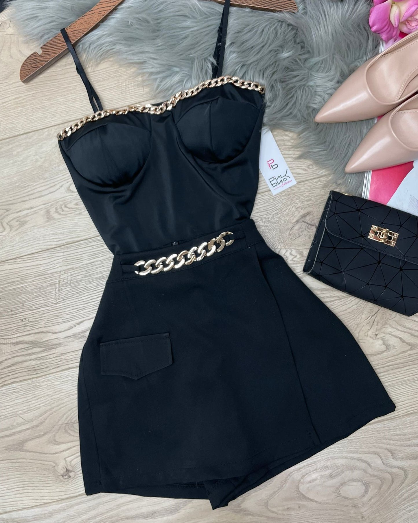 Top corsé de color sólido. Escote corazón con tazas rígidas y aplicaciones de cadena con correas delgadas y ajustables. Chic destaca la silueta y el Dèculteté por un aspecto seductor y versátil y un ajuste óptimo y de moda. Fabricado en el extranjero.