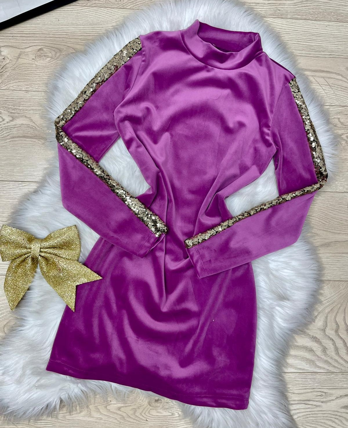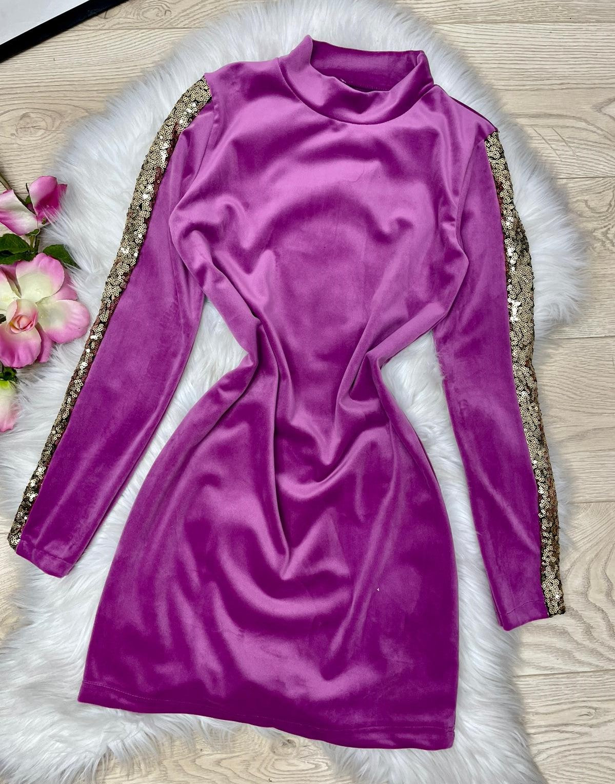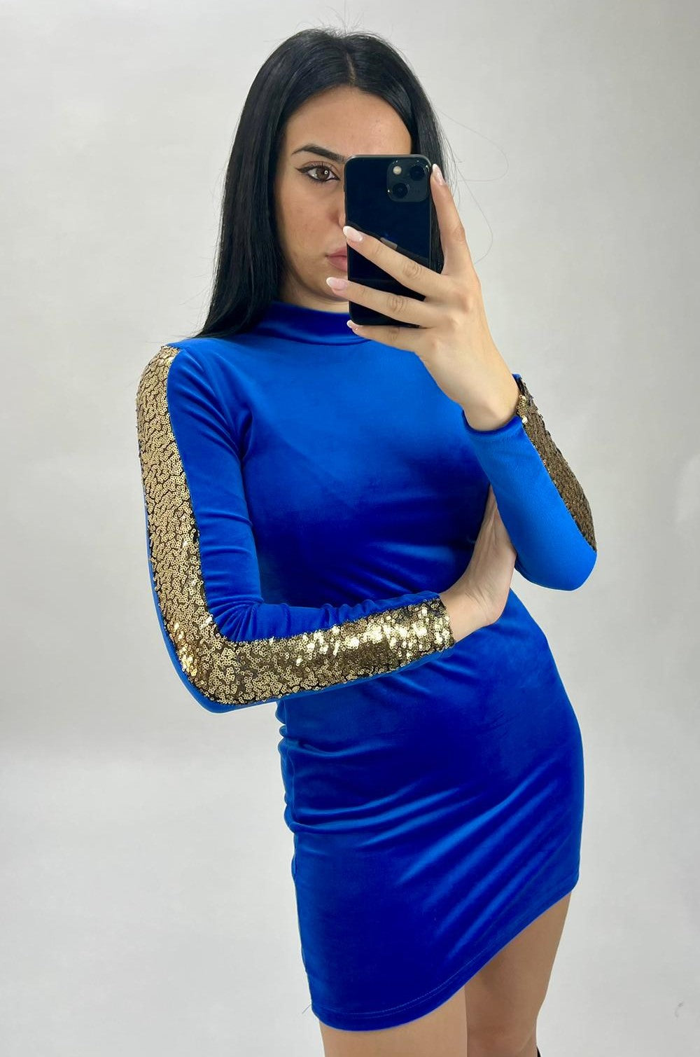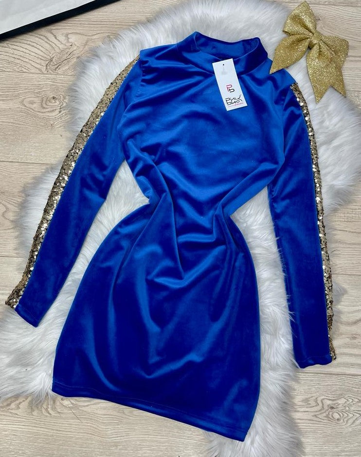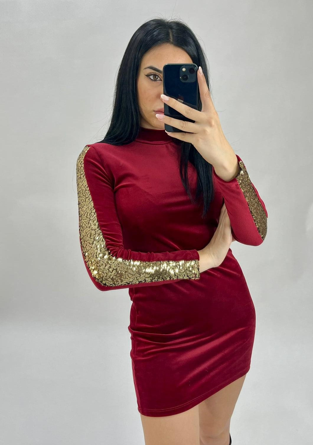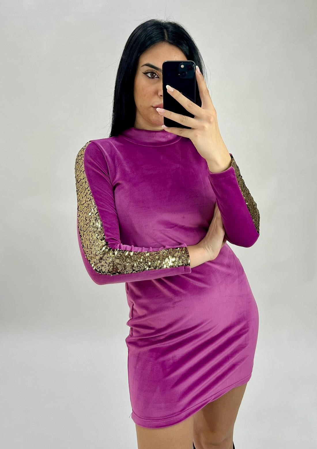 Abito in ciniglia con paillettes nelle maniche. Fabbricato in Italia.