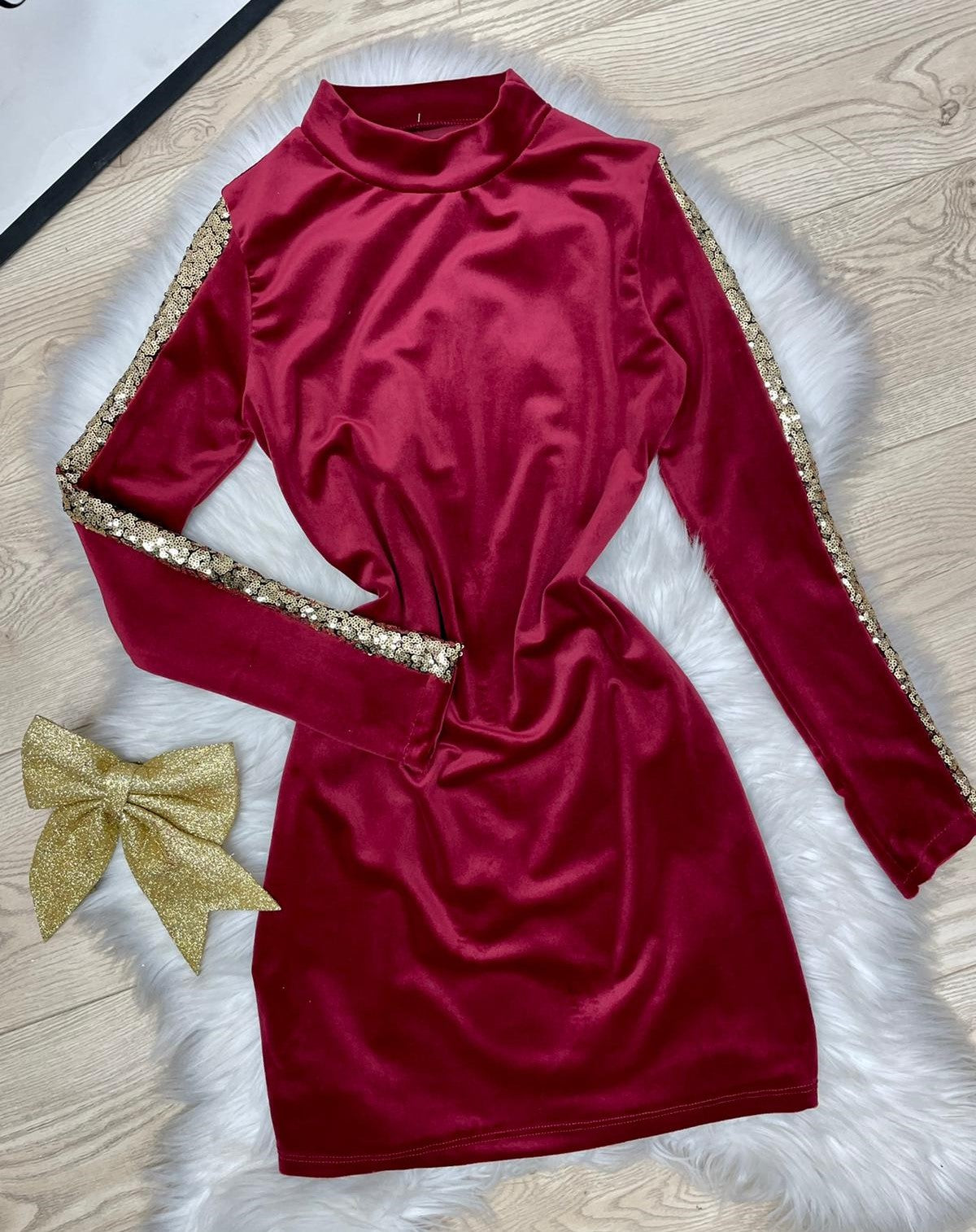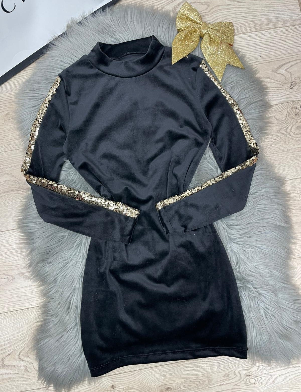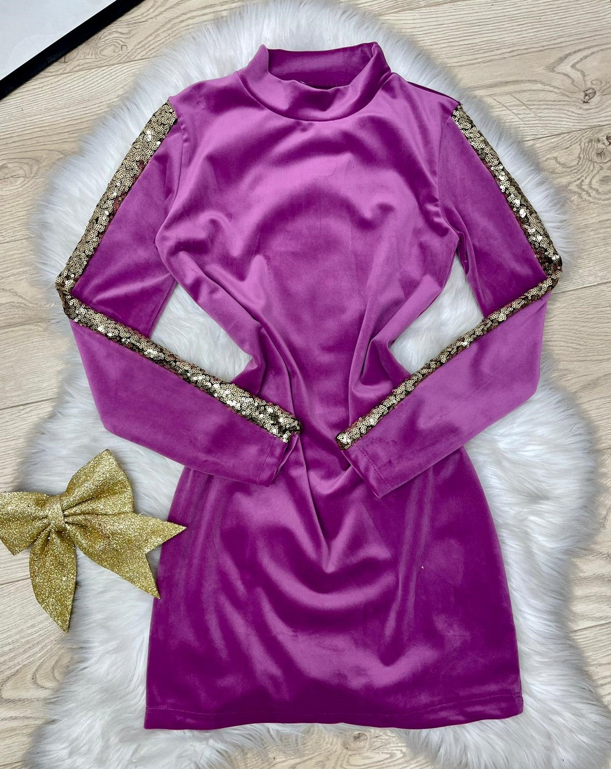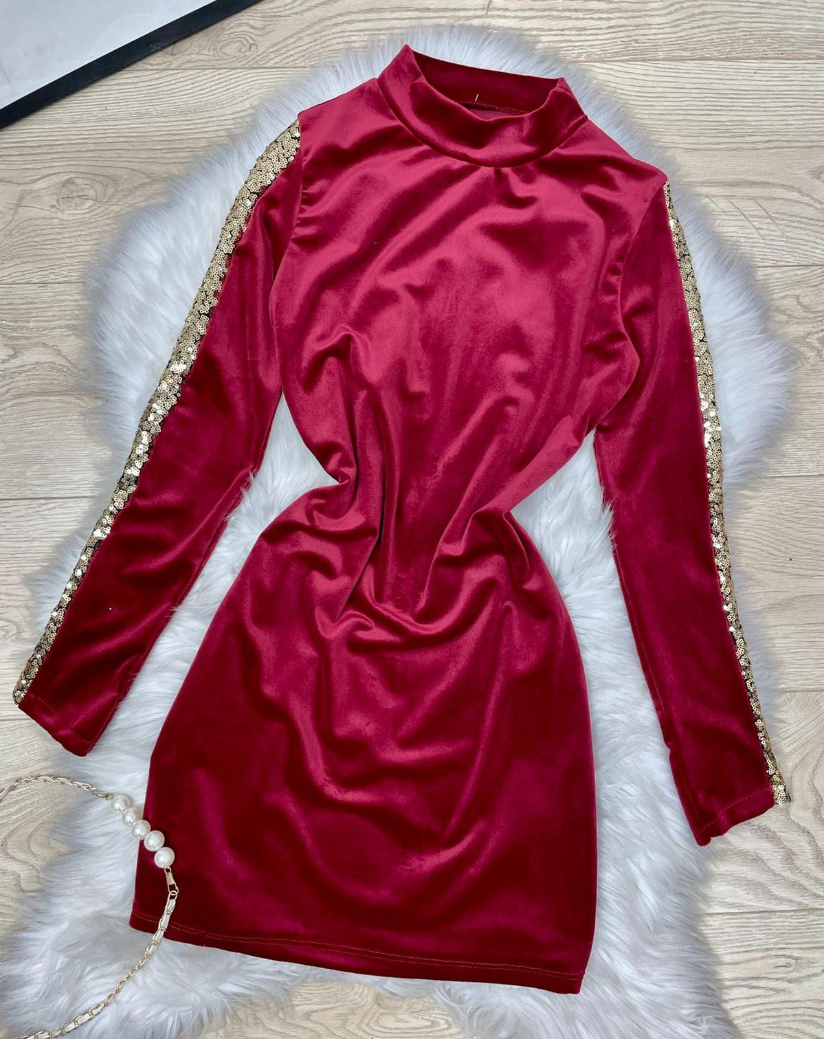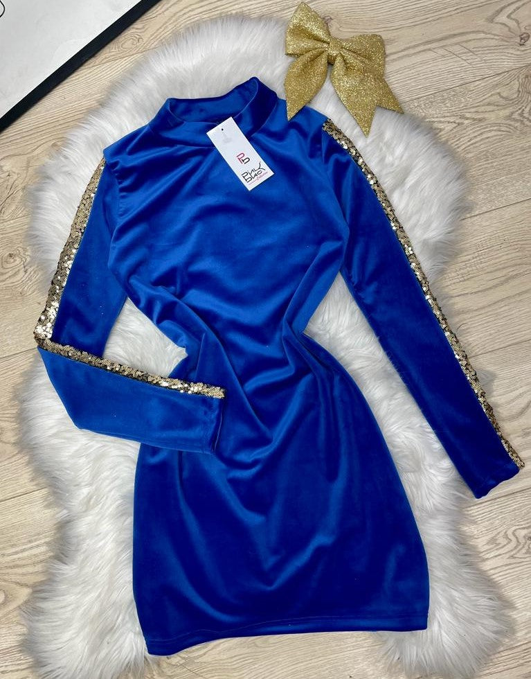 Abito in ciniglia con paillettes nelle maniche. Fabbricato in Italia.