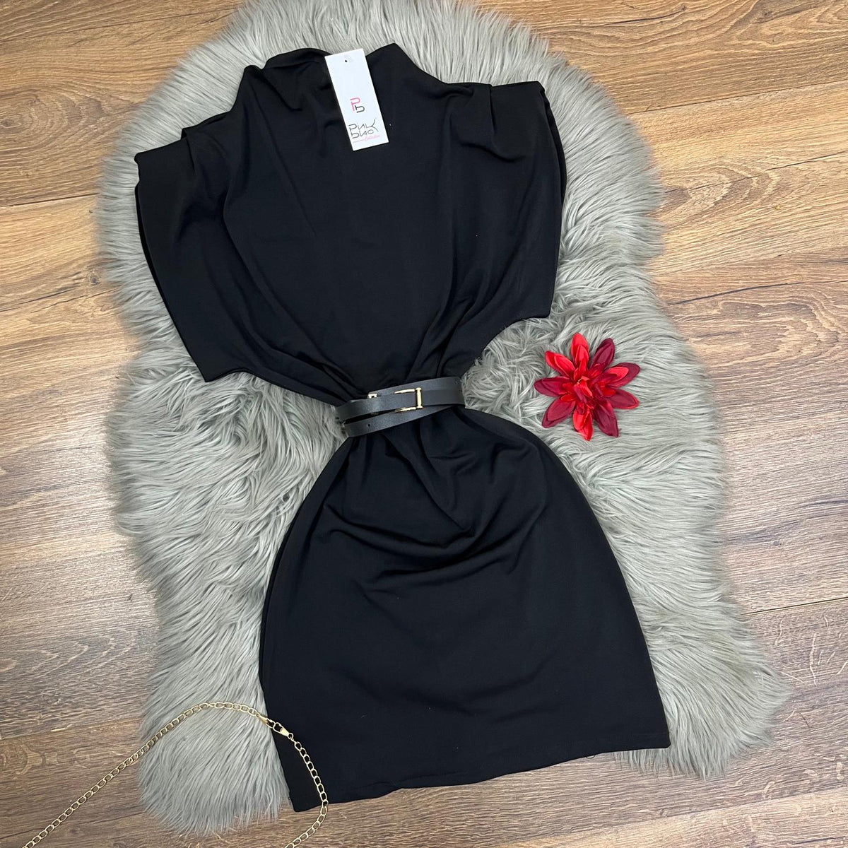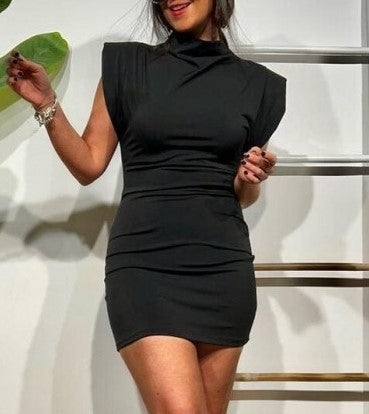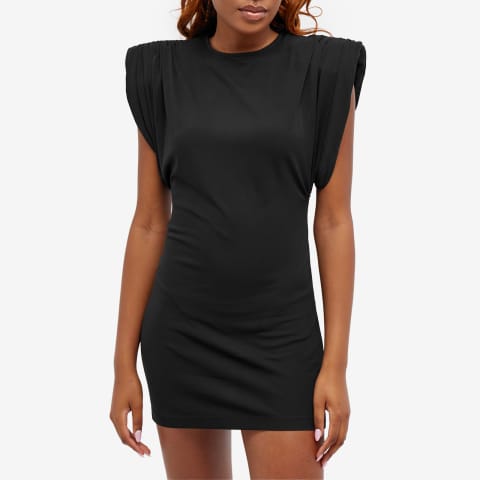 Abito in tessuto strutturato con spalline imbottite. Fabbricato in Italia.