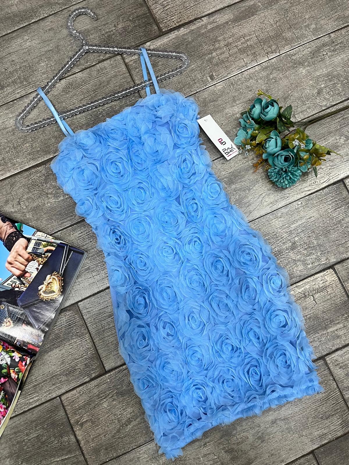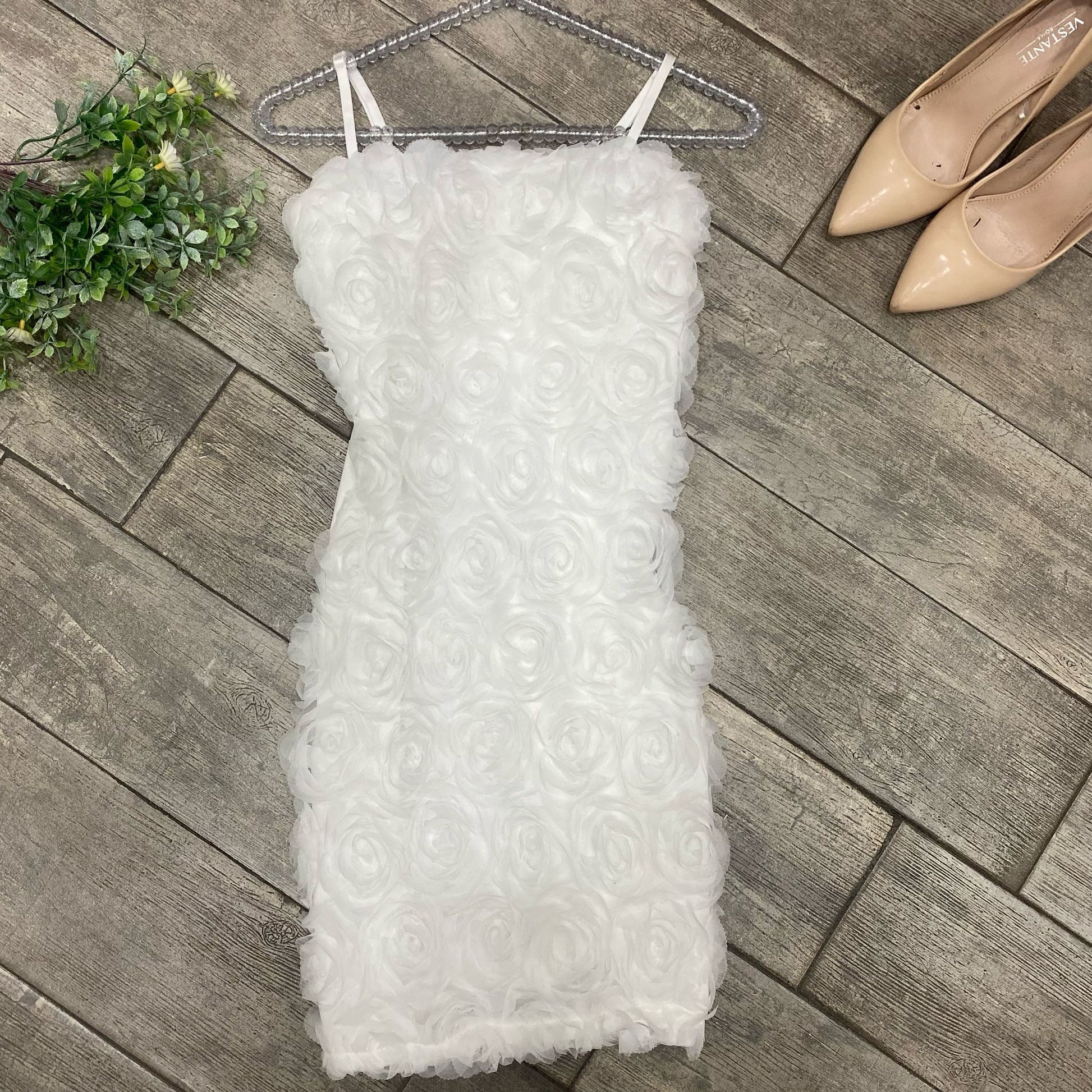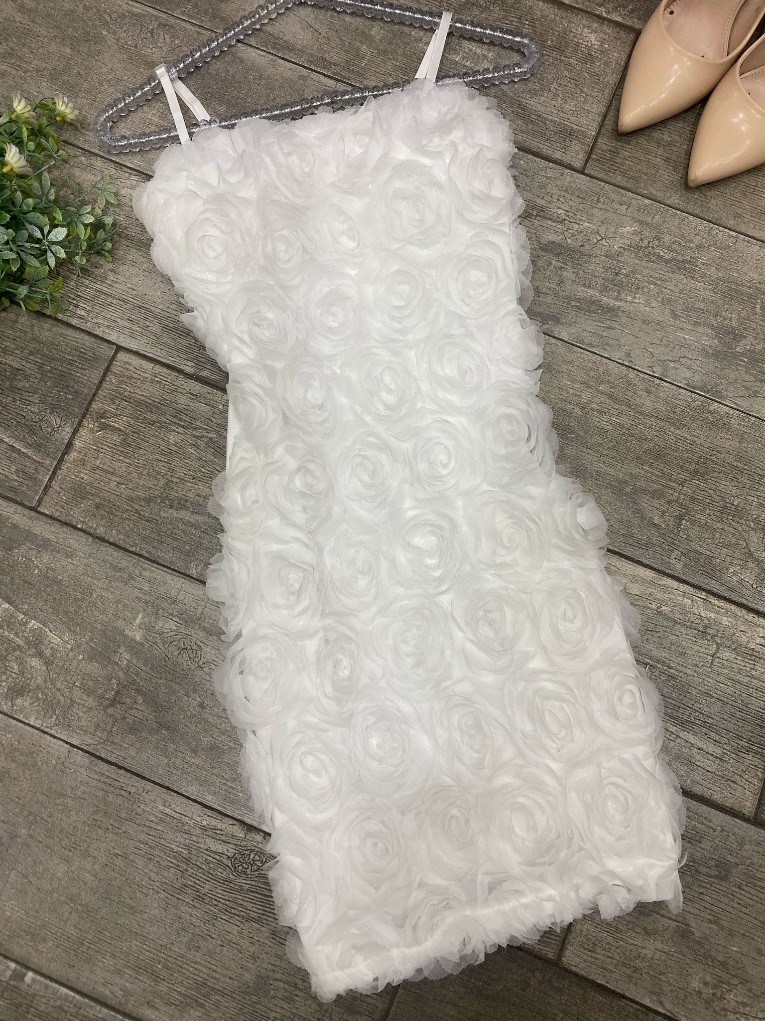 Abito ricoperto di rose in tulle in rilievo , effetto raso sul retro