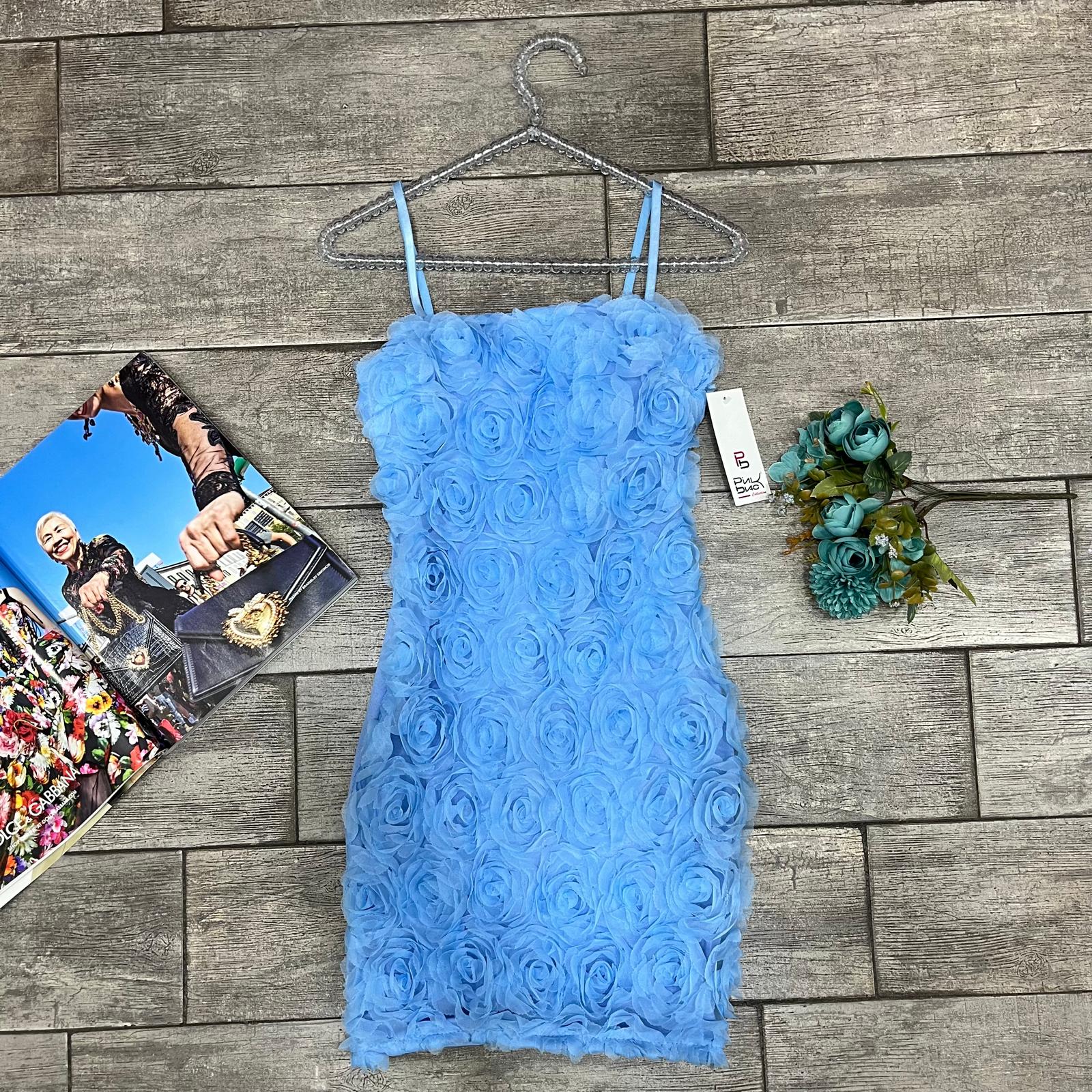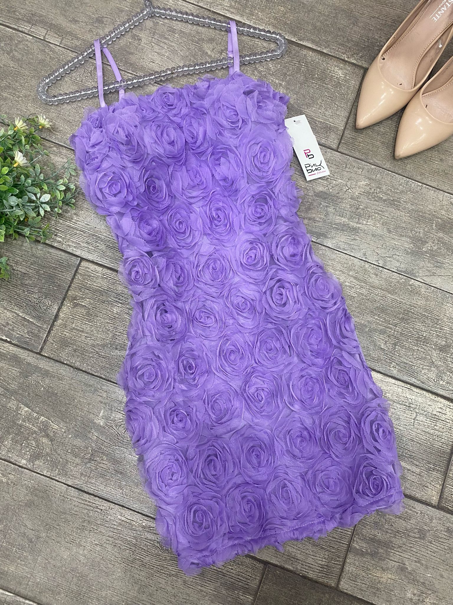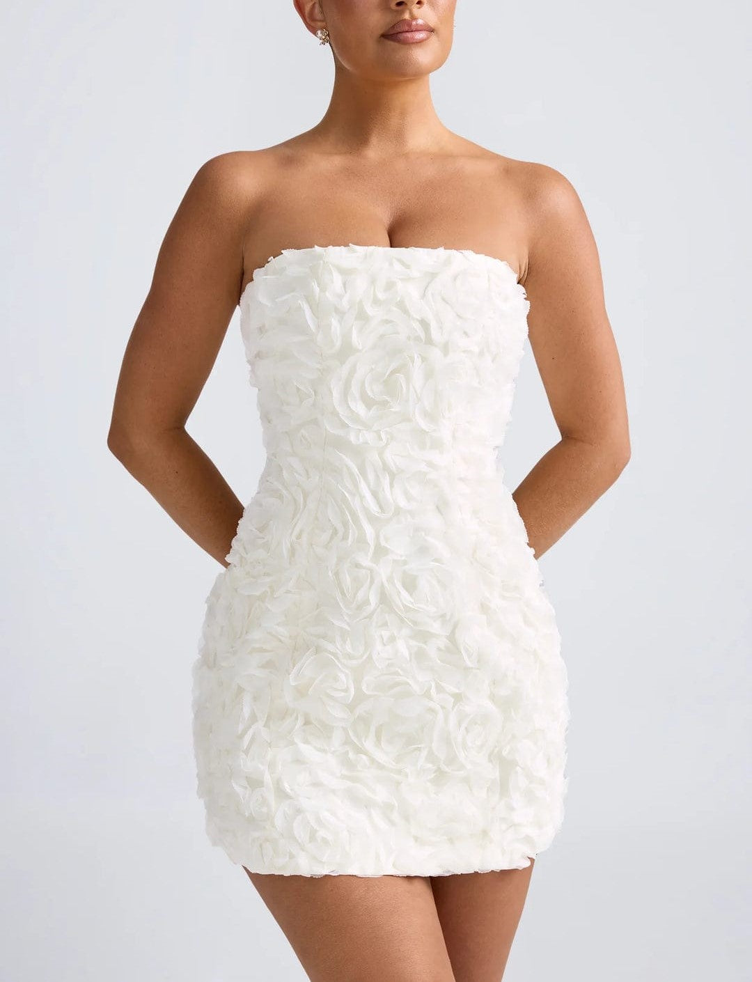 Abito ricoperto di rose in tulle in rilievo , effetto raso sul retro