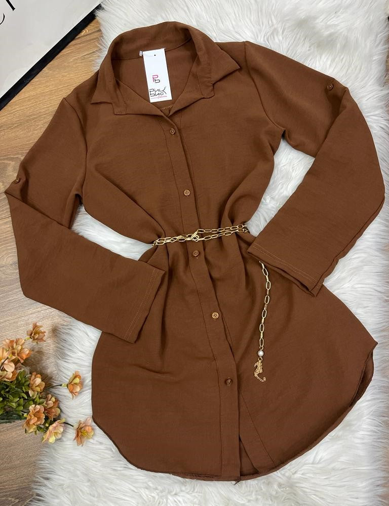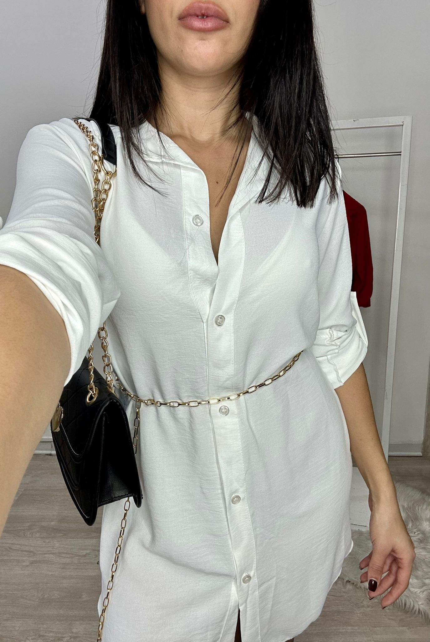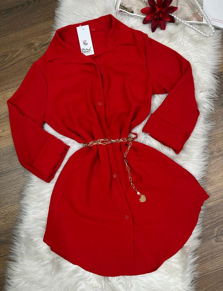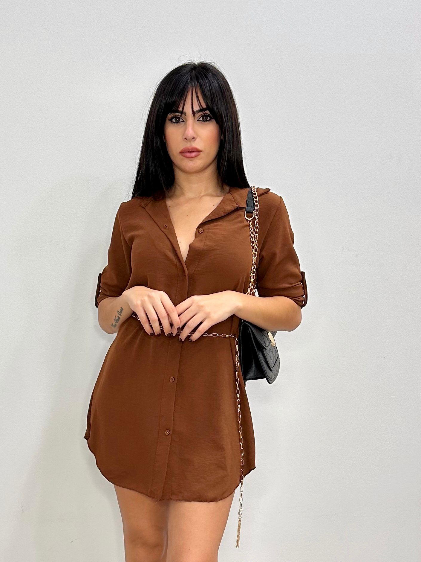 Abito modello camicione in leggero tessuto strutturato con cinturino incluso. Fabbricato in Italia.