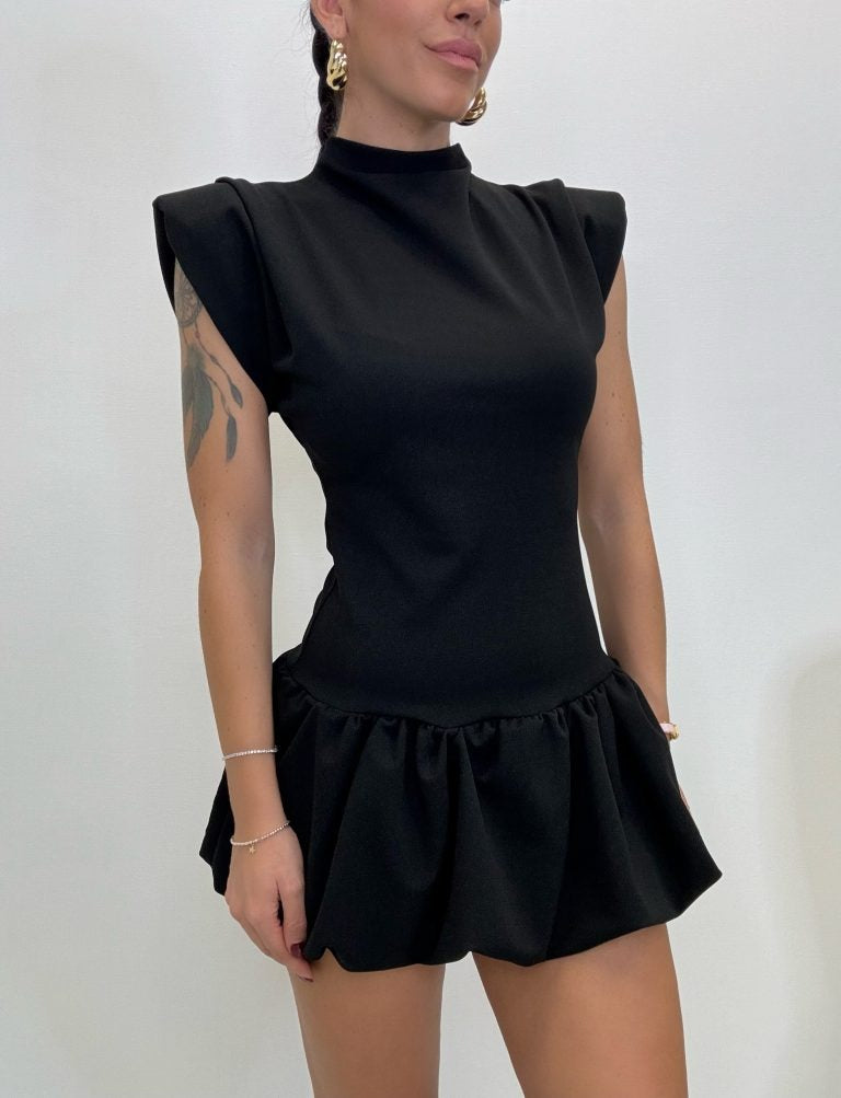 Abito in tessuto strutturato aderente , con orlo a palloncino.