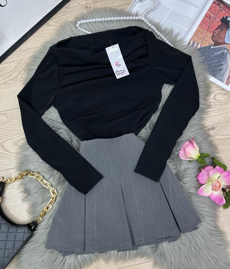 Body in tessuto strutturato con ganci sul cavallo. Fabbricato in Italia.