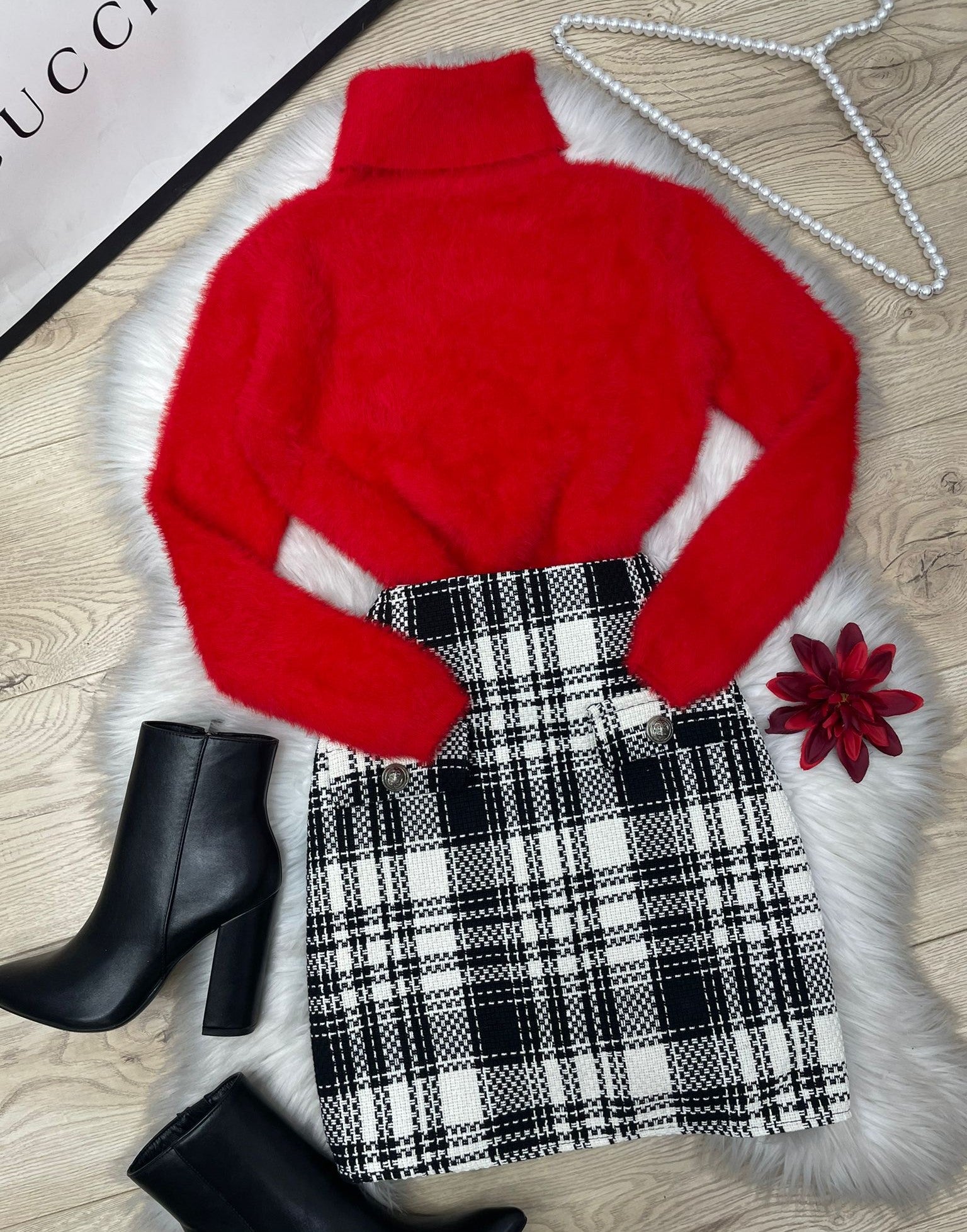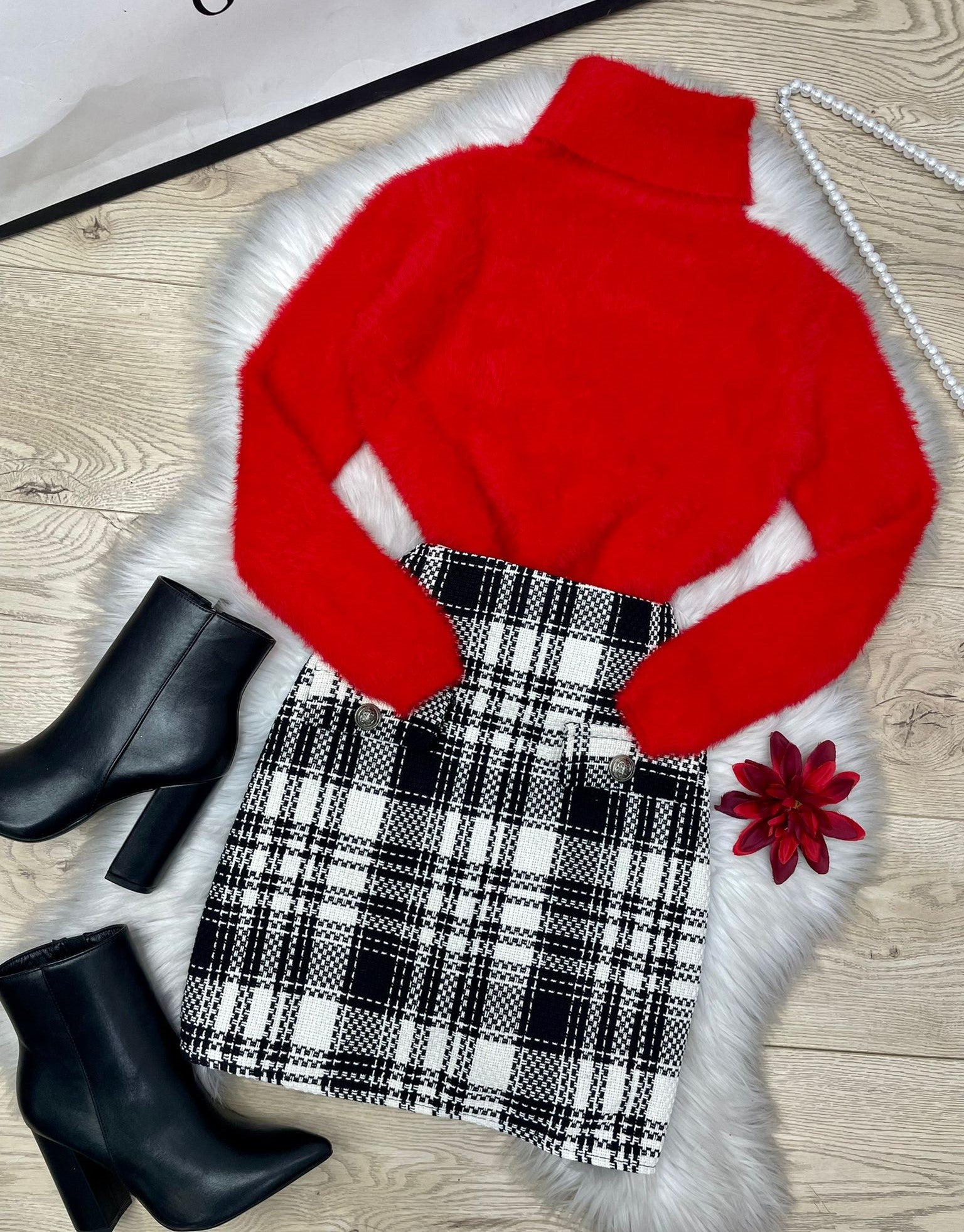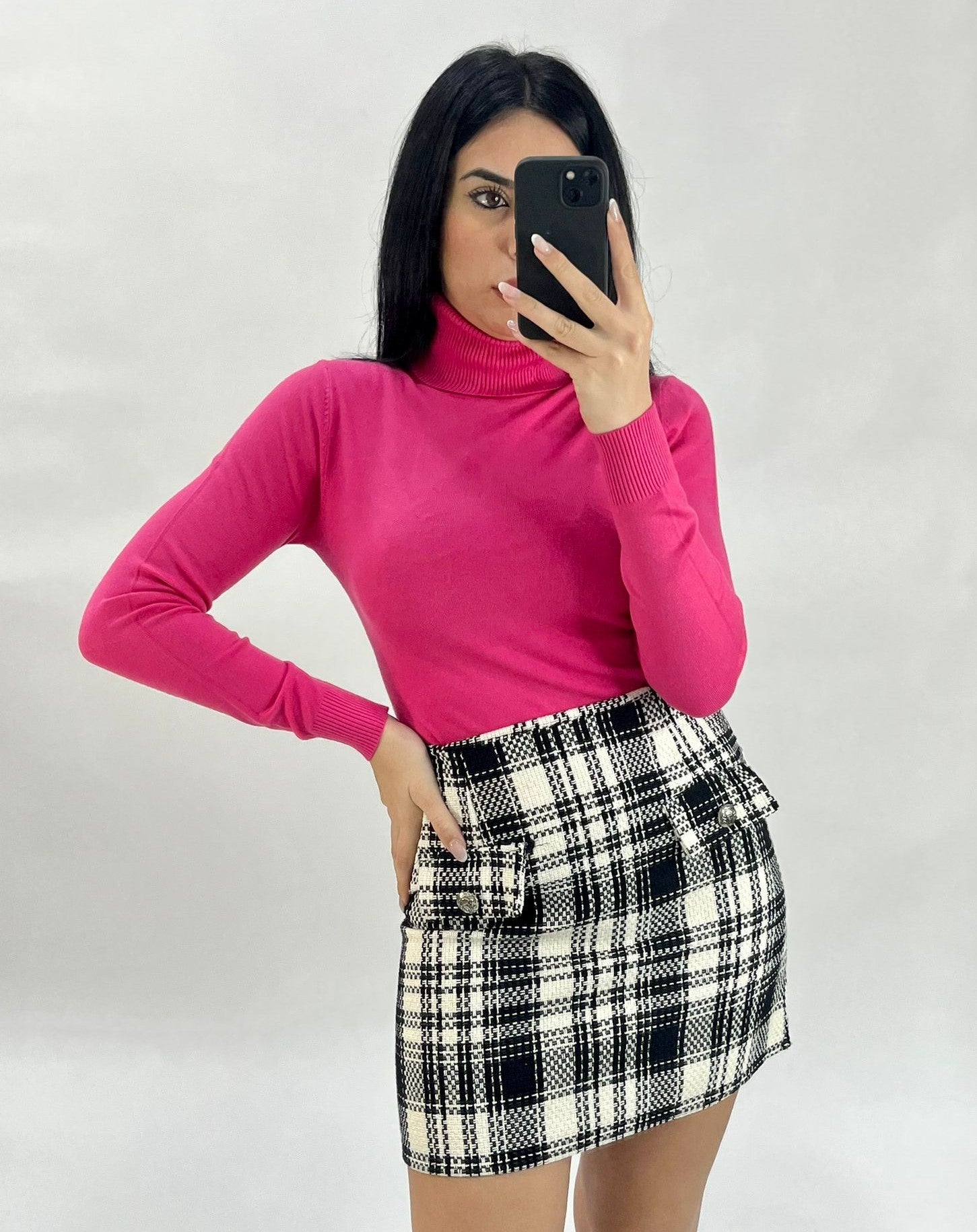 Gonna a vita alta con fantasia tartan, tasche estetiche e cerniera. La vestibilità delle taglie risulta regolare. Fabbricato in Italia.