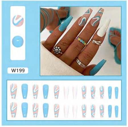 Kit con unghia, colla, adesivi, limetta e bastoncino spingi cuticole.