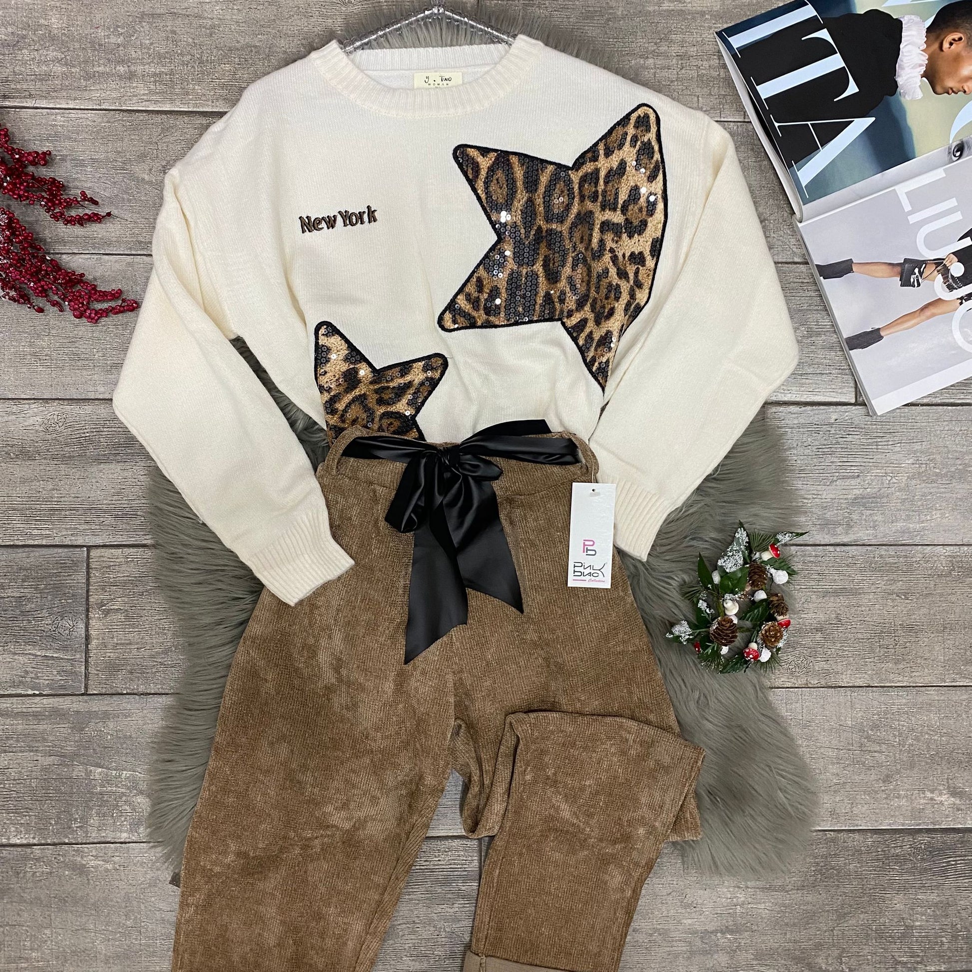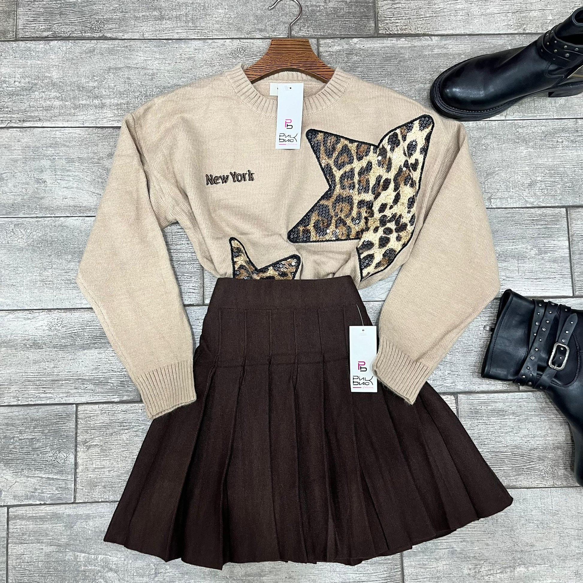 Maglioncino a girocollo con design ricamato di paillettes con fantasia animalier.