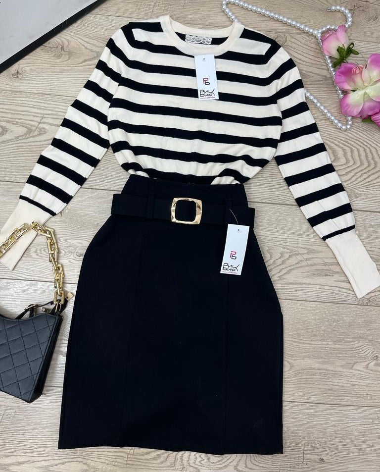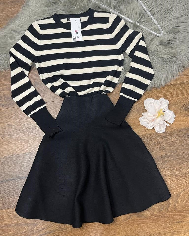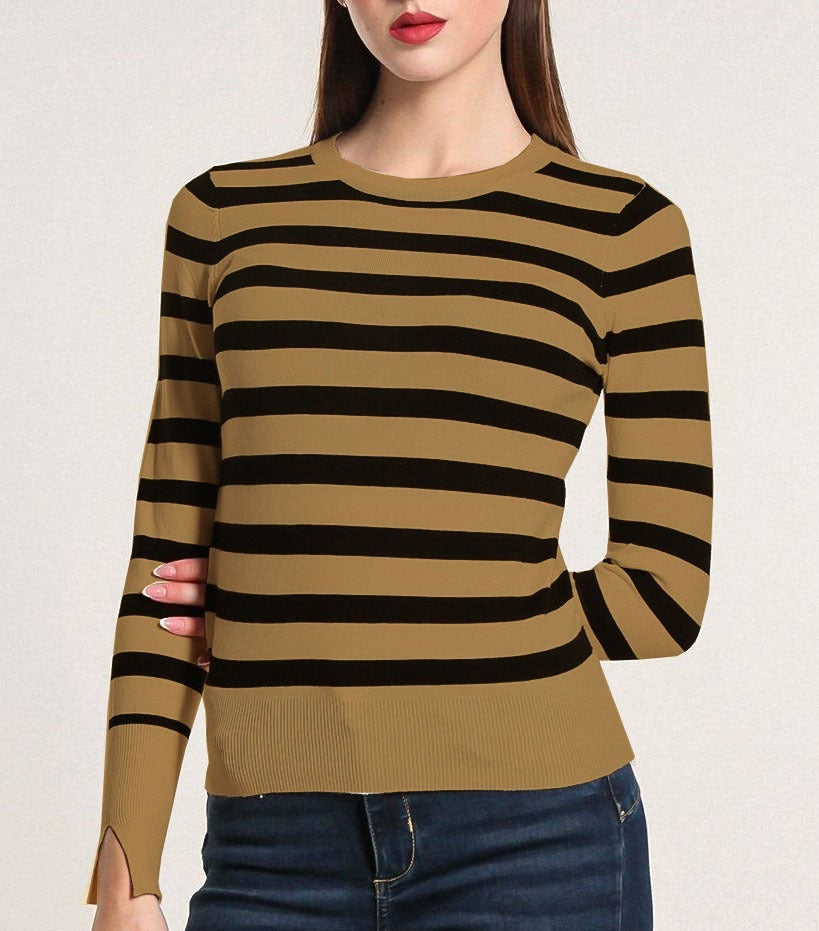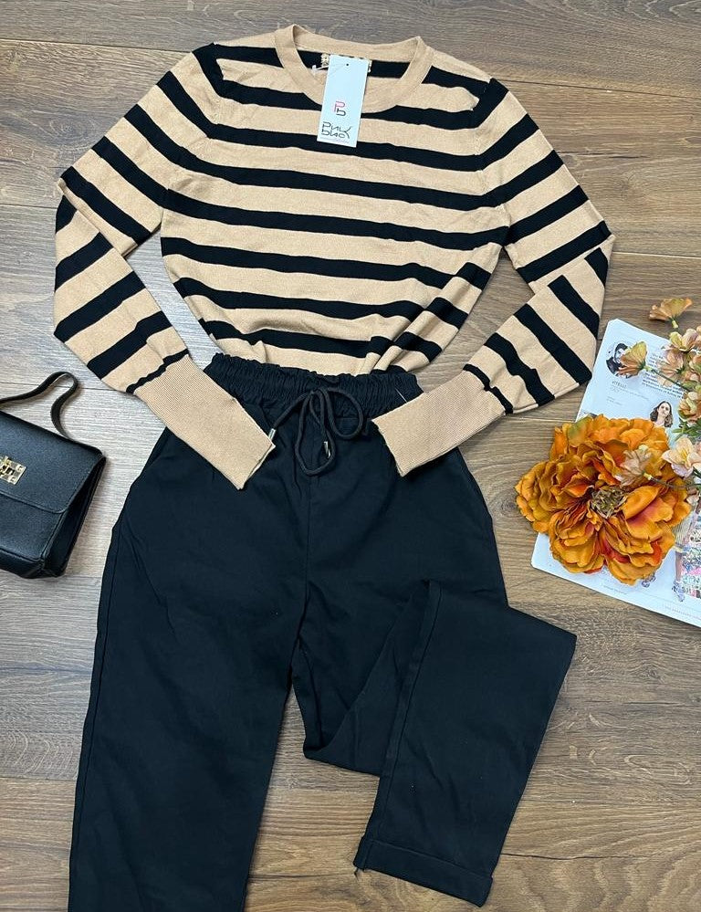 Maglioncino in viscosa con design a righe. Fabbricato all'estero.
