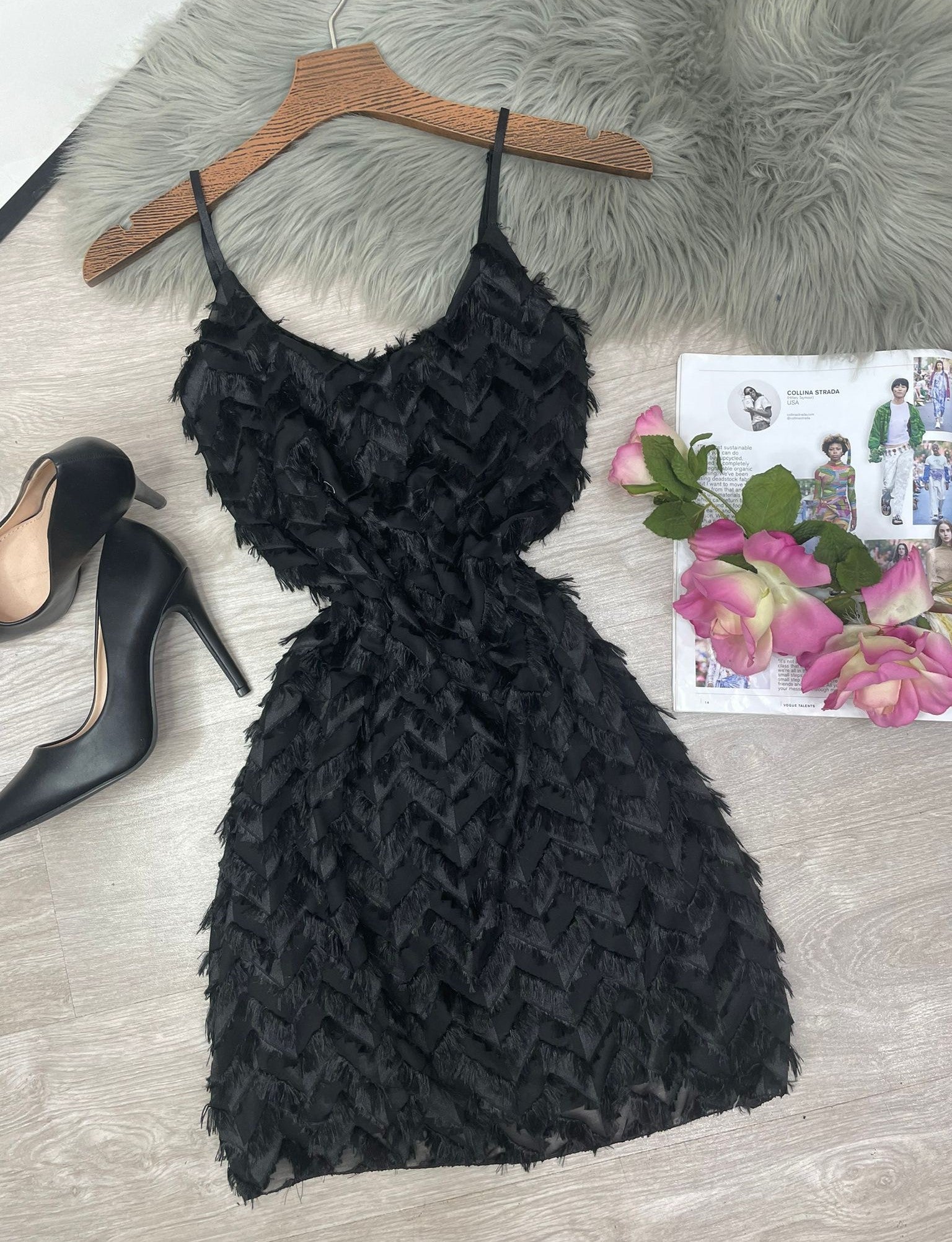 Abito in tessuto con frange e spalline regolabili. Fabbricato all'estero.
