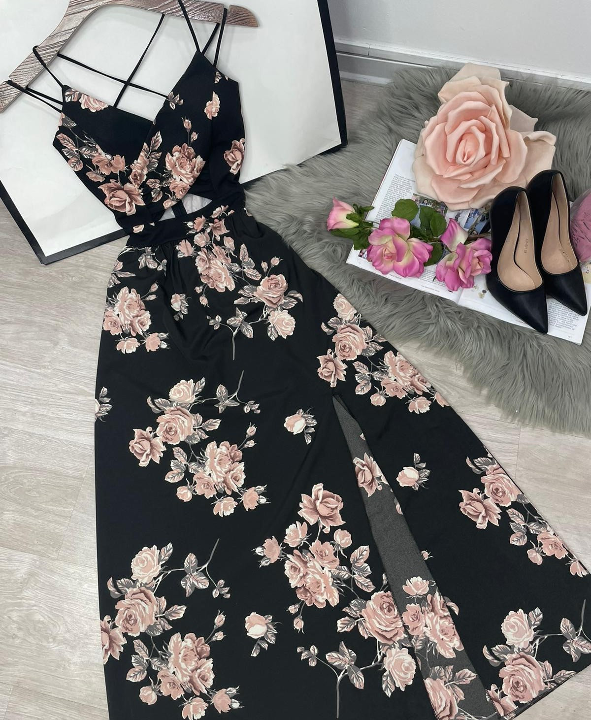 Abito in tessuto scuba crepe nel corpetto e leggero tessuto strutturato nella gonna con fantasia floreale, apertura centrale, elastico in vita, spacco laterale e chiusura con cerniera. Fabbricato in Italia.