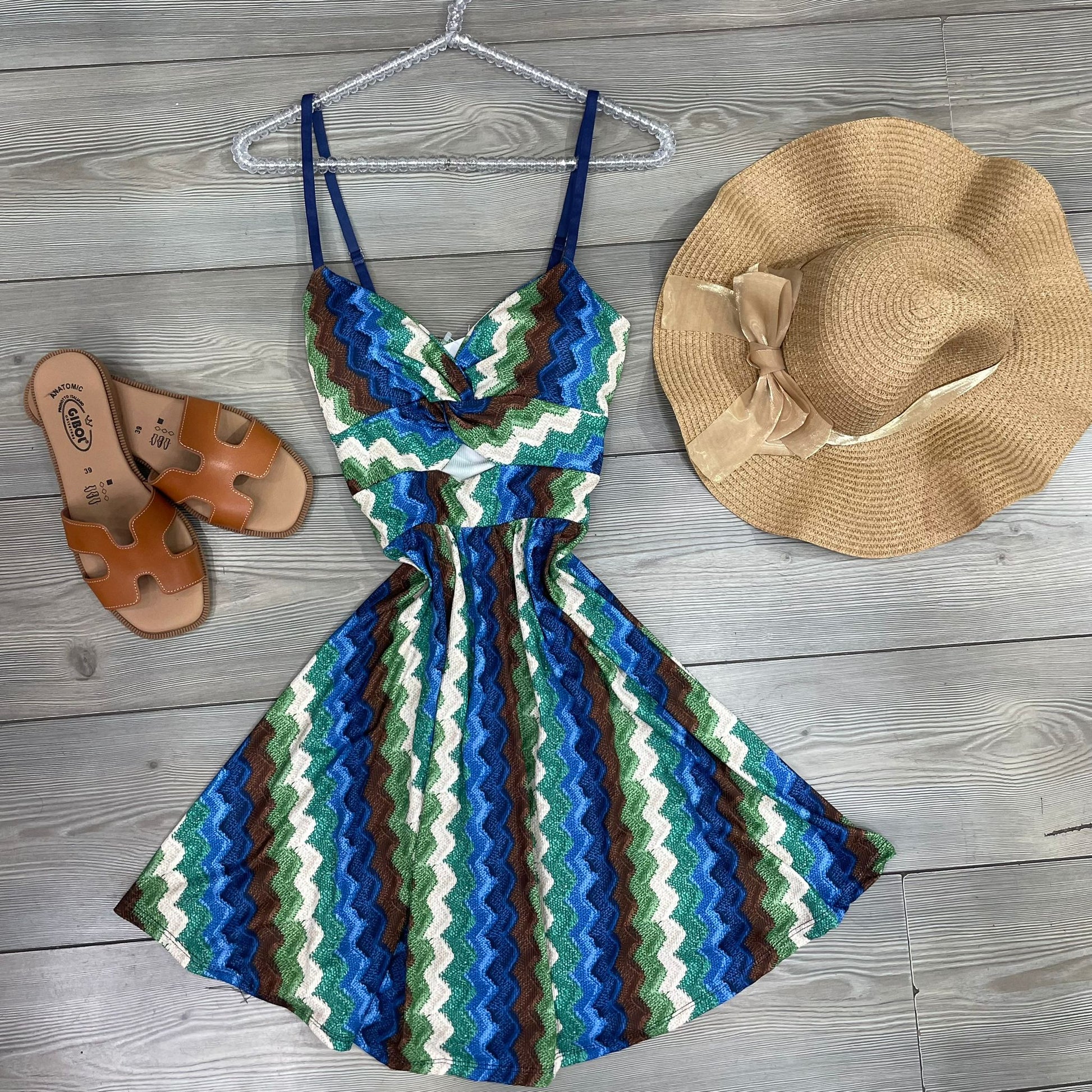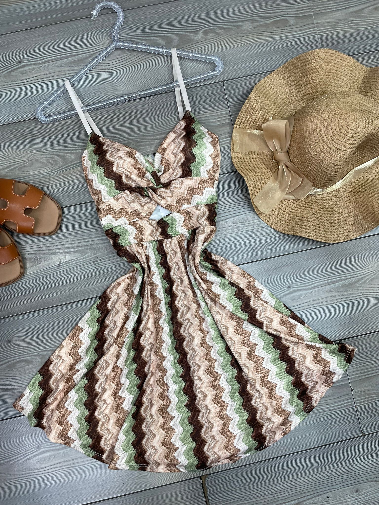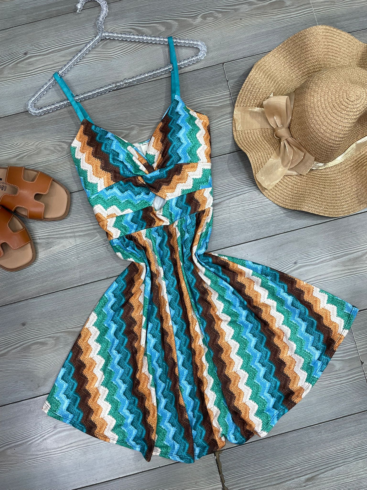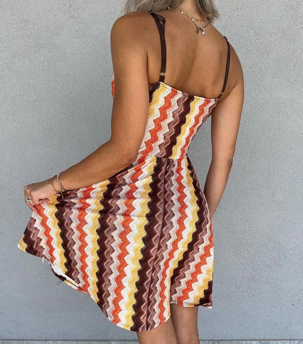 Abito in tessuto strutturato con fantasia astratta , modello morbido e spalline regolabili