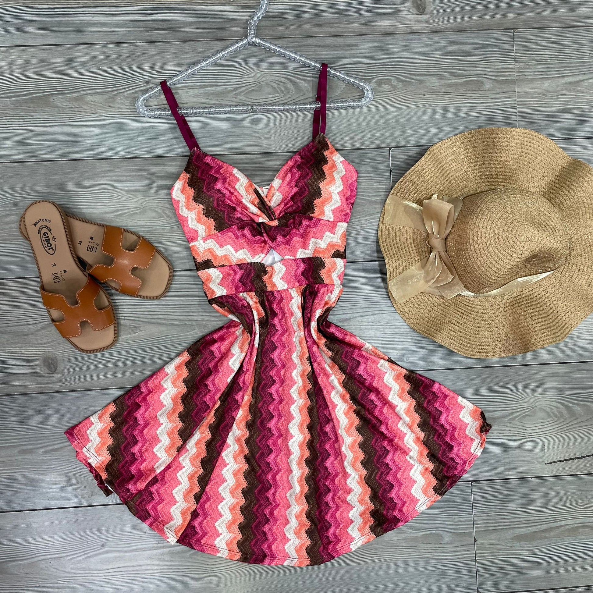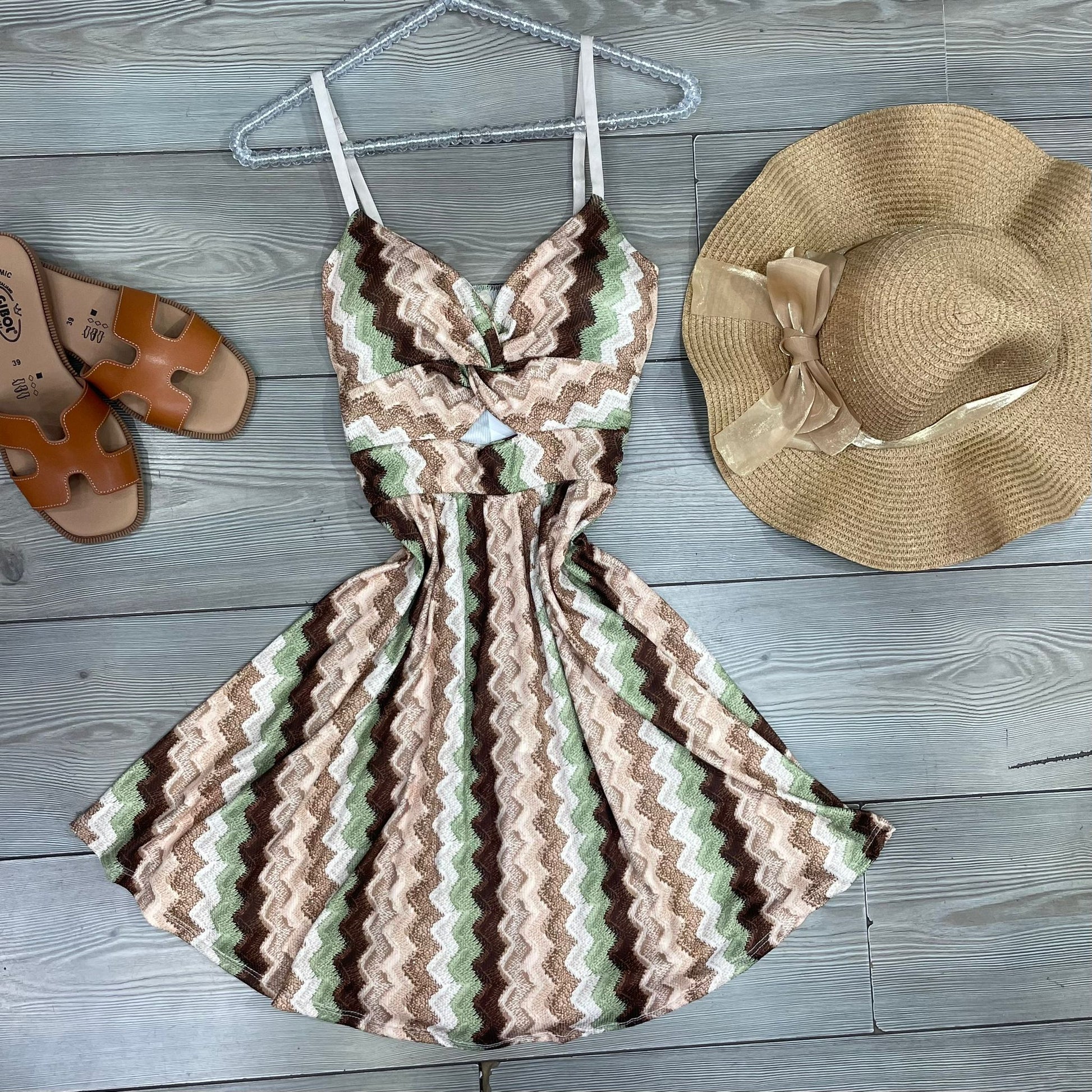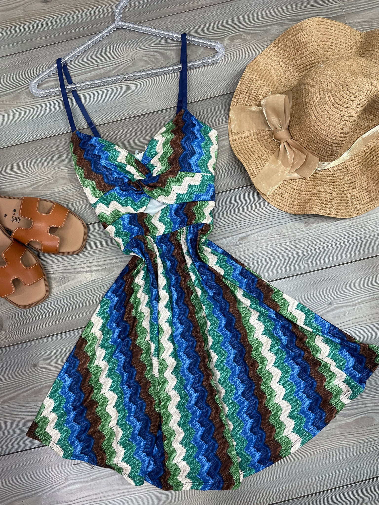 Abito in tessuto strutturato con fantasia astratta , modello morbido e spalline regolabili