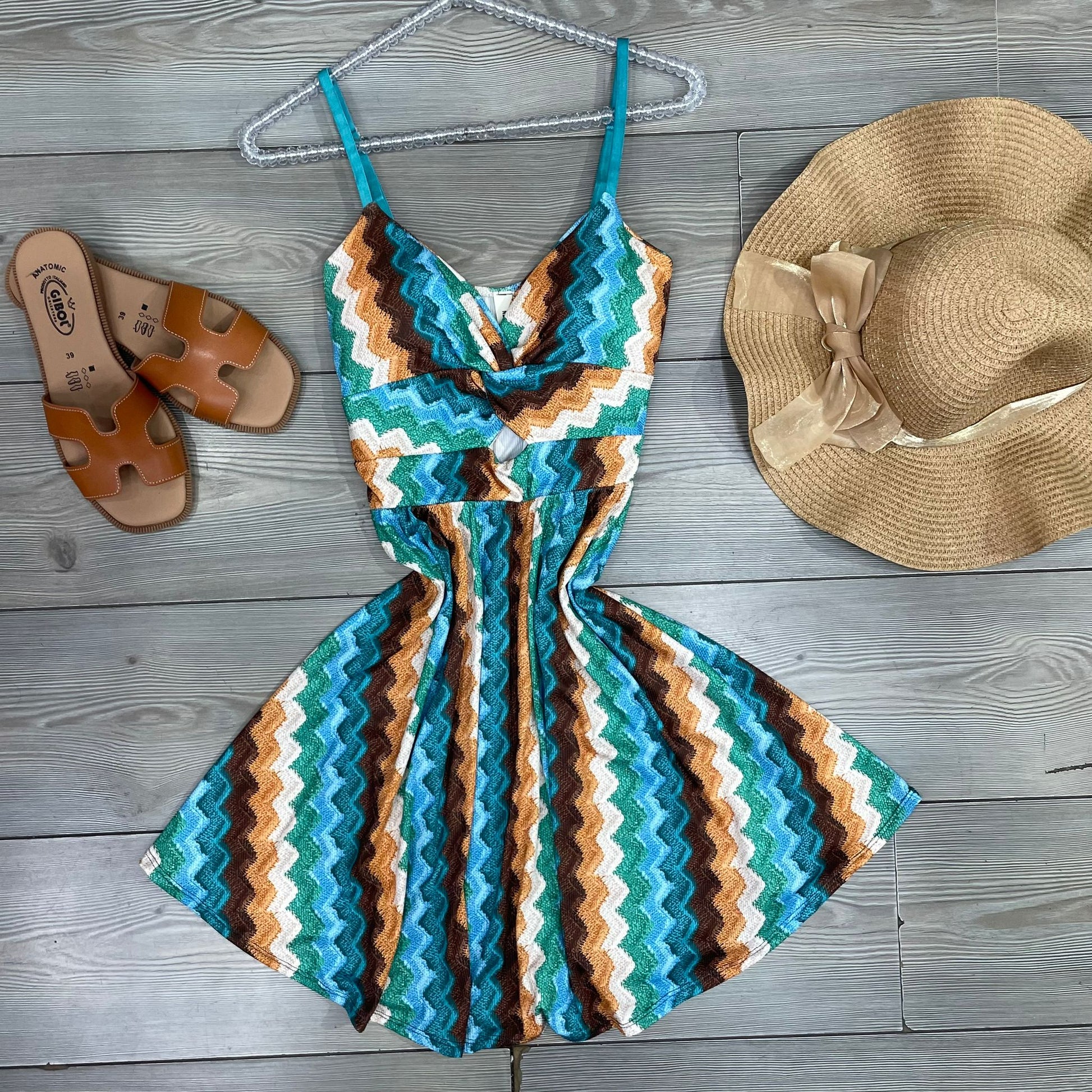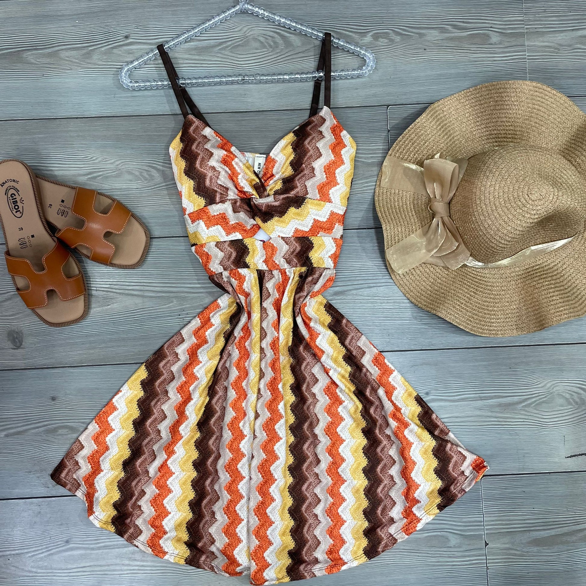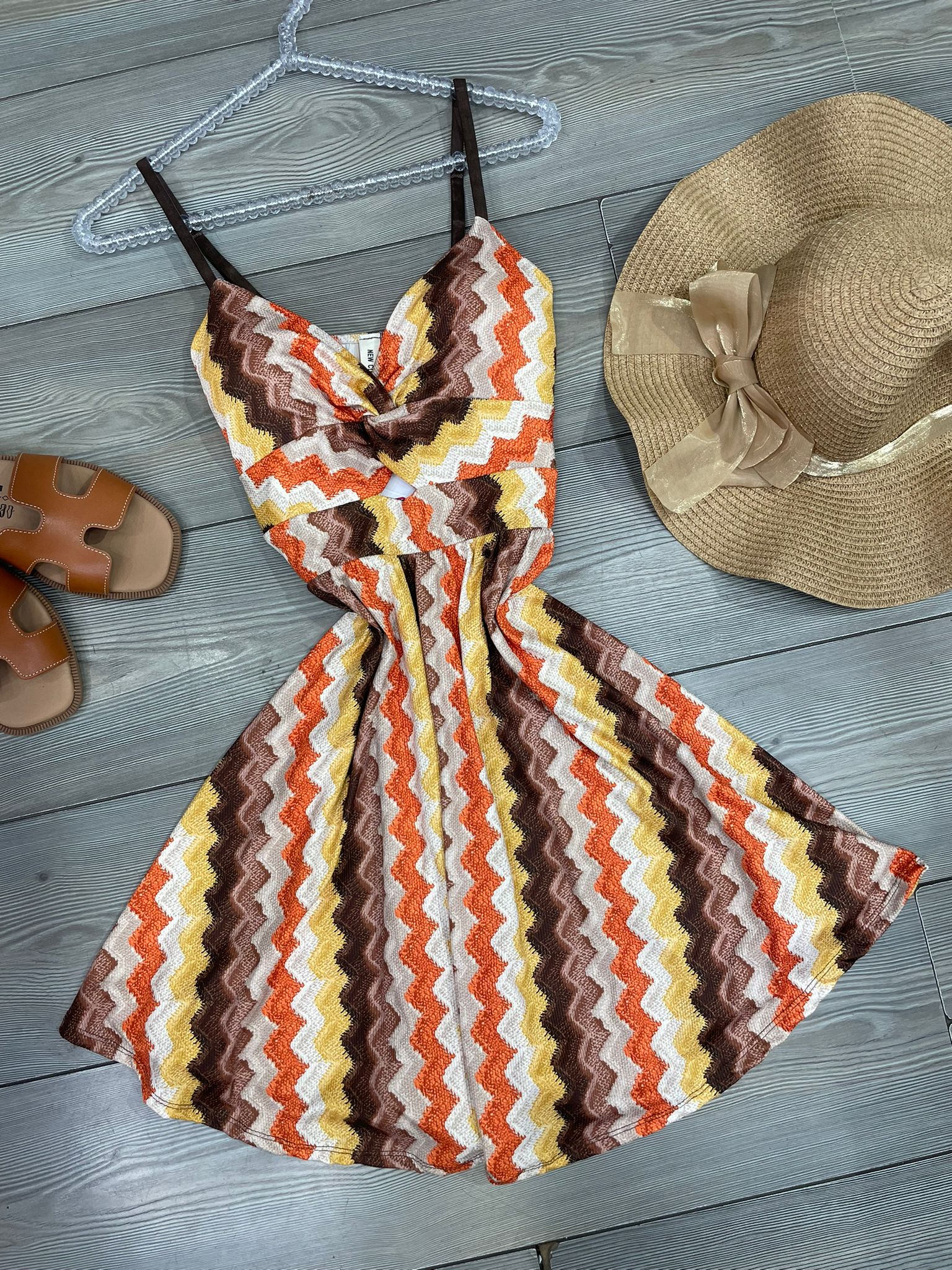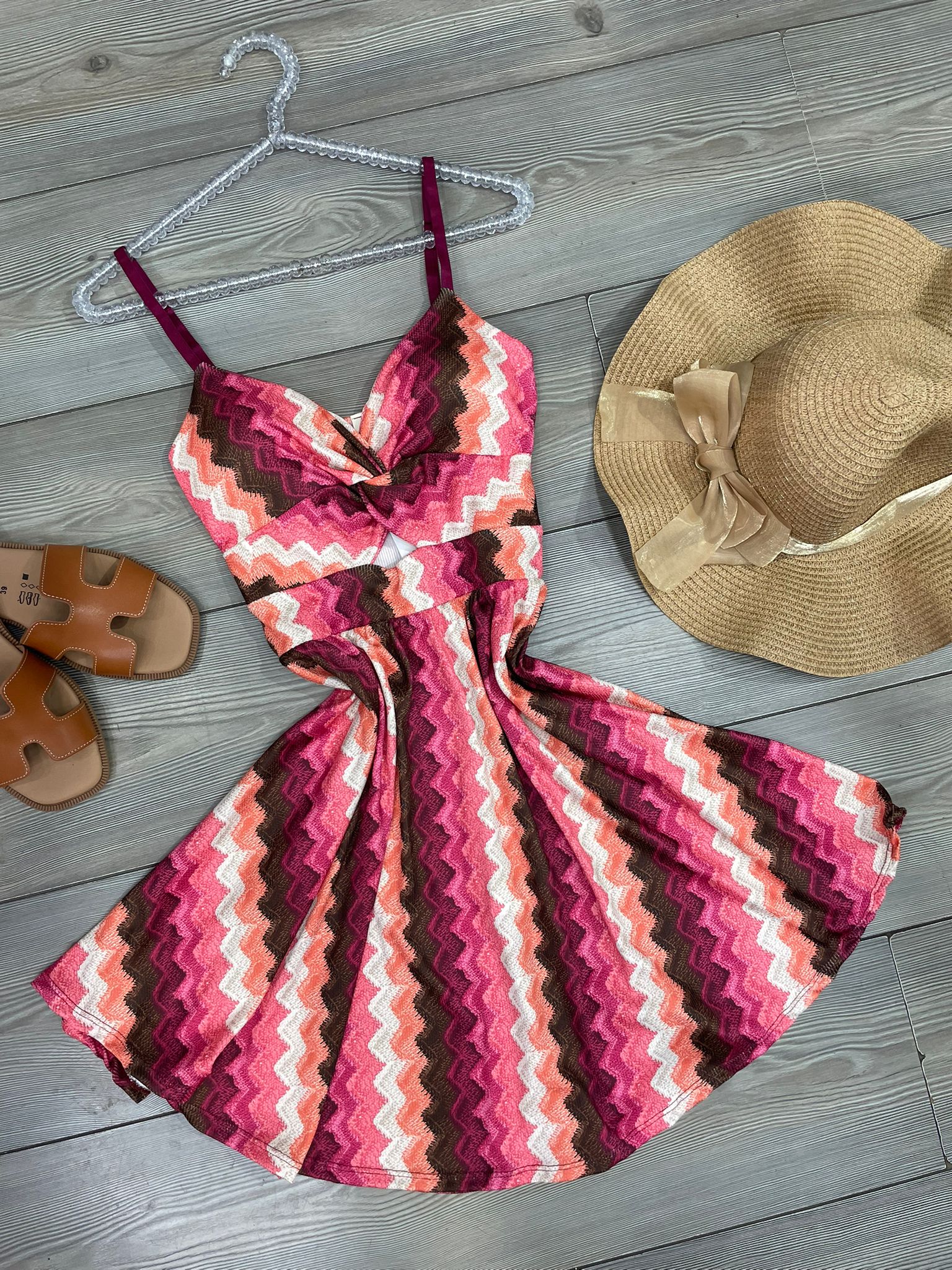 Abito in tessuto strutturato con fantasia astratta , modello morbido e spalline regolabili