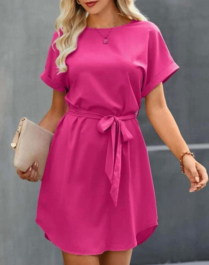 Abito in leggero tessuto strutturato, con elastico in vita e cintura inclusa. Fabbricato in Italia.