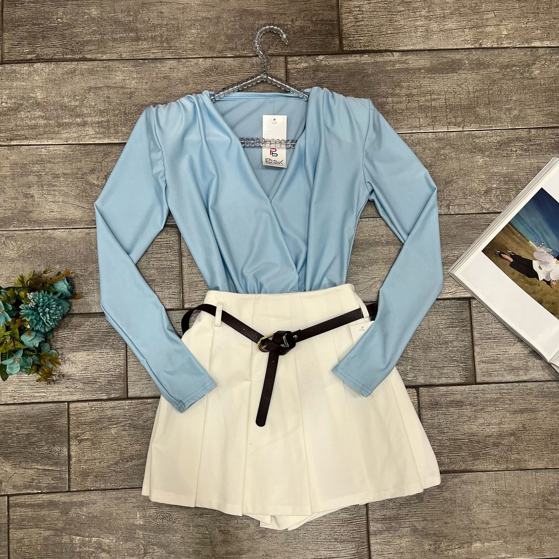 Body effetto lycra con ampia scollatura e chiusura ganci sul cavallo.