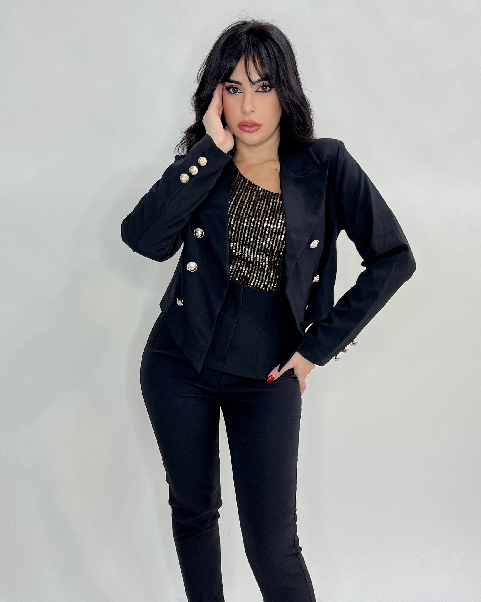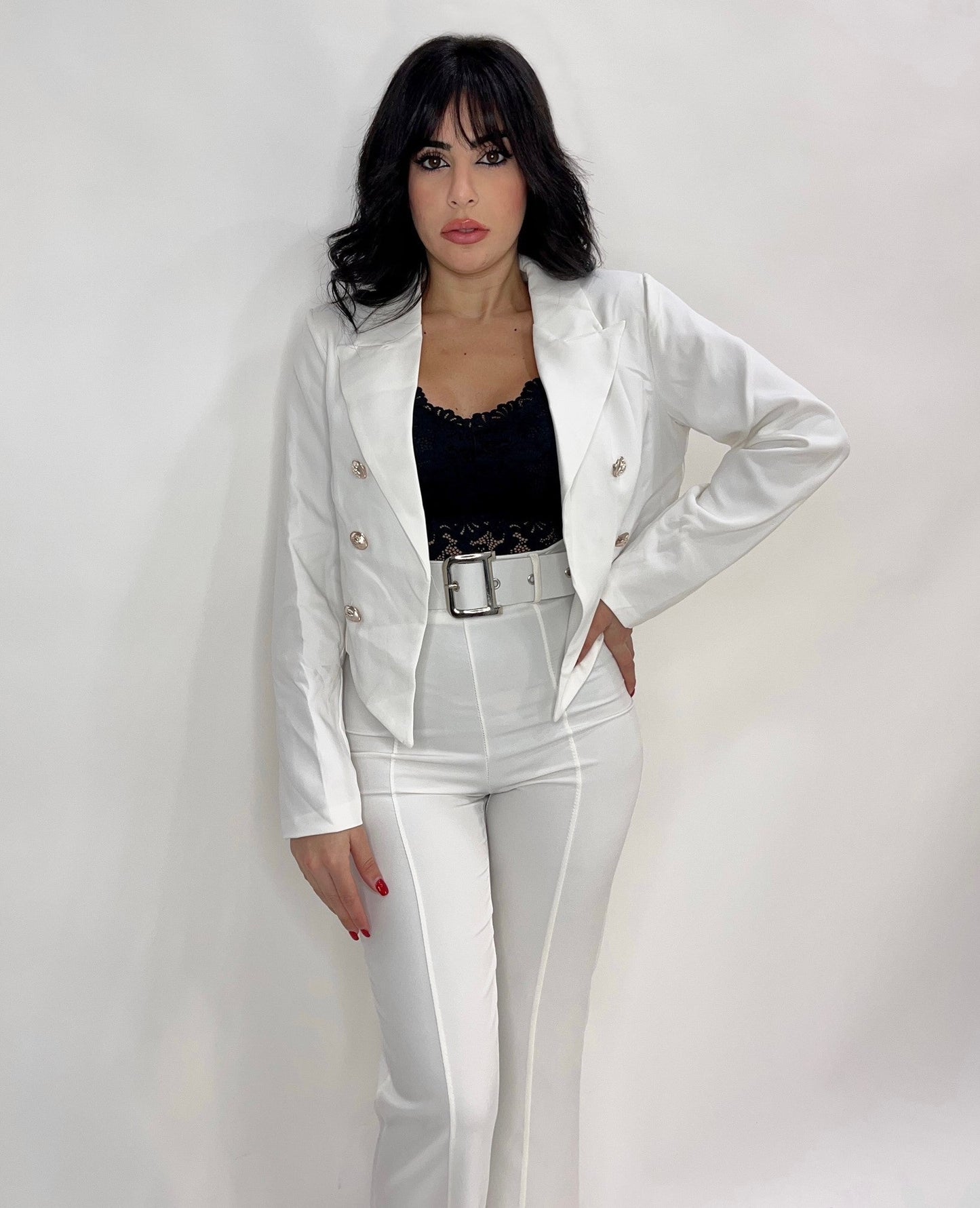 Giacca tessuto scuba crepe con bottoni. Fabbricato in Italia.