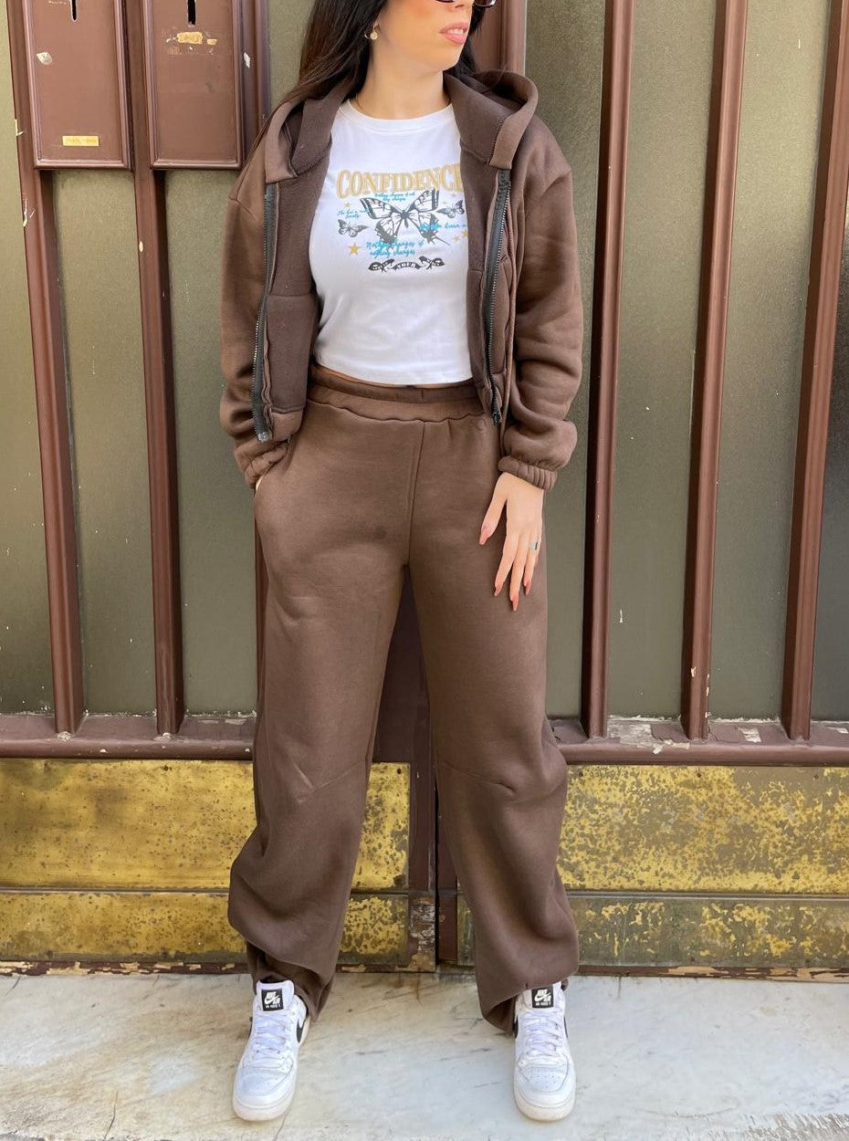 Felpa unica tinta felpata all'interno con cerniera centrale e cappuccio
