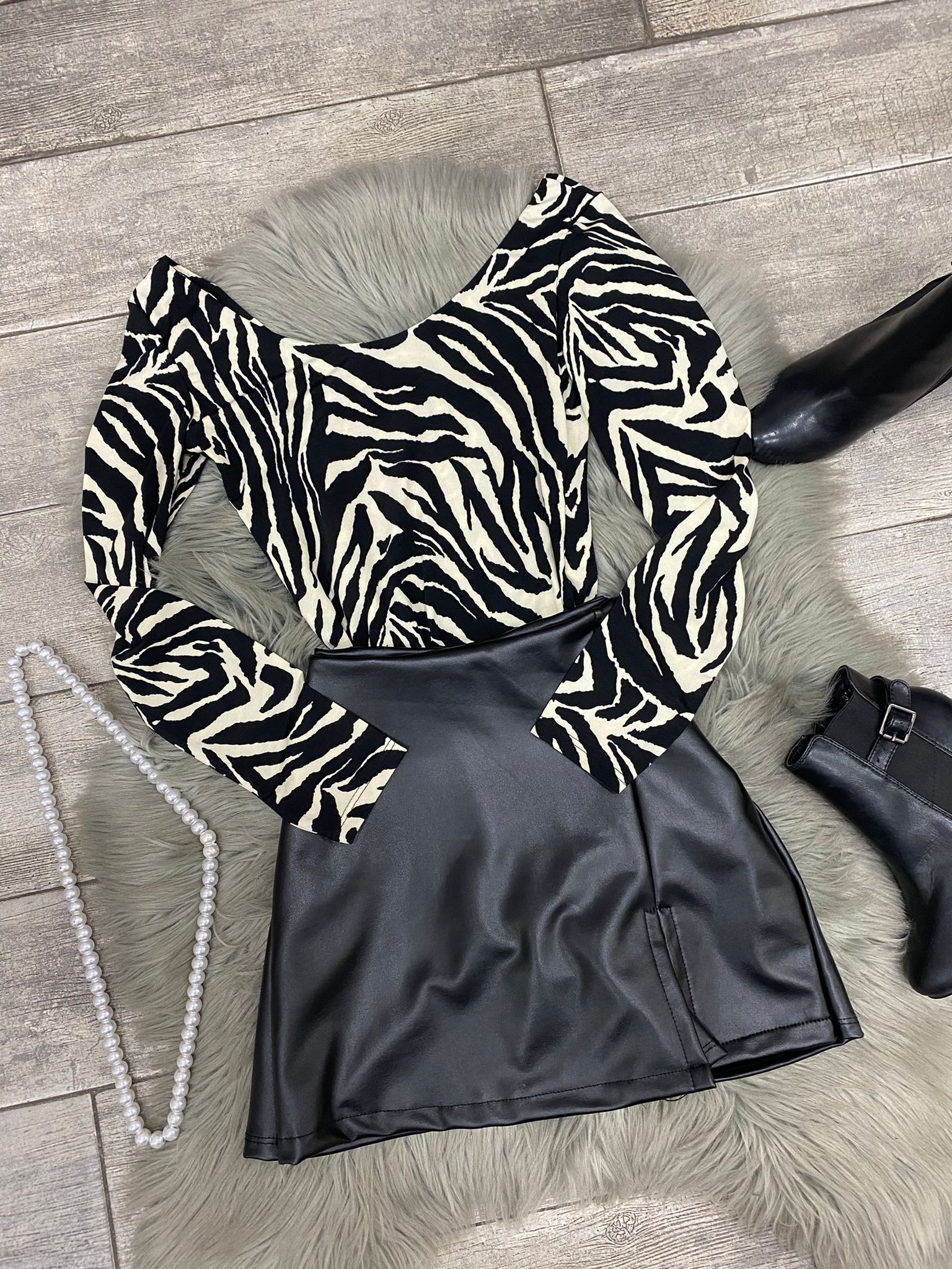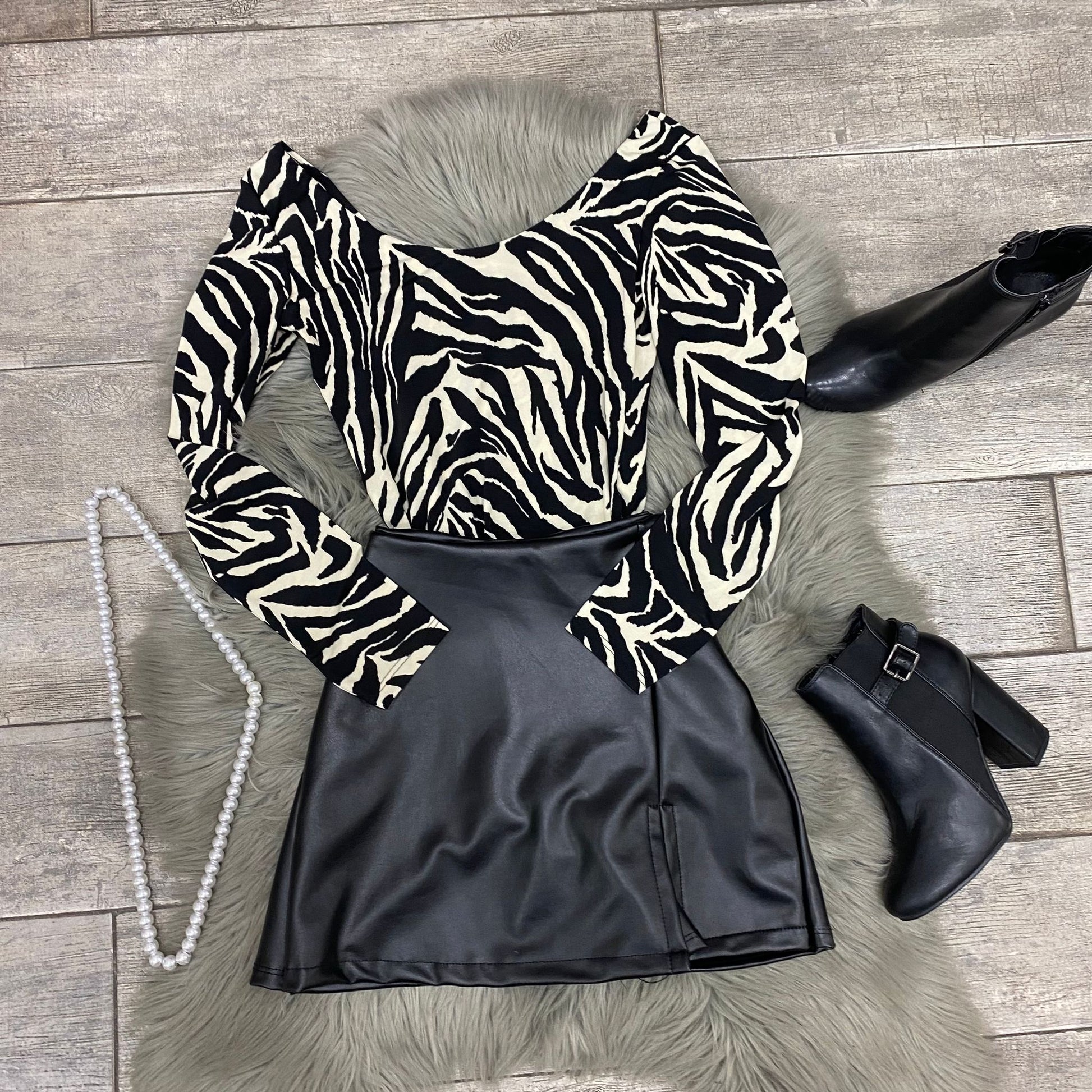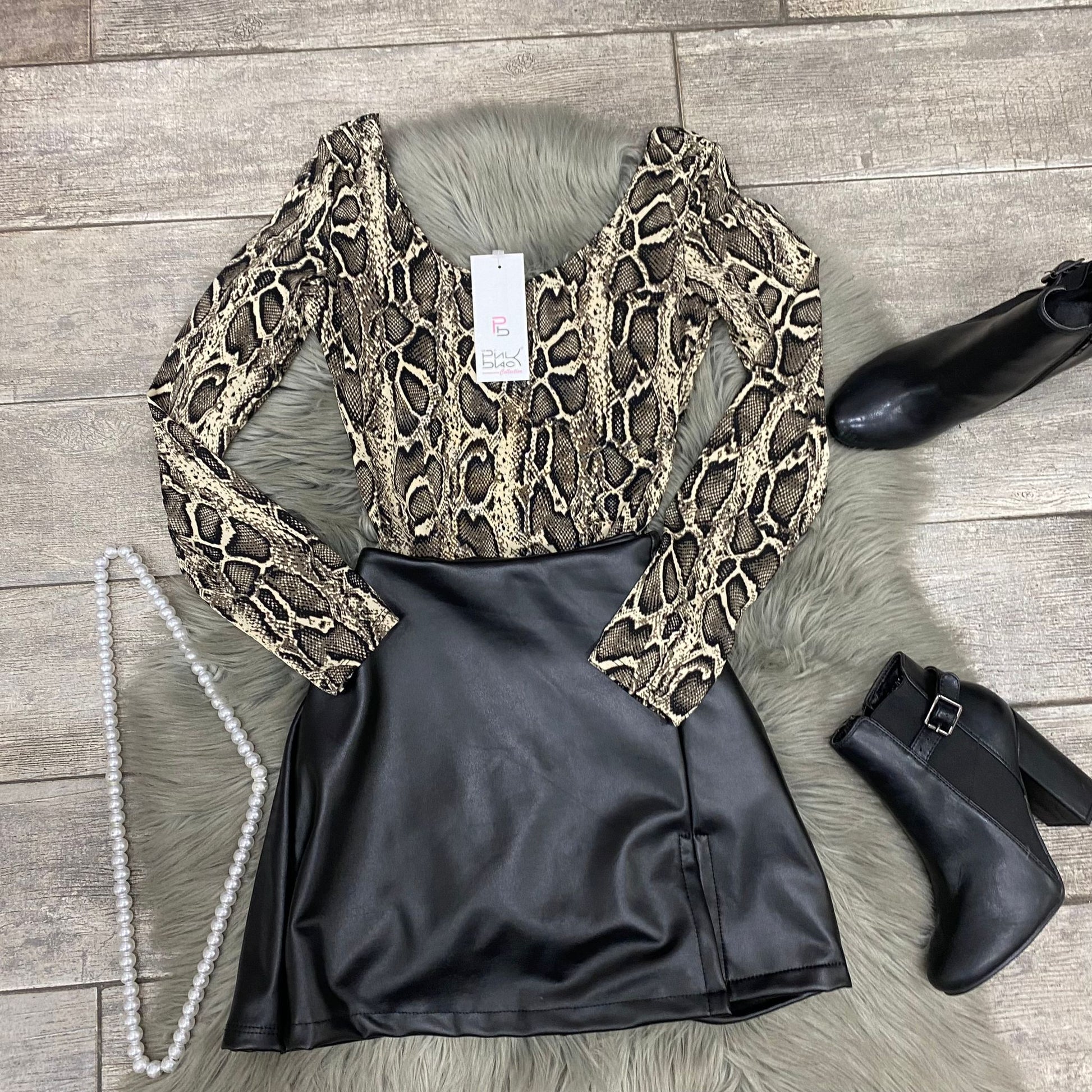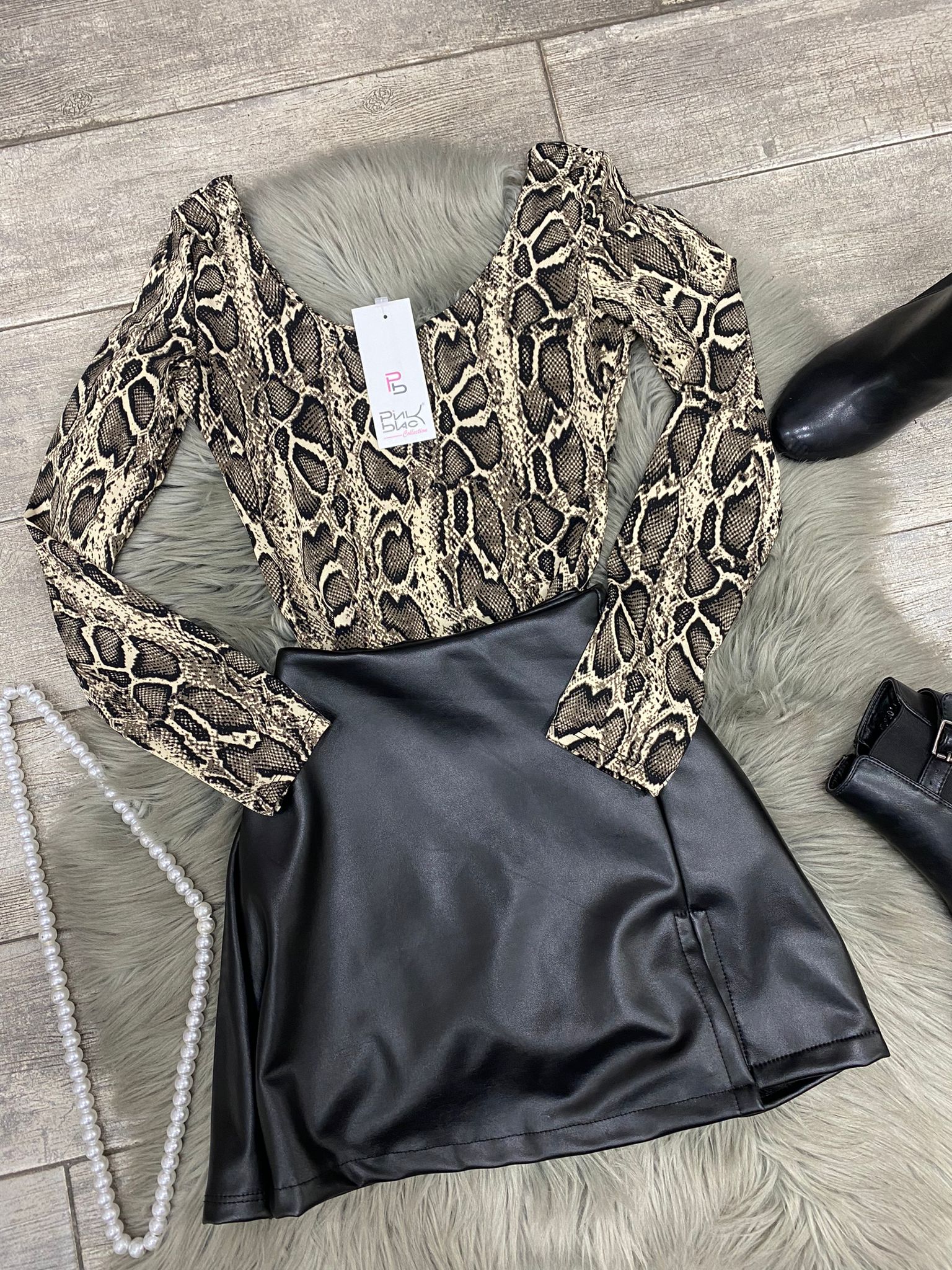 Pantagonna in ecopelle con cerniera laterale ,leggermente elasticizzata.