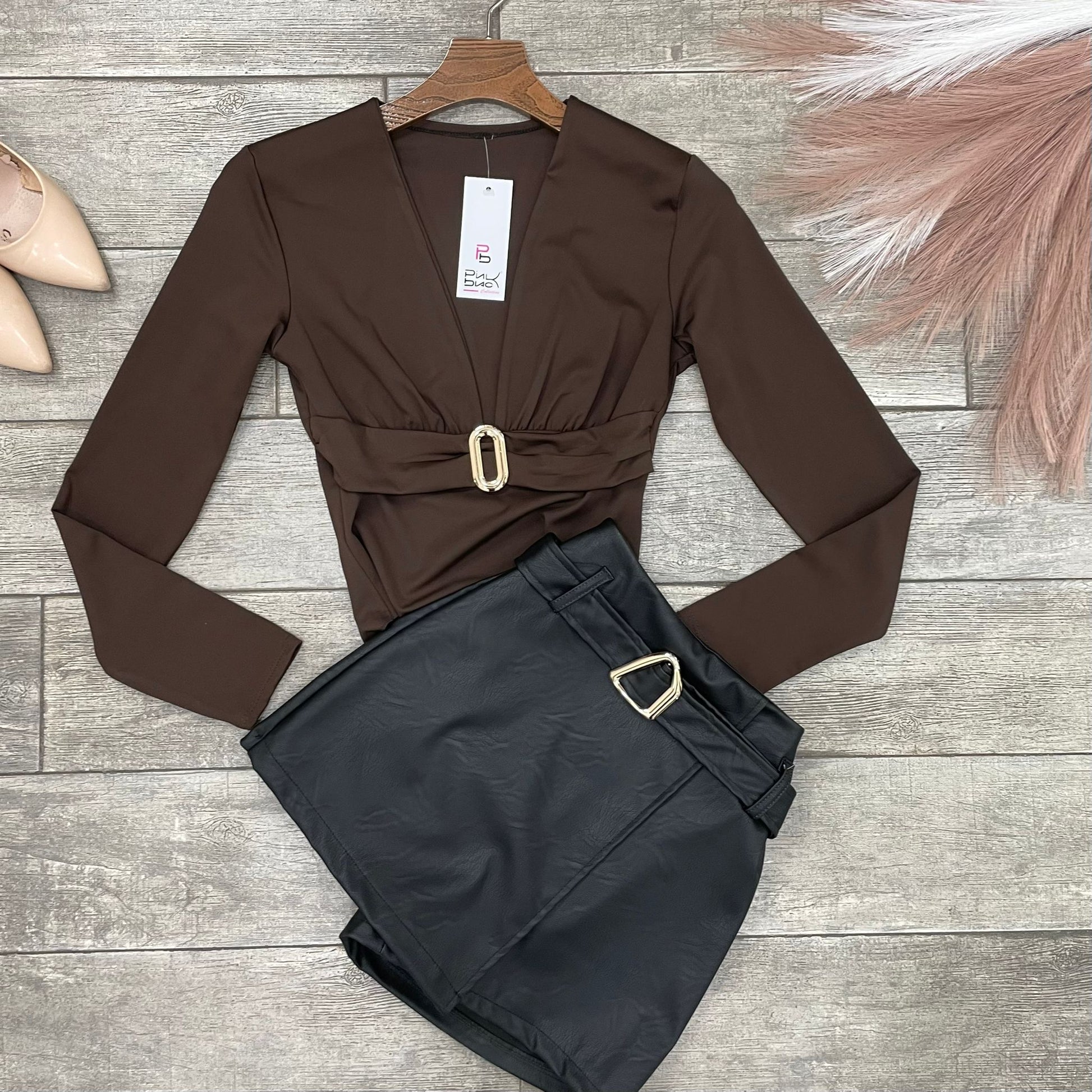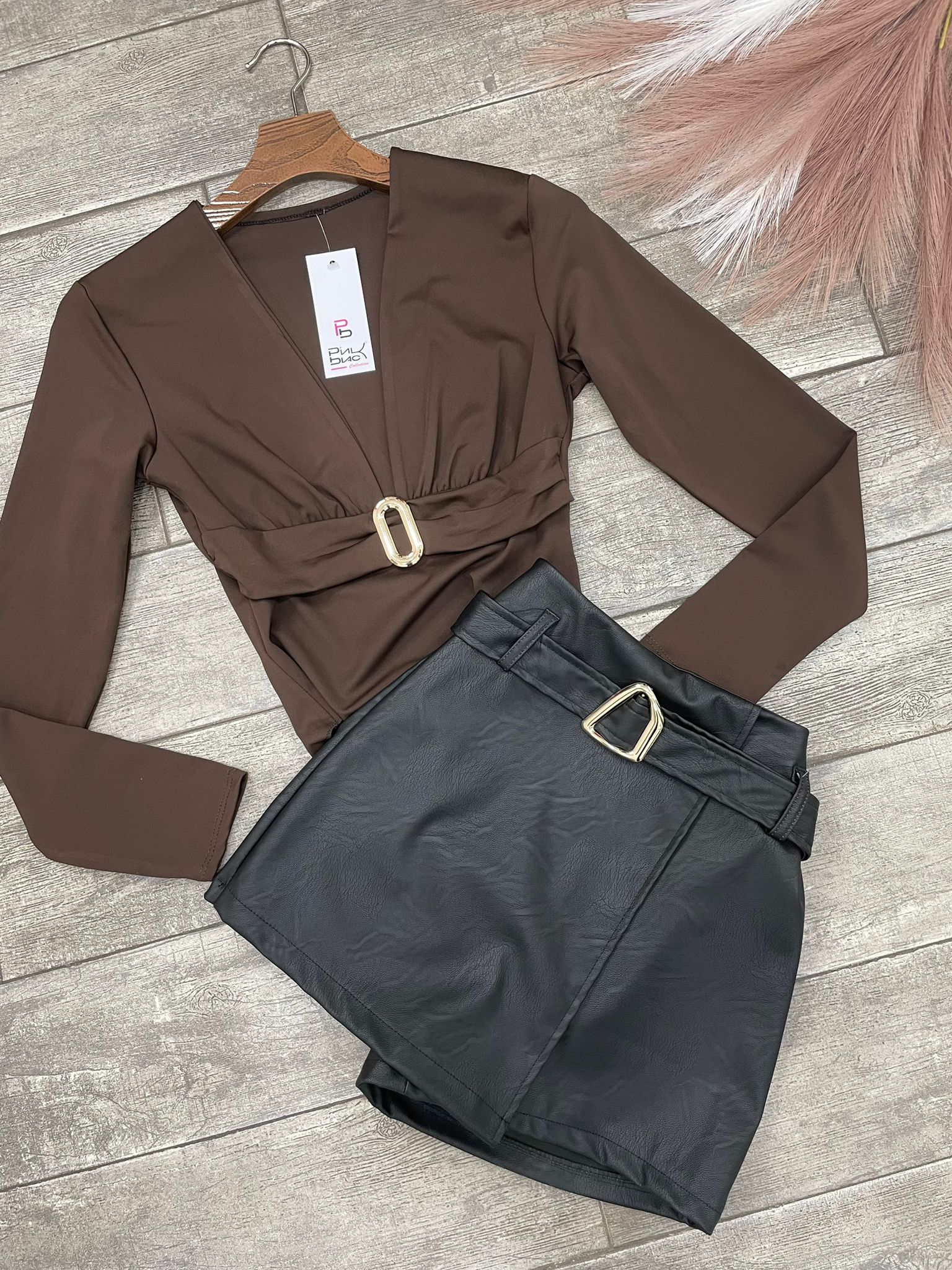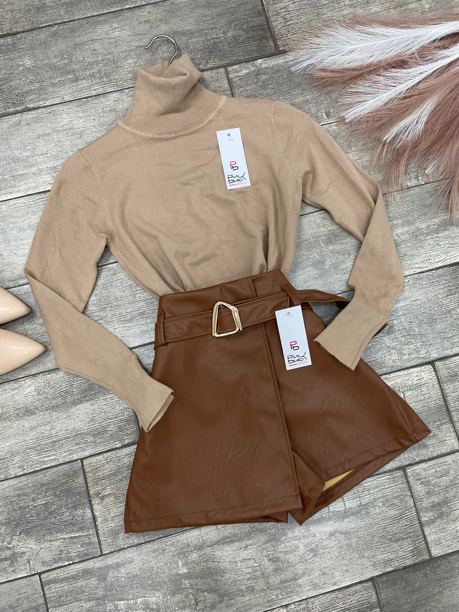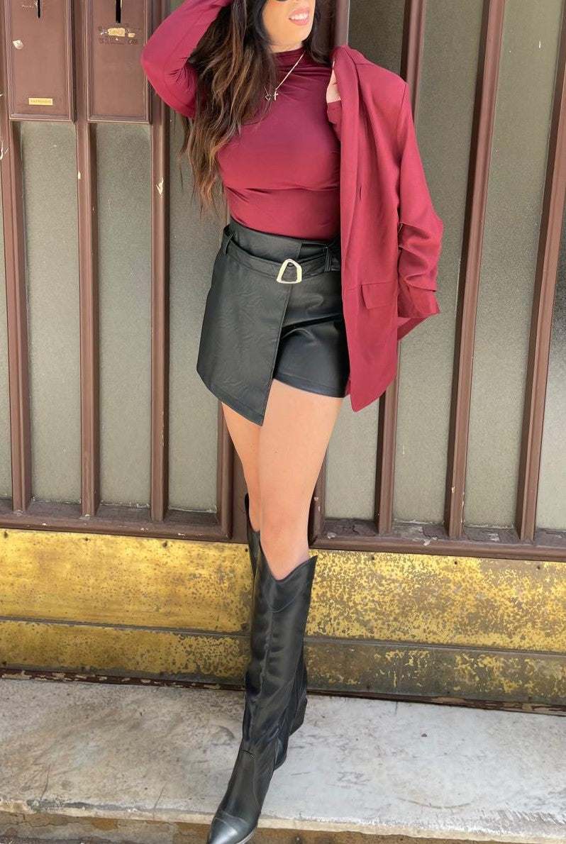 Pantagonna in ecopelle con cerniera sul retro e cintura in ecopelle inclusa.