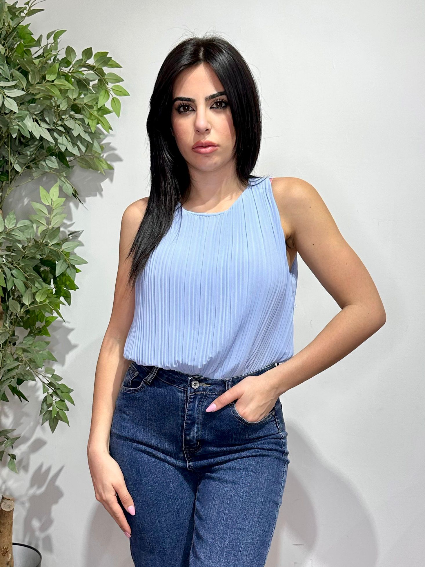 Maglia in chiffon plissettata. Fabbricato in Italia.