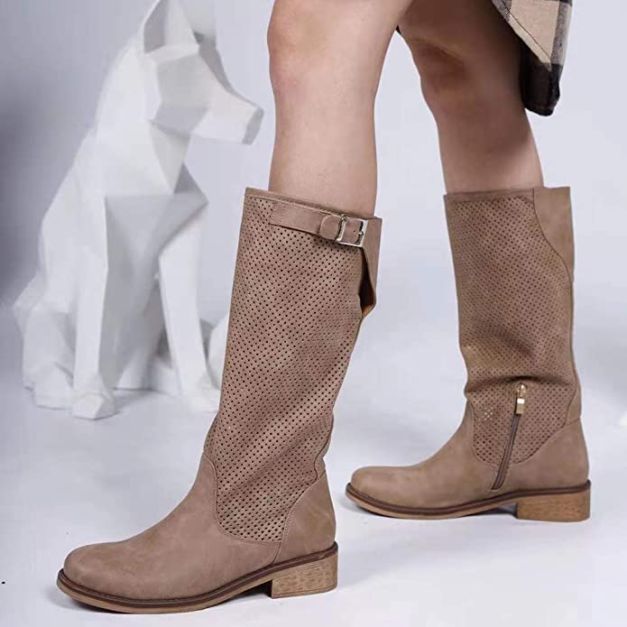 Stivale in ecopelle traforato con cerniera e tacco comodo.