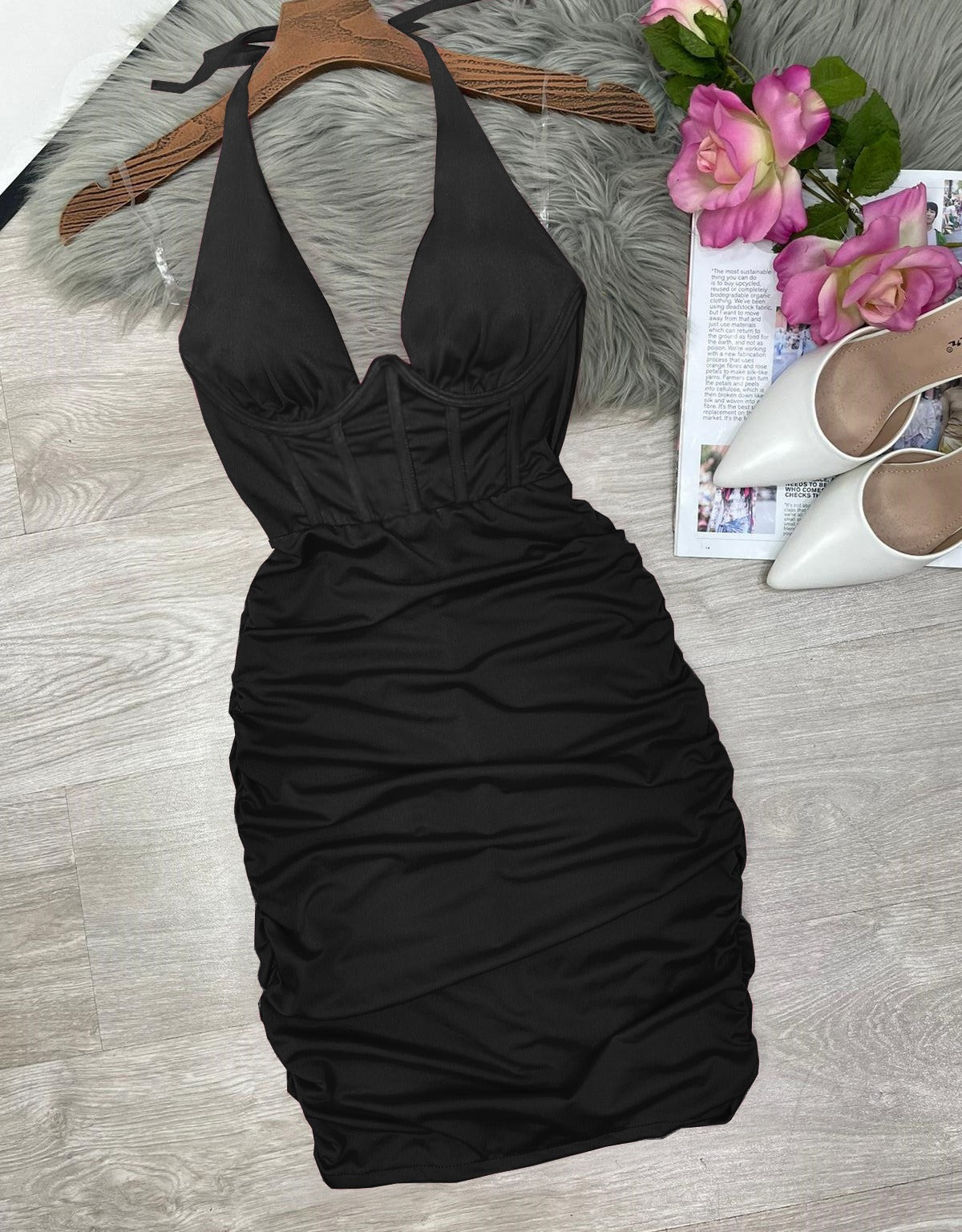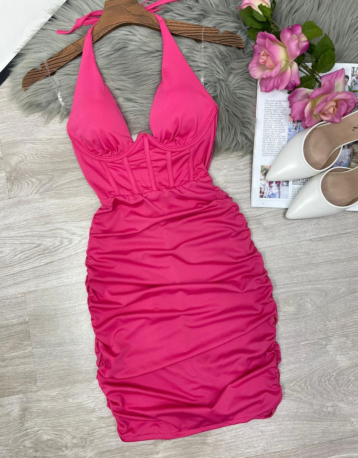 Abito modello tubino con coppe preformate e gonna drappeggiata. Fabbricato in Italia.