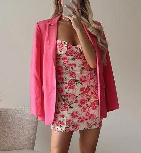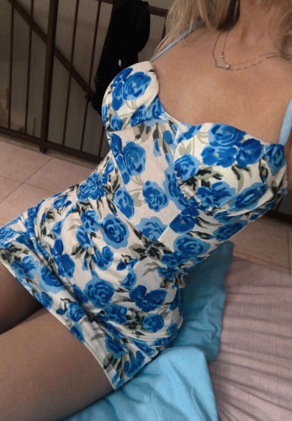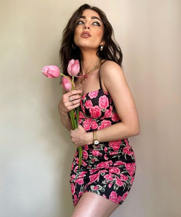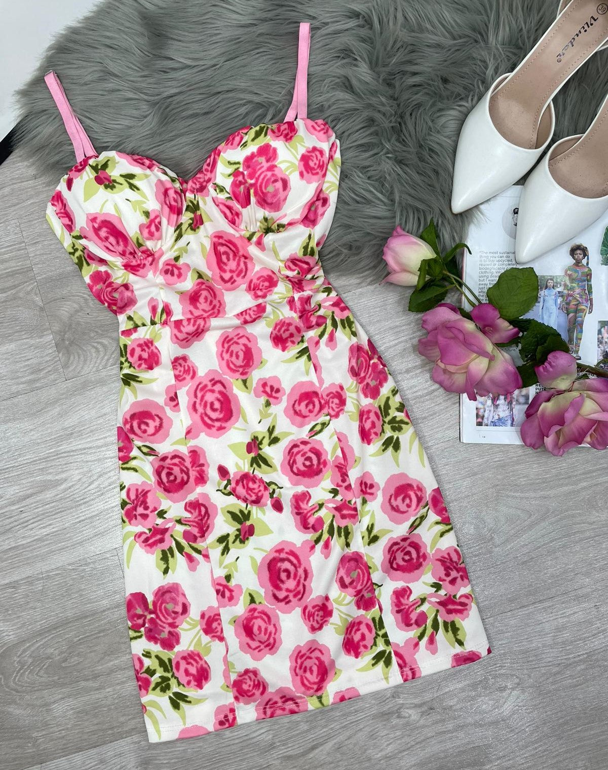 Abito con fantasia floreale, coppe preformate e spalline regolabili. Fabbricato in Italia.