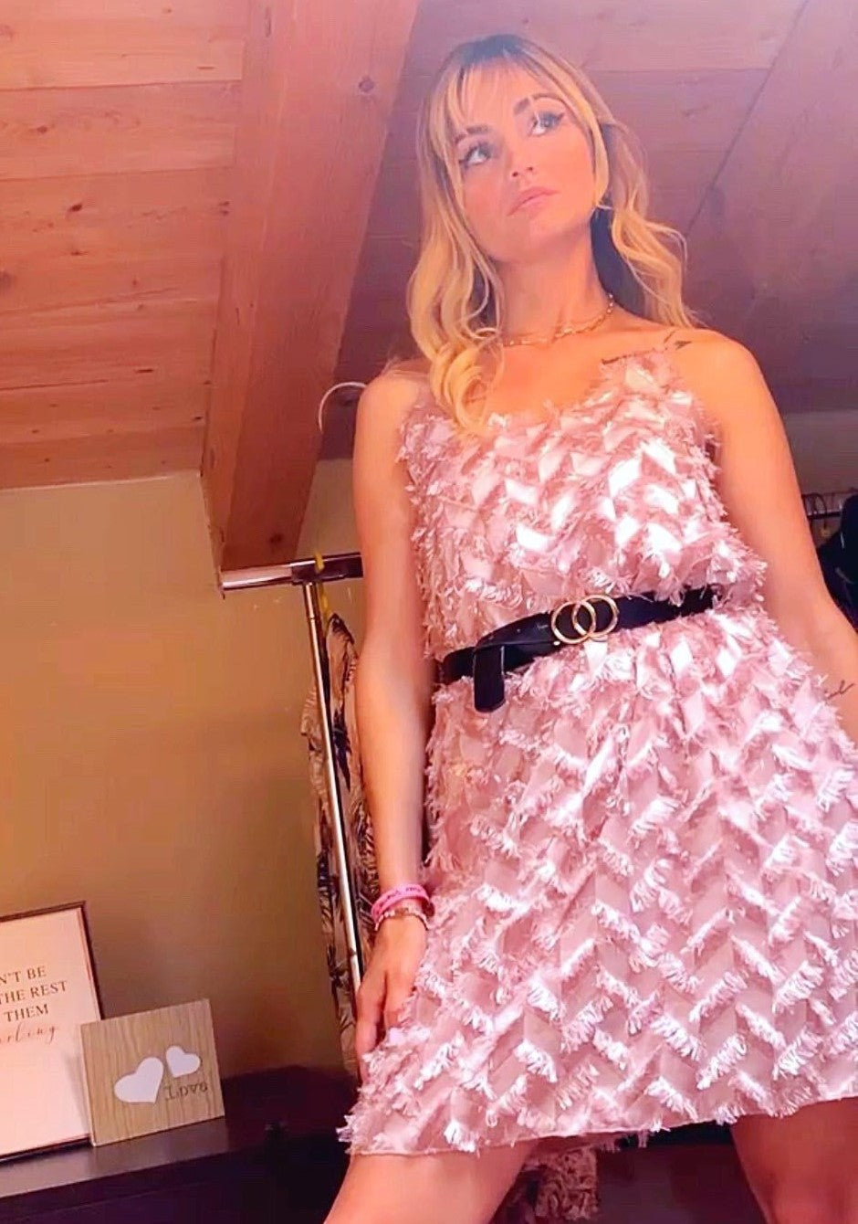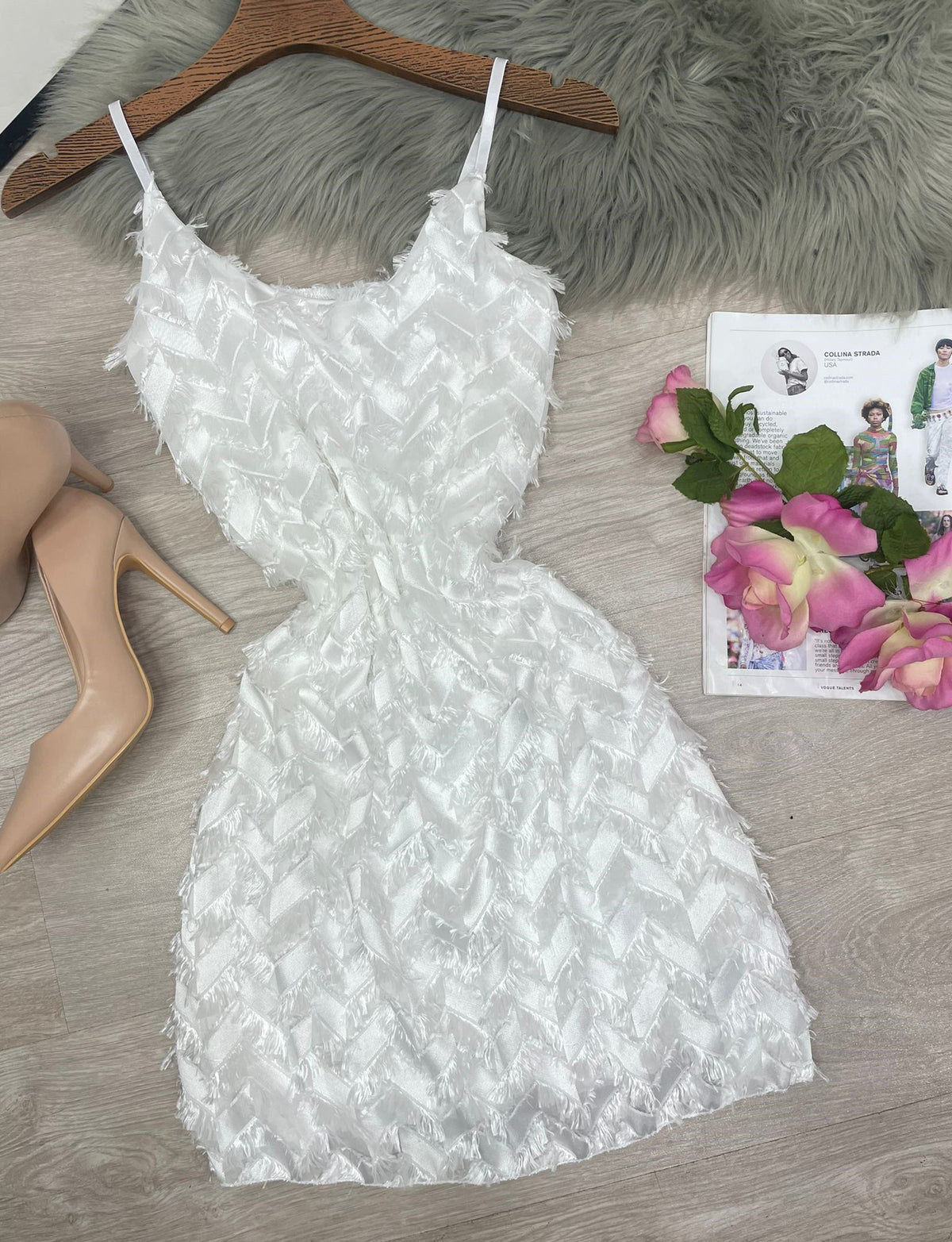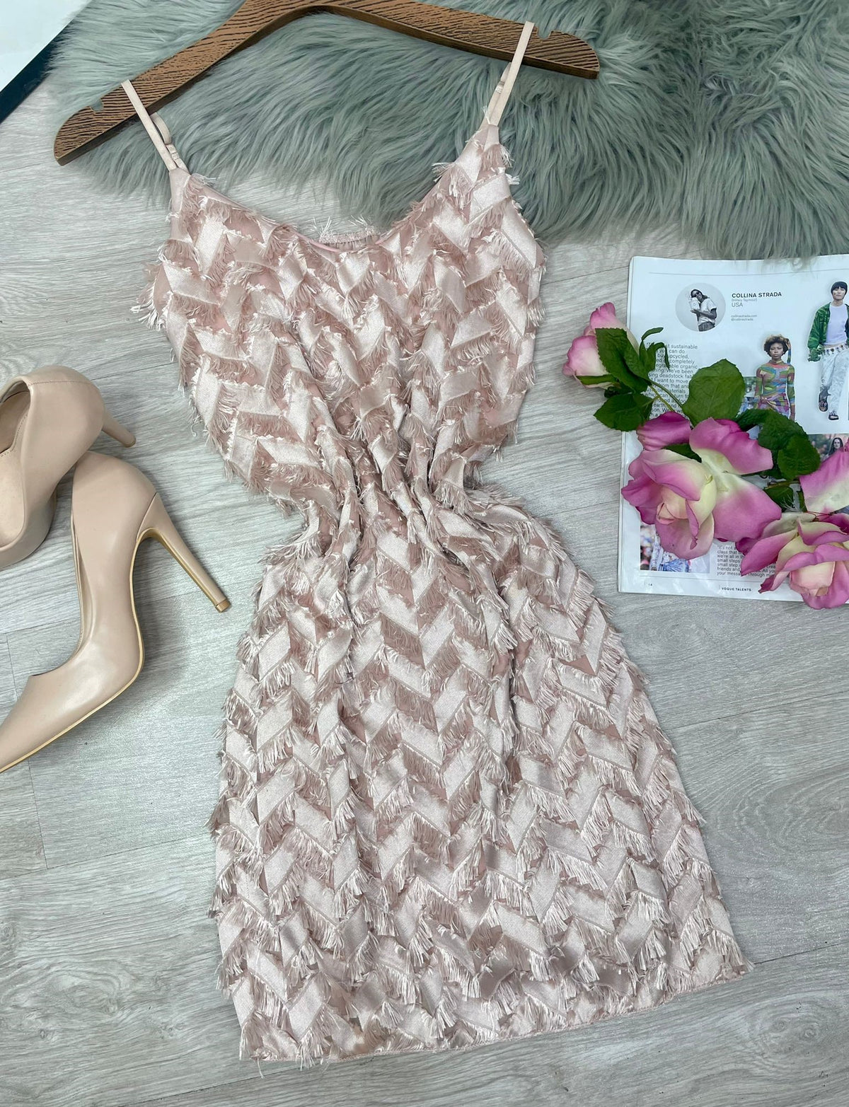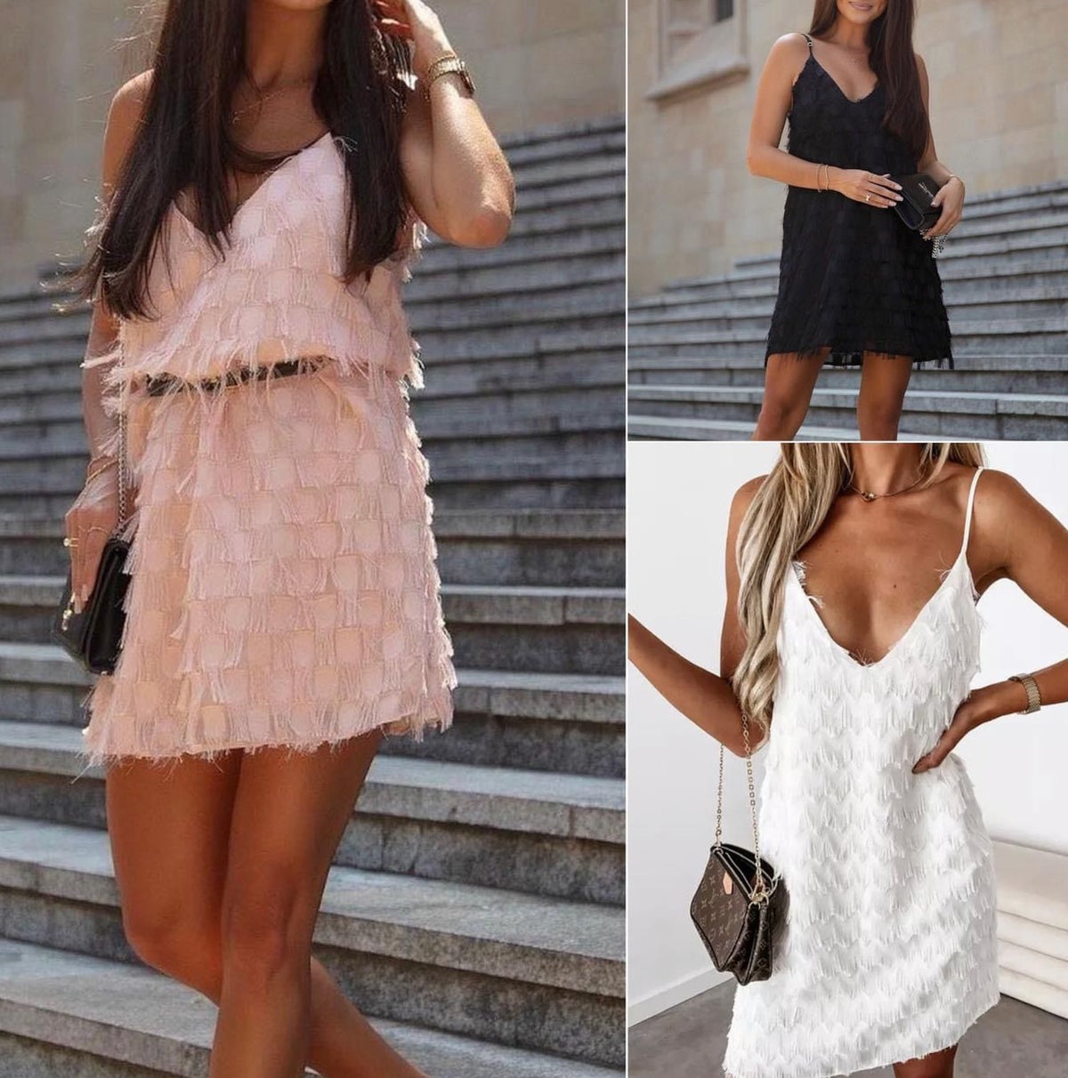 Abito in tessuto con frange e spalline regolabili. Fabbricato all'estero.