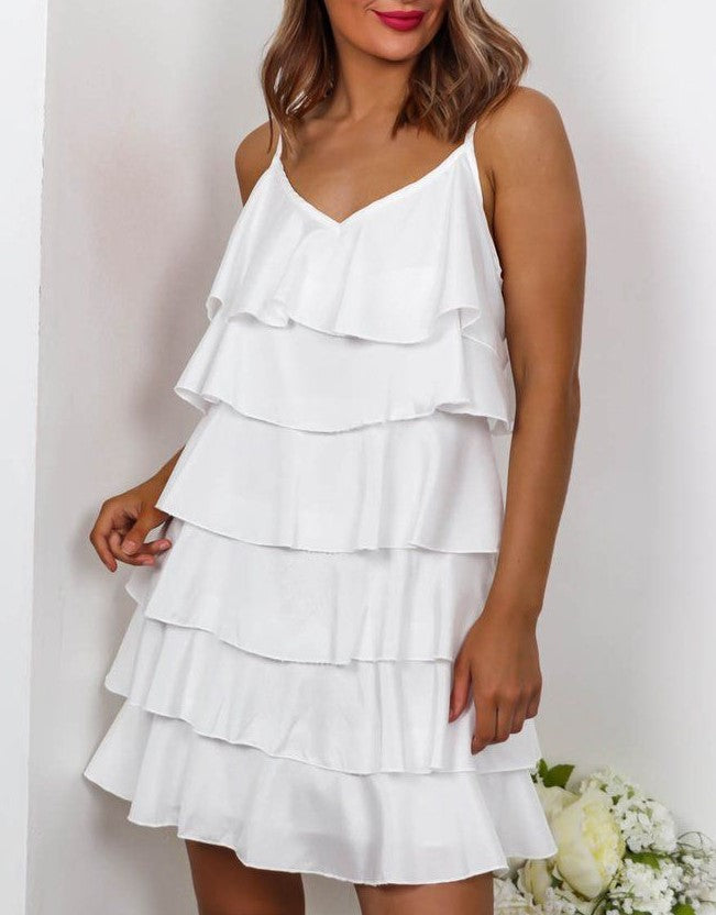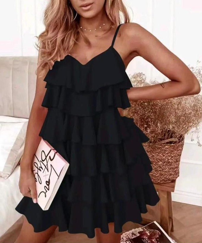 Abito in tessuto strutturato con volant. Fabbricato in Italia.
