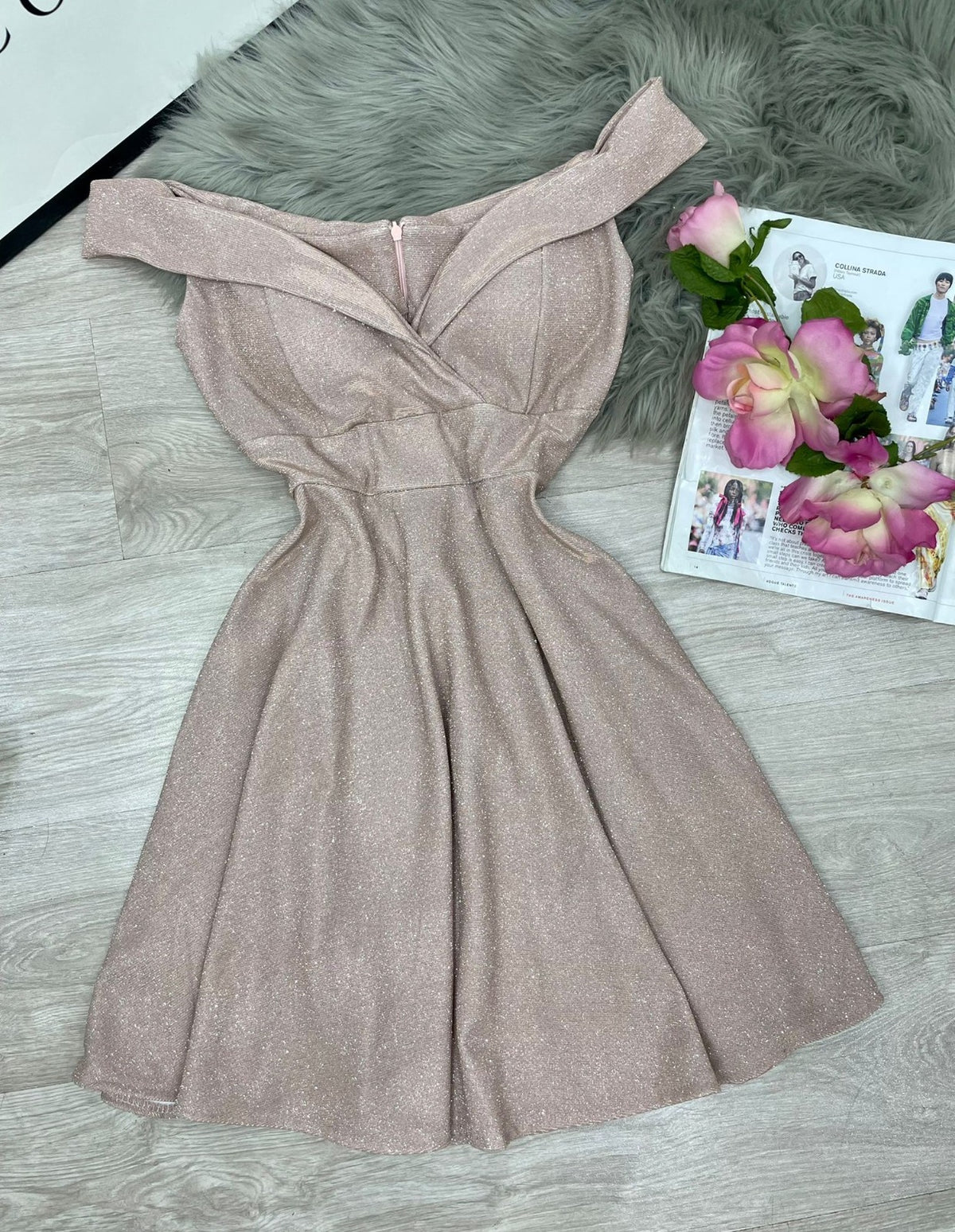Abito in lurex con coppe preformate, pinces e chiusura sul retro con cerniera. Fabbricato in Italia.