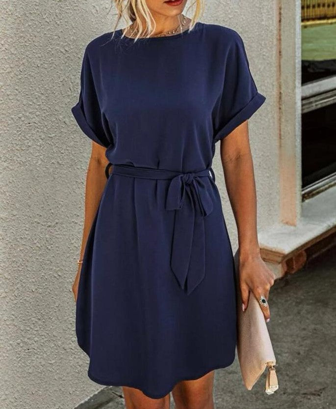 Abito in leggero tessuto strutturato, con elastico in vita e cintura inclusa. Fabbricato in Italia.