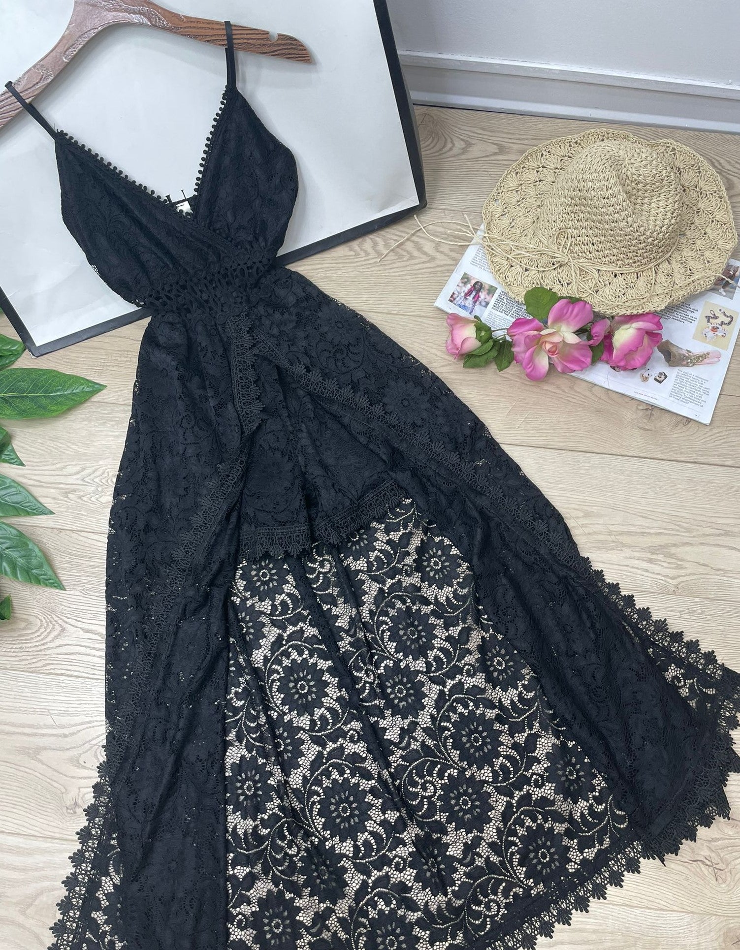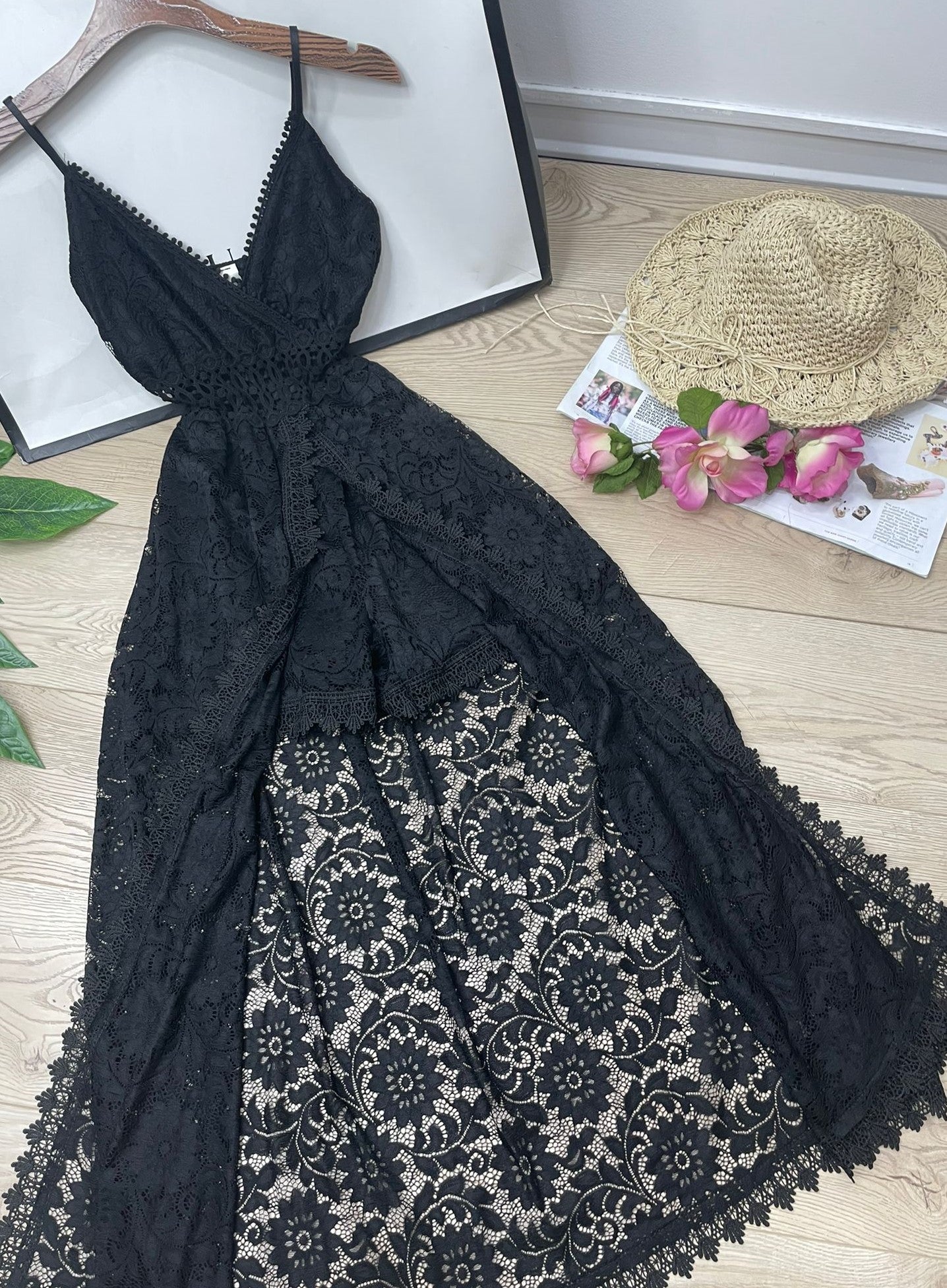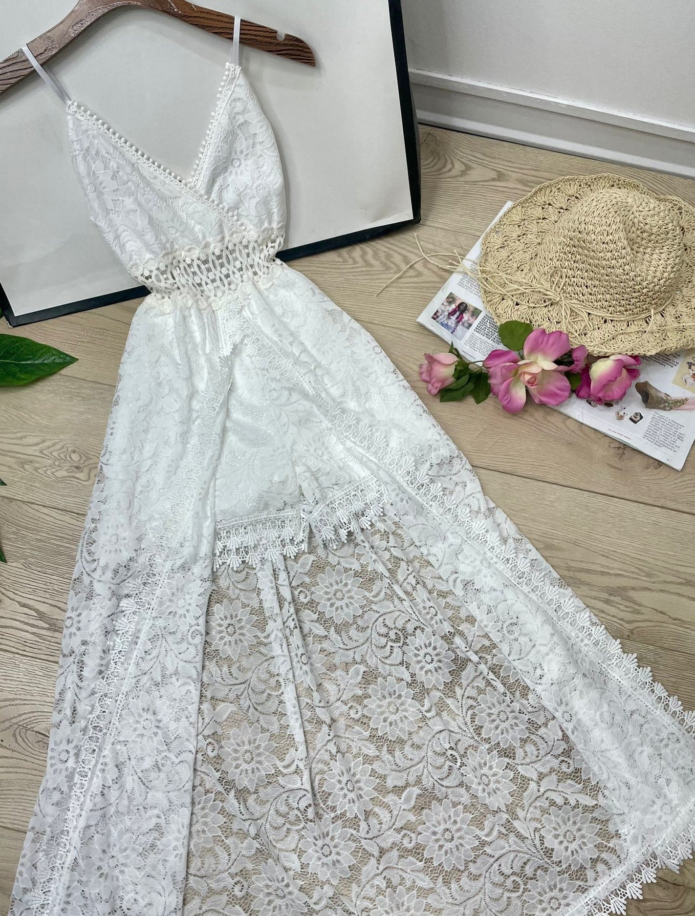 Abito in macramè con pantaloncino e gonna lunga. Fabbricato in Italia.
