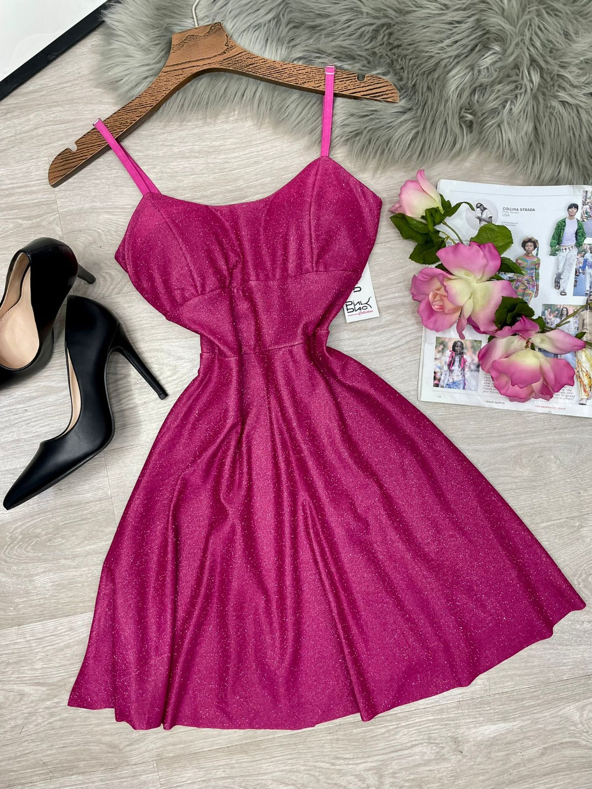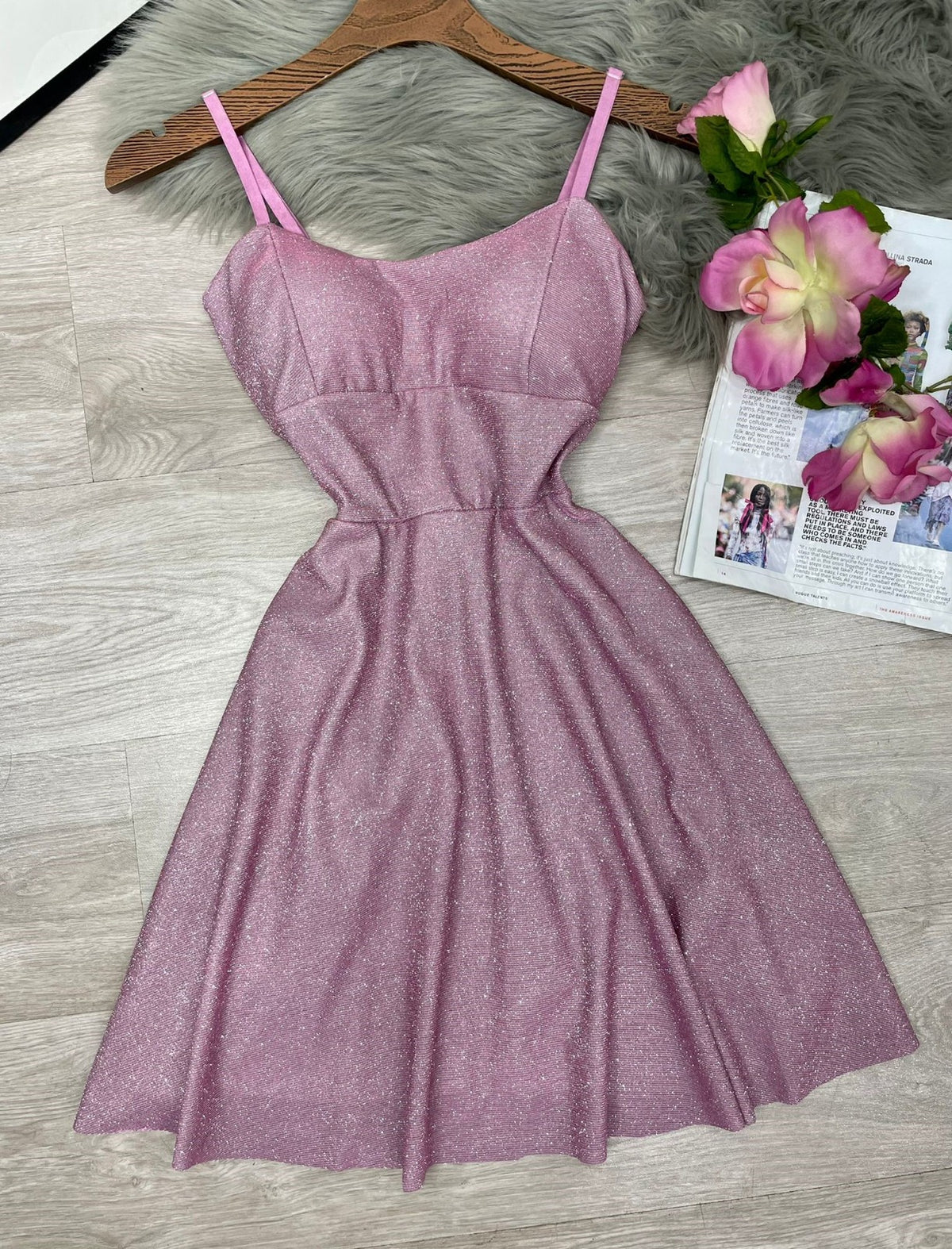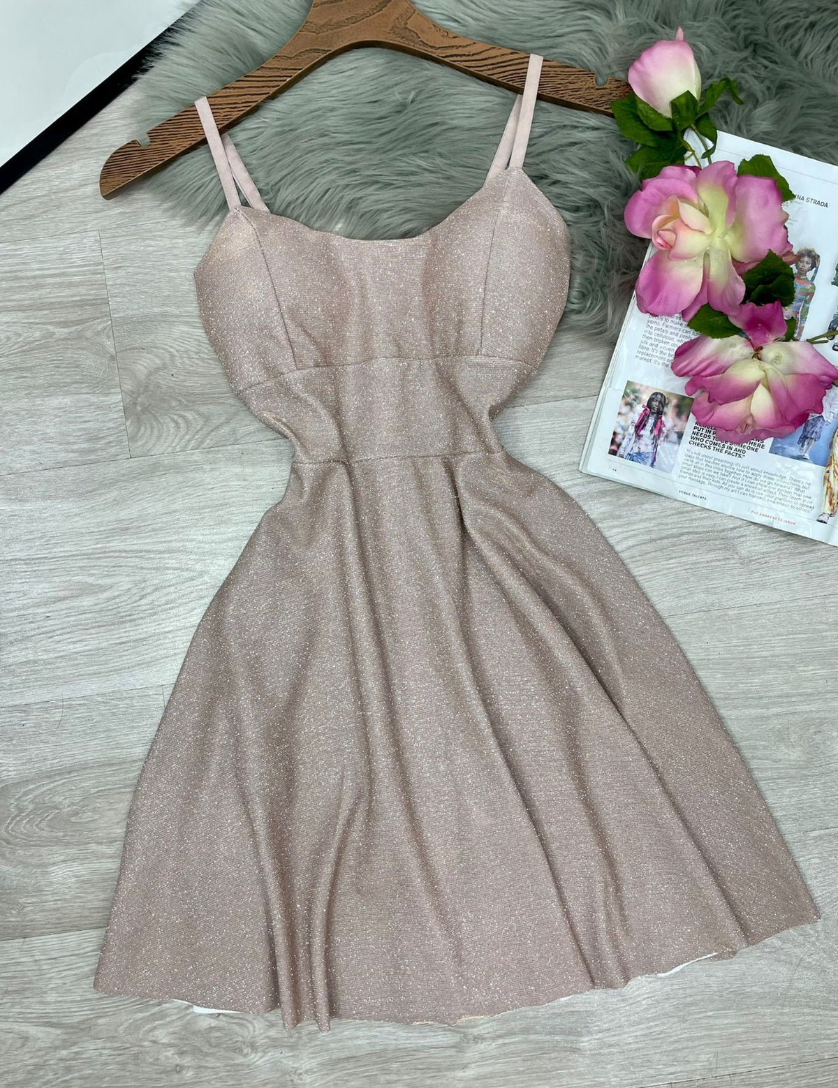 Abito in lurex con coppe preformate, spalline regolabili, pinces e chiusura sul retro con cerniera. Fabbricato in Italia.