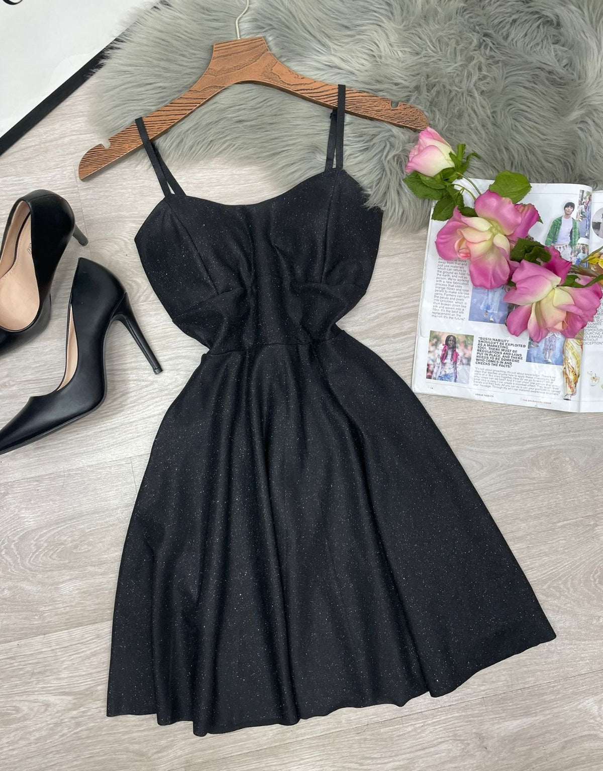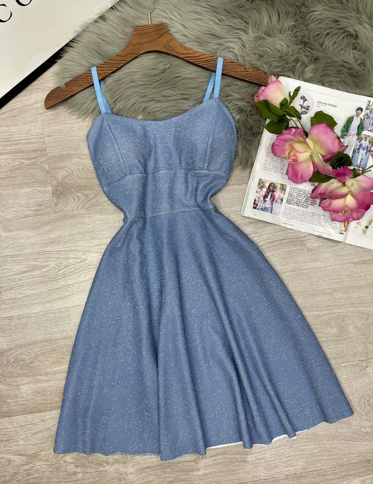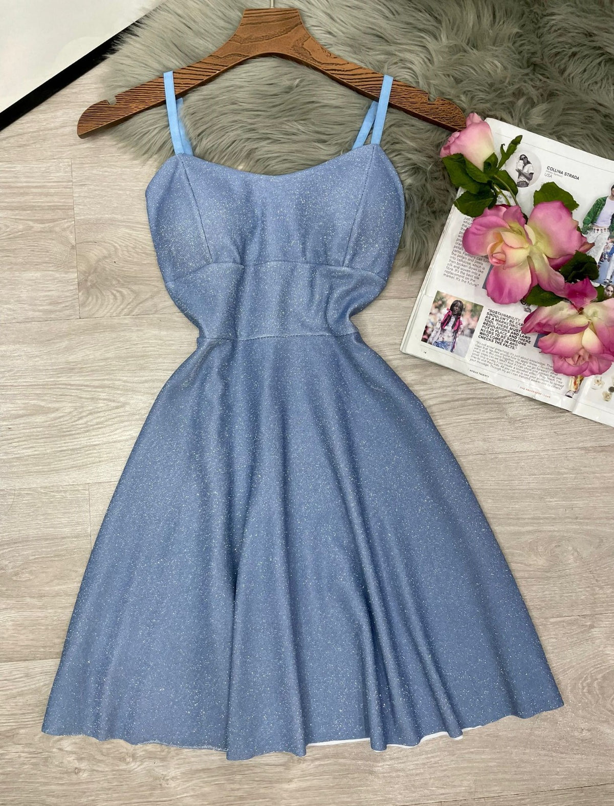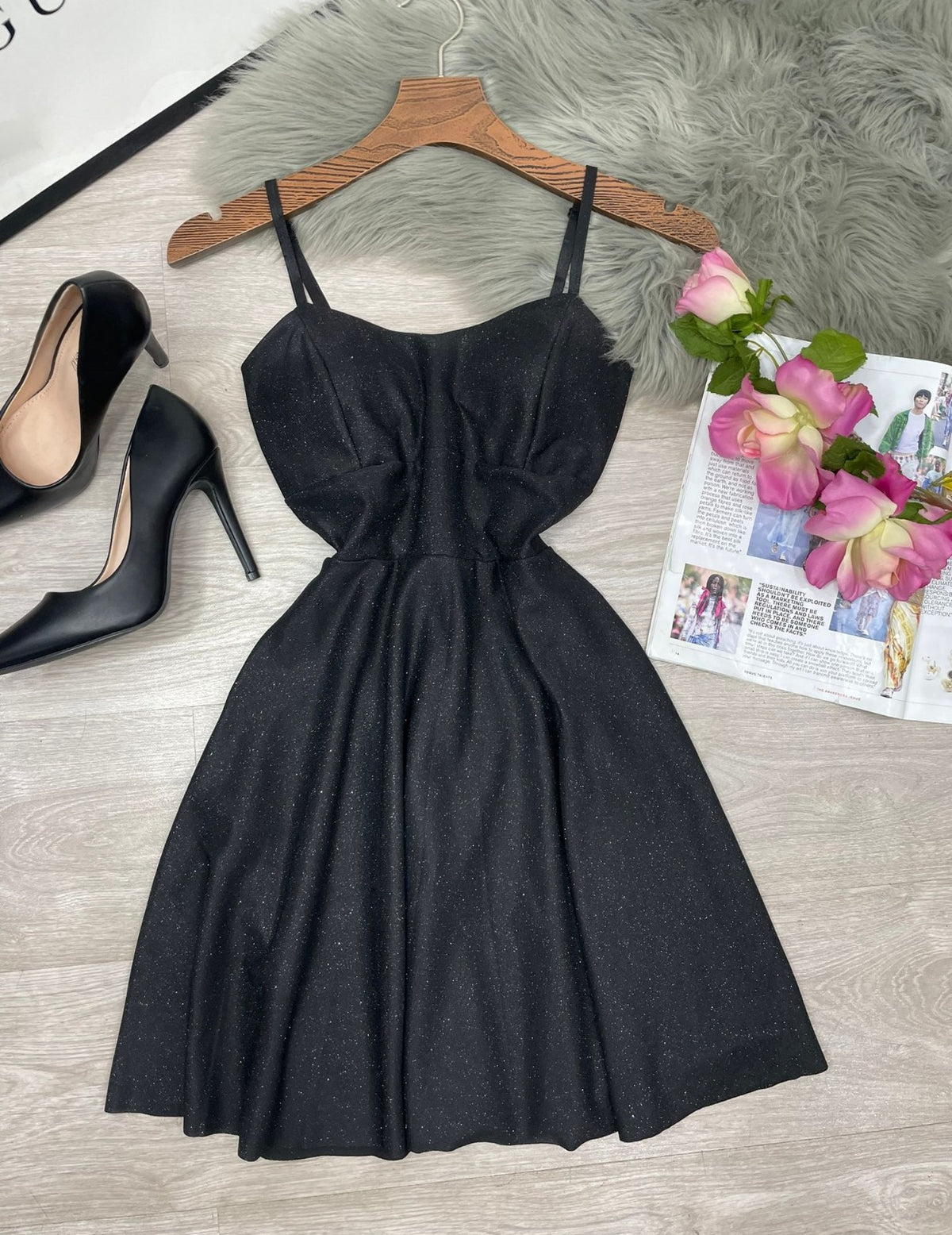 Abito in lurex con coppe preformate, spalline regolabili, pinces e chiusura sul retro con cerniera. Fabbricato in Italia.