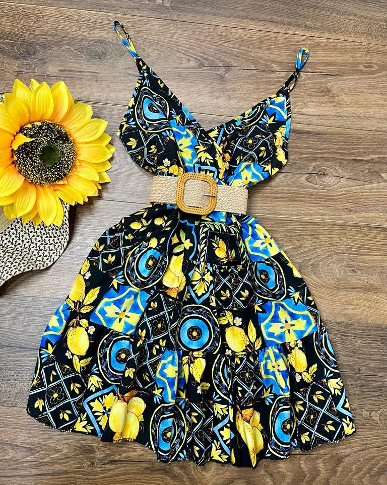Abito in cotone con fantasia floreale astratta o animalier ed elastico in vita. Fabbricato in Italia.