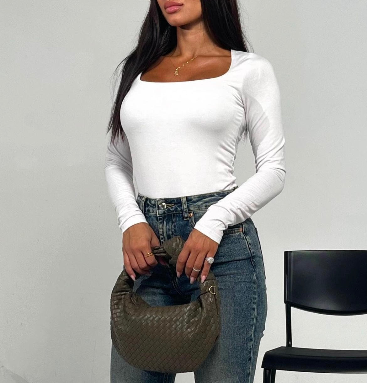 Body effetto lycra con ganci sul cavallo. Fabbricato in Italia.