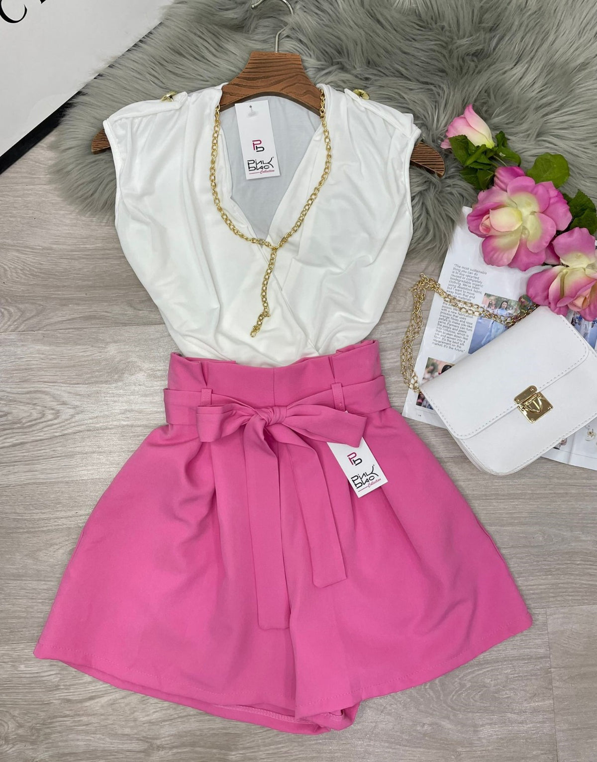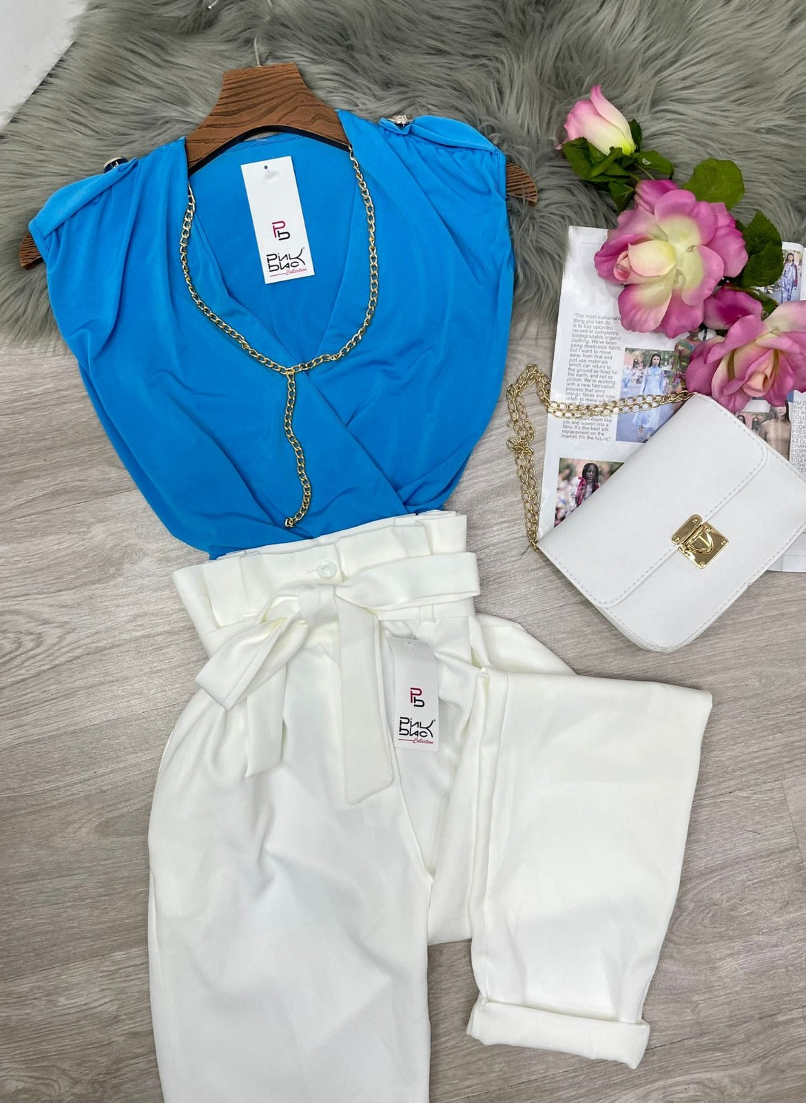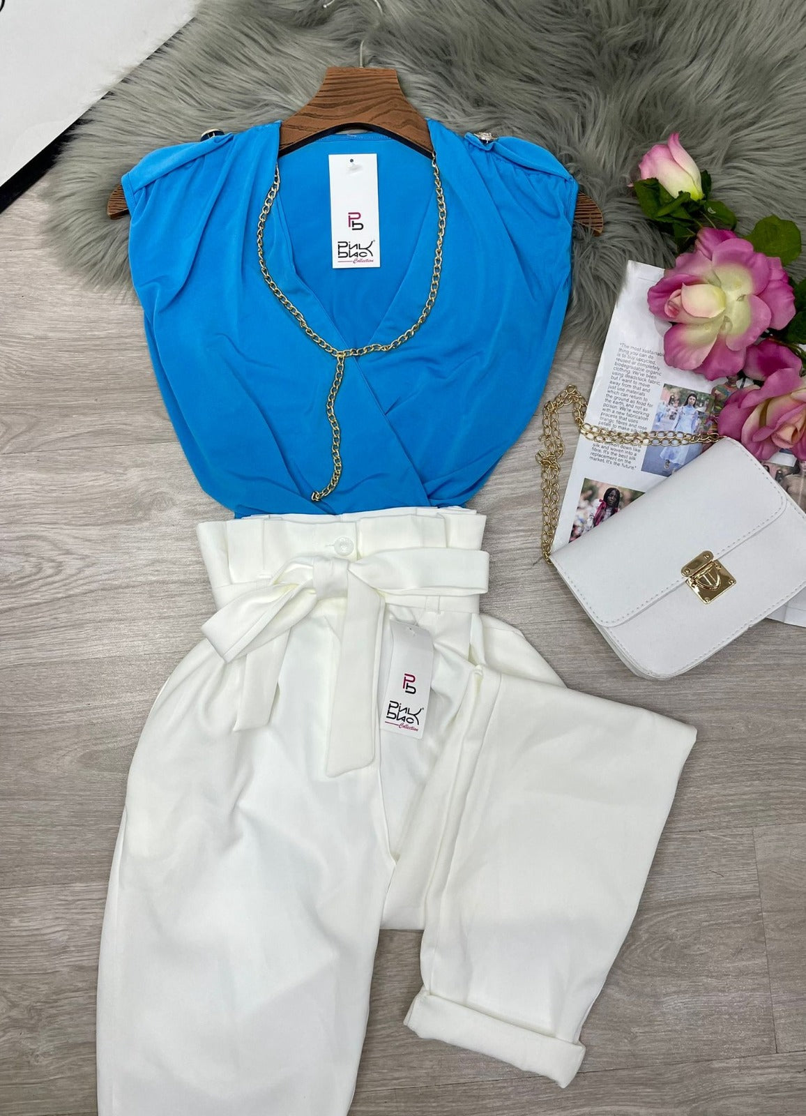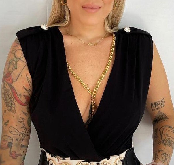 Body in tessuto strutturato con collana a catena e chiusura con ganci sul cavallo. Fabbricato in Italia.