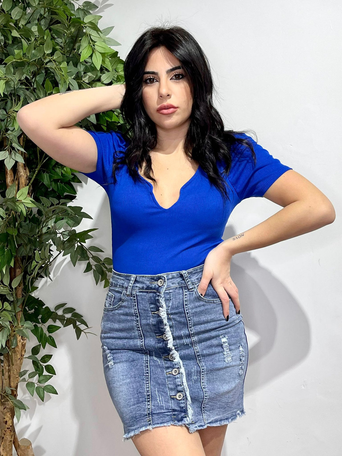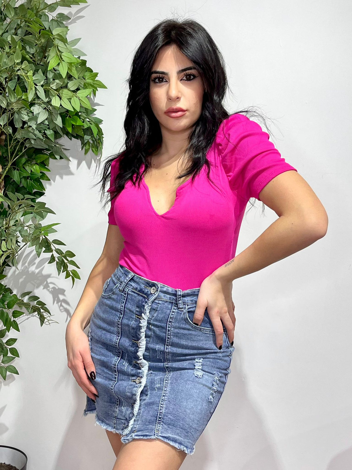Body a costine con coppe preformate e chiusura con ganci sul cavallo. Fabbricato all'estero.