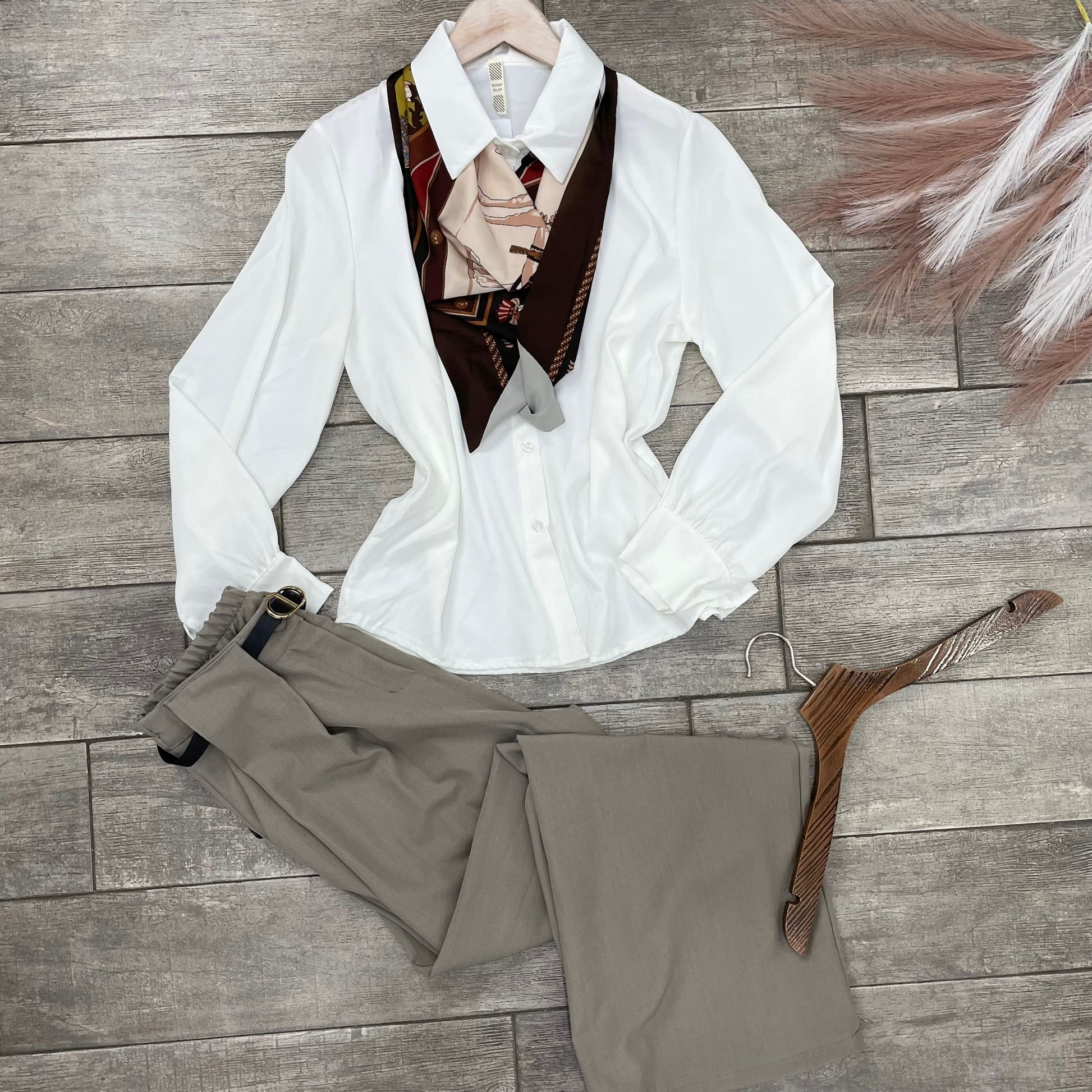 Camicia classica con bottoni centrali , con foulard incluso.