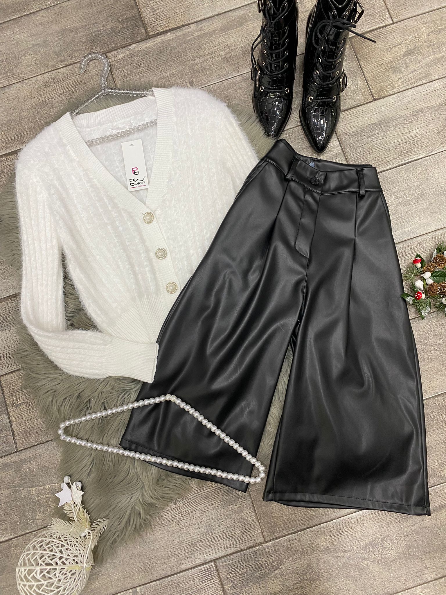 Cardigan in maglia effetto pelliccia con bottoni con perle.