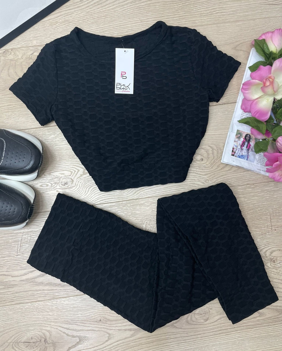 Completo maglia - pantalone in tessuto strutturato, tinta unita. Fabbricato in Italia.