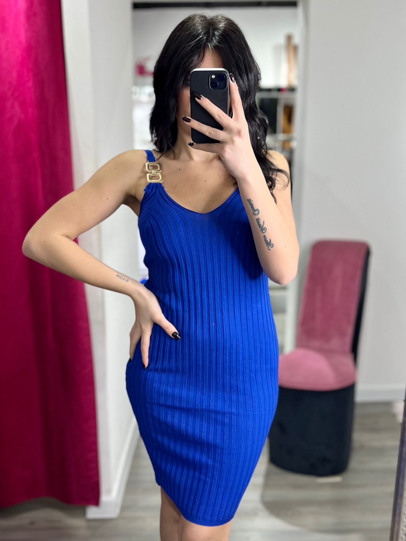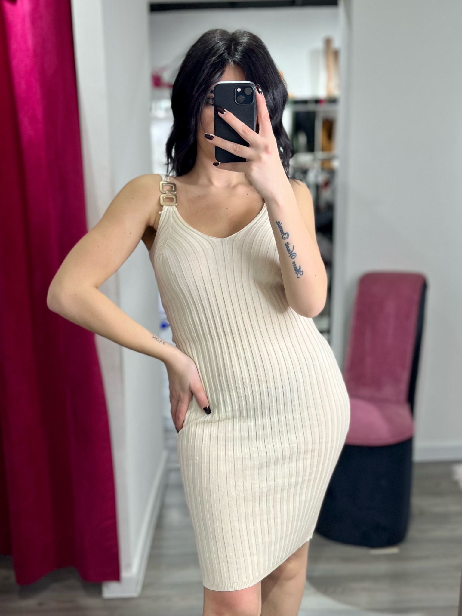 Abito a costine con applicazione di catena nelle spalline. Fabbricato all'estero.