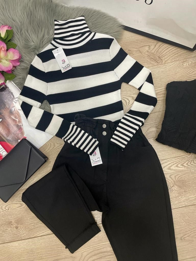Jeans modello mom fit dal lavaggio scuro o nero con vita a caramella. La vestibilità delle taglie risulta regolare. Fabbricato all'estero.