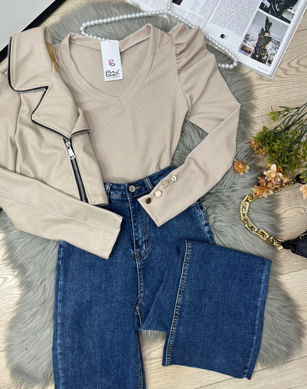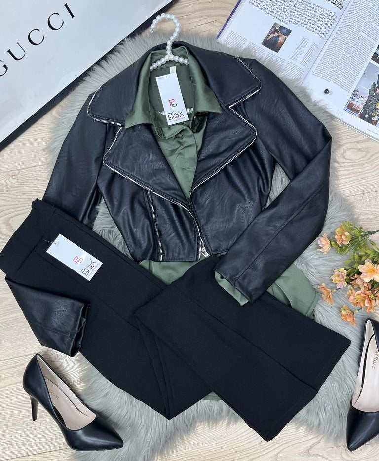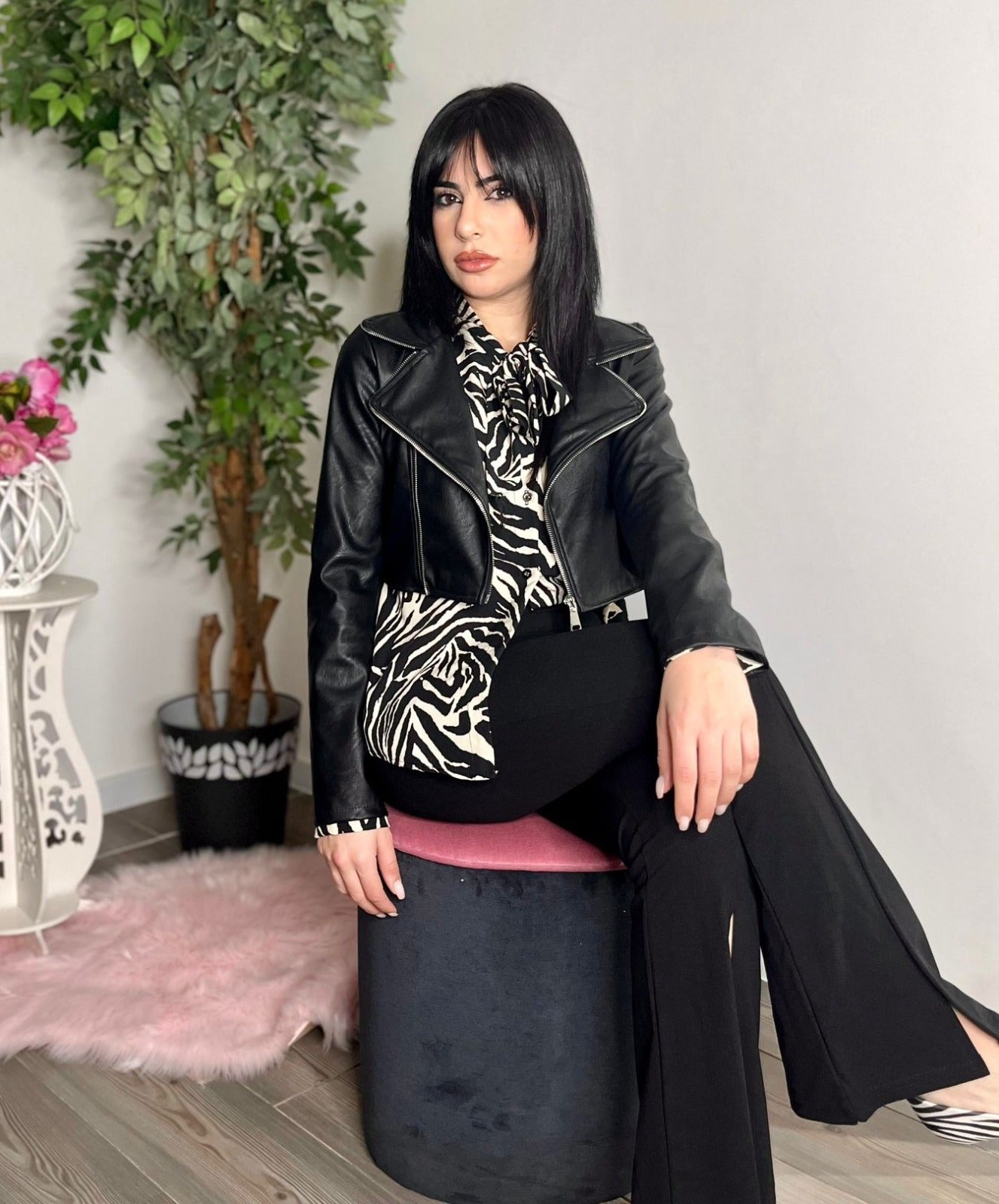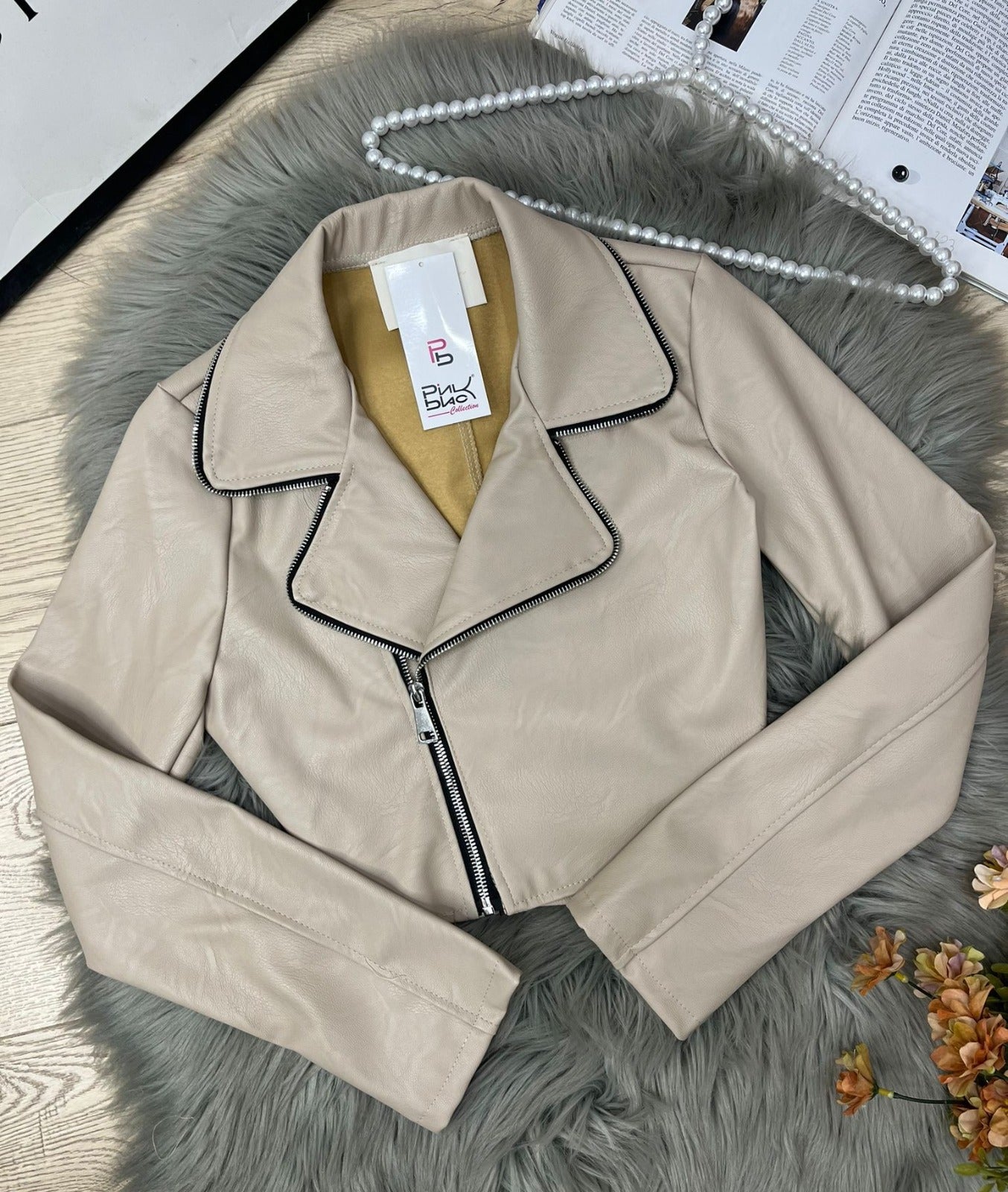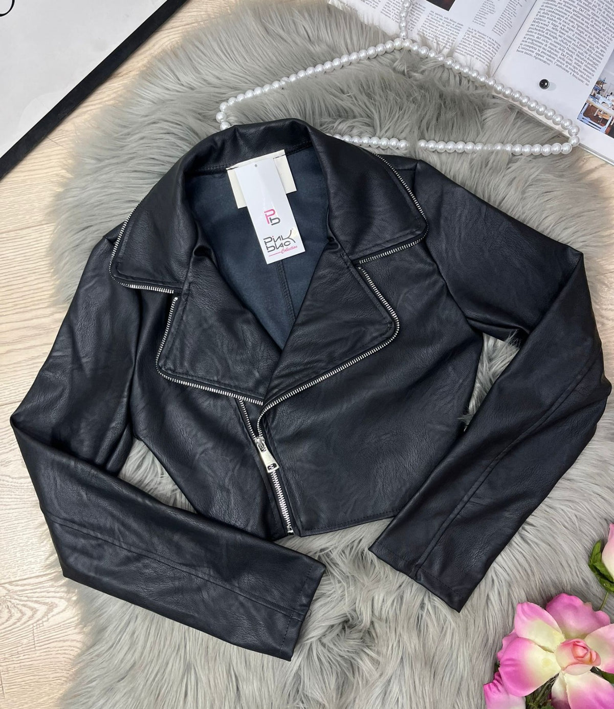 Giubbino in ecopelle modello corto con zip. La vestibilità delle taglie risulta regolare. Fabbricato in Italia.
