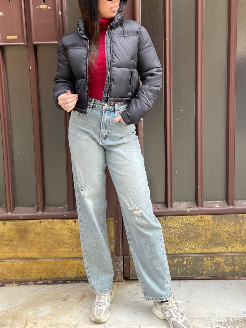 Giubbotto effetto piumino crop con cerniera centrale e tasche laterali