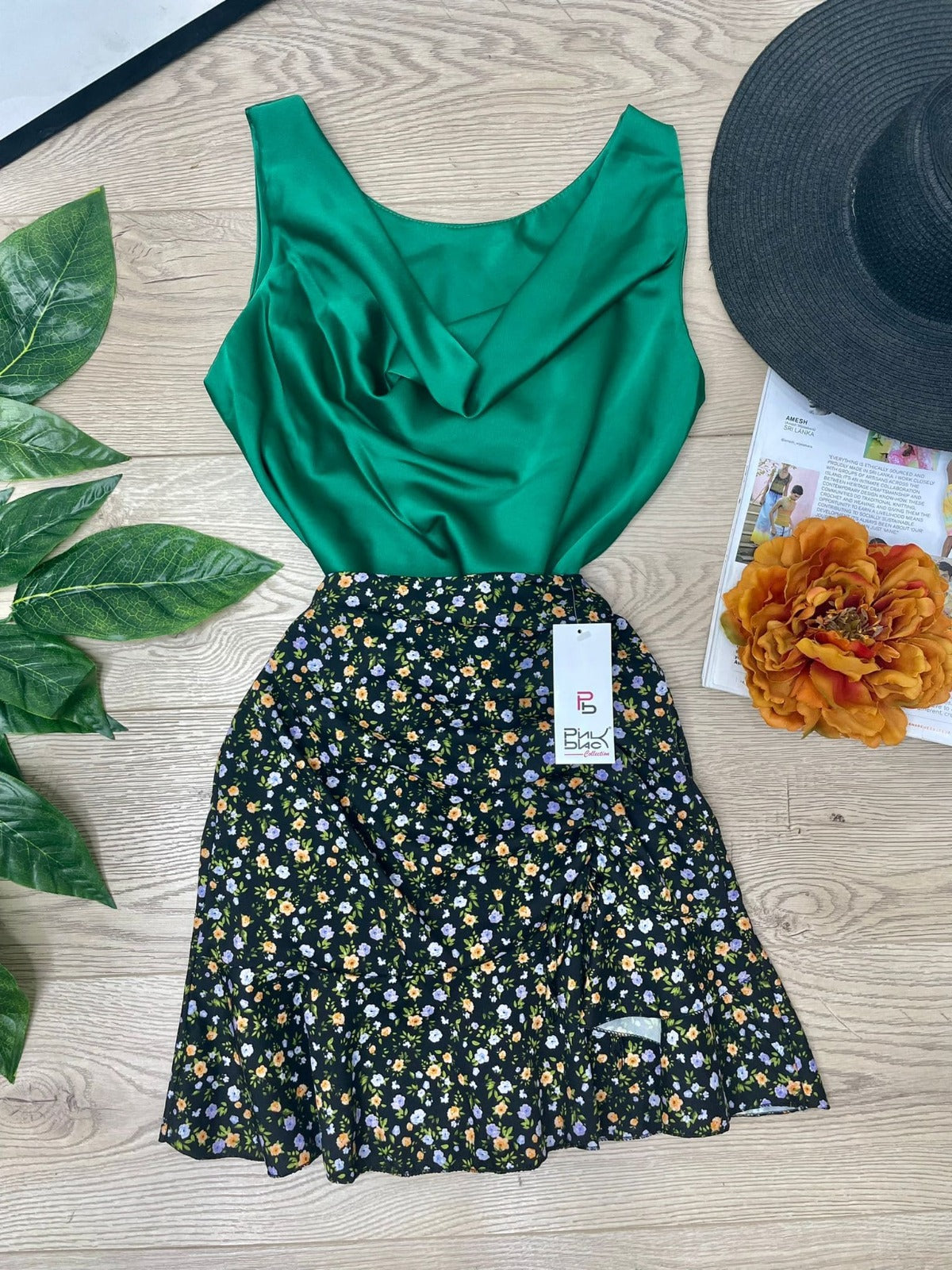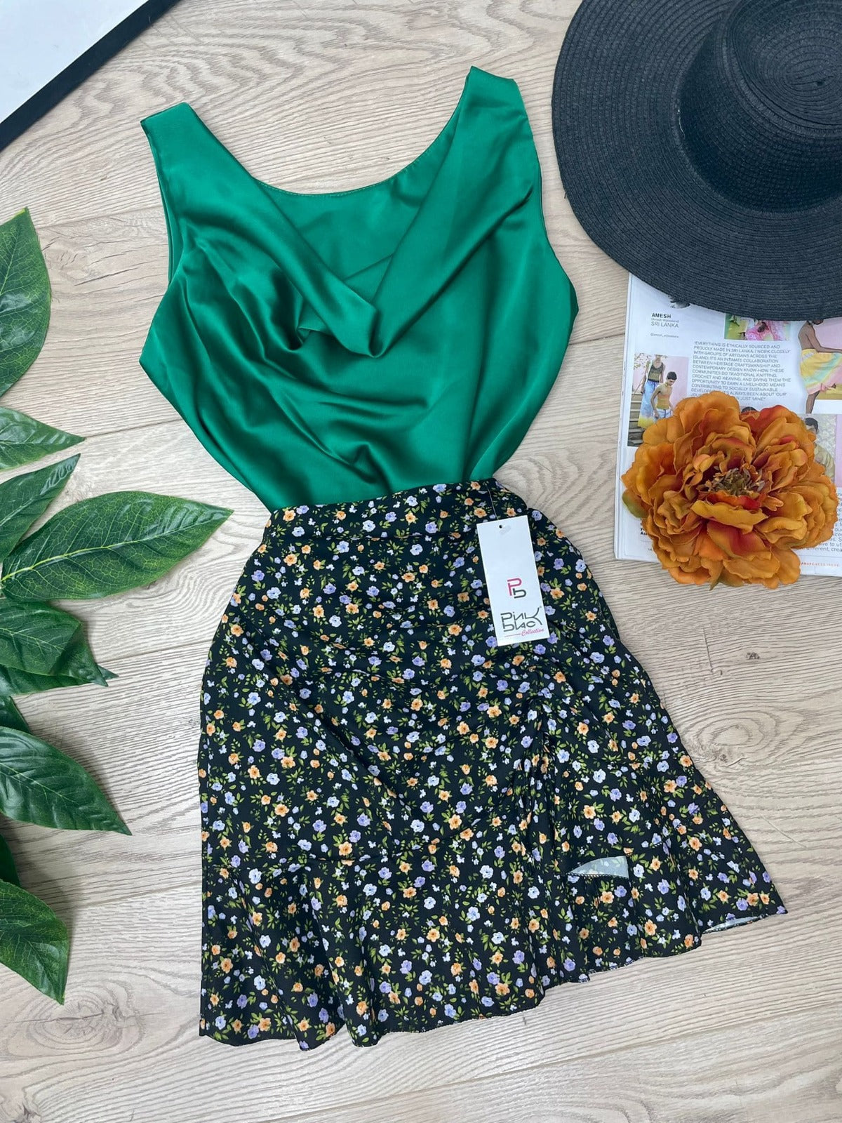 Gonna a portafoglio in leggero tessuto strutturato con fantasia floreale, drappeggio, volant e chiusura posteriore con cerniera. Fabbricato in Italia.