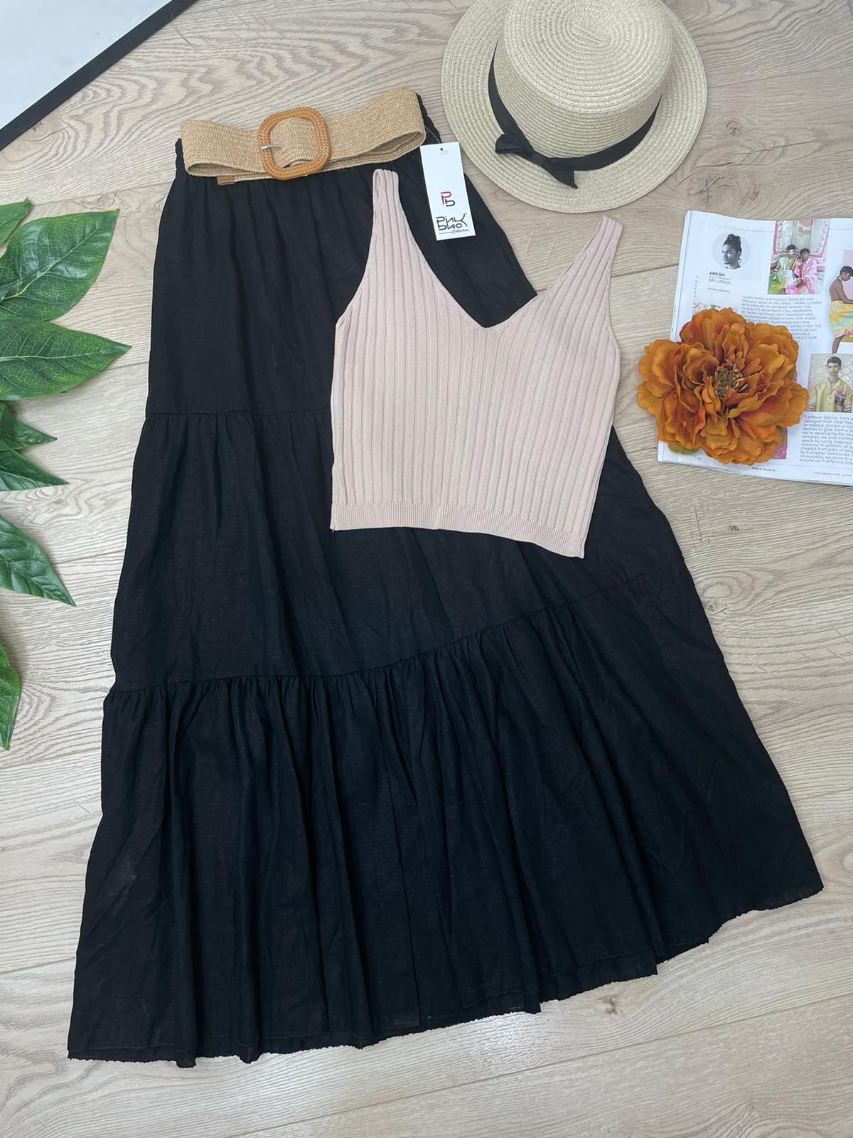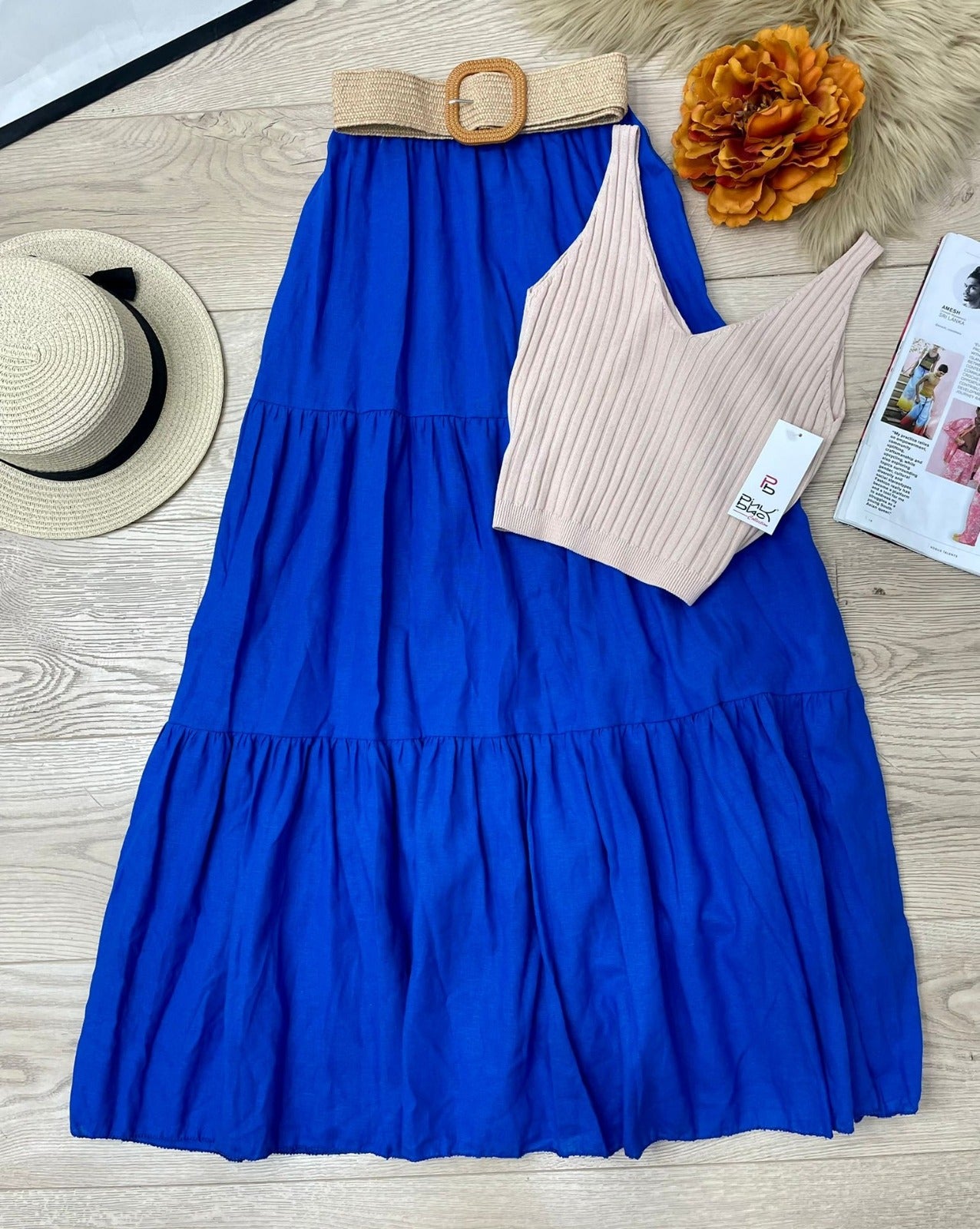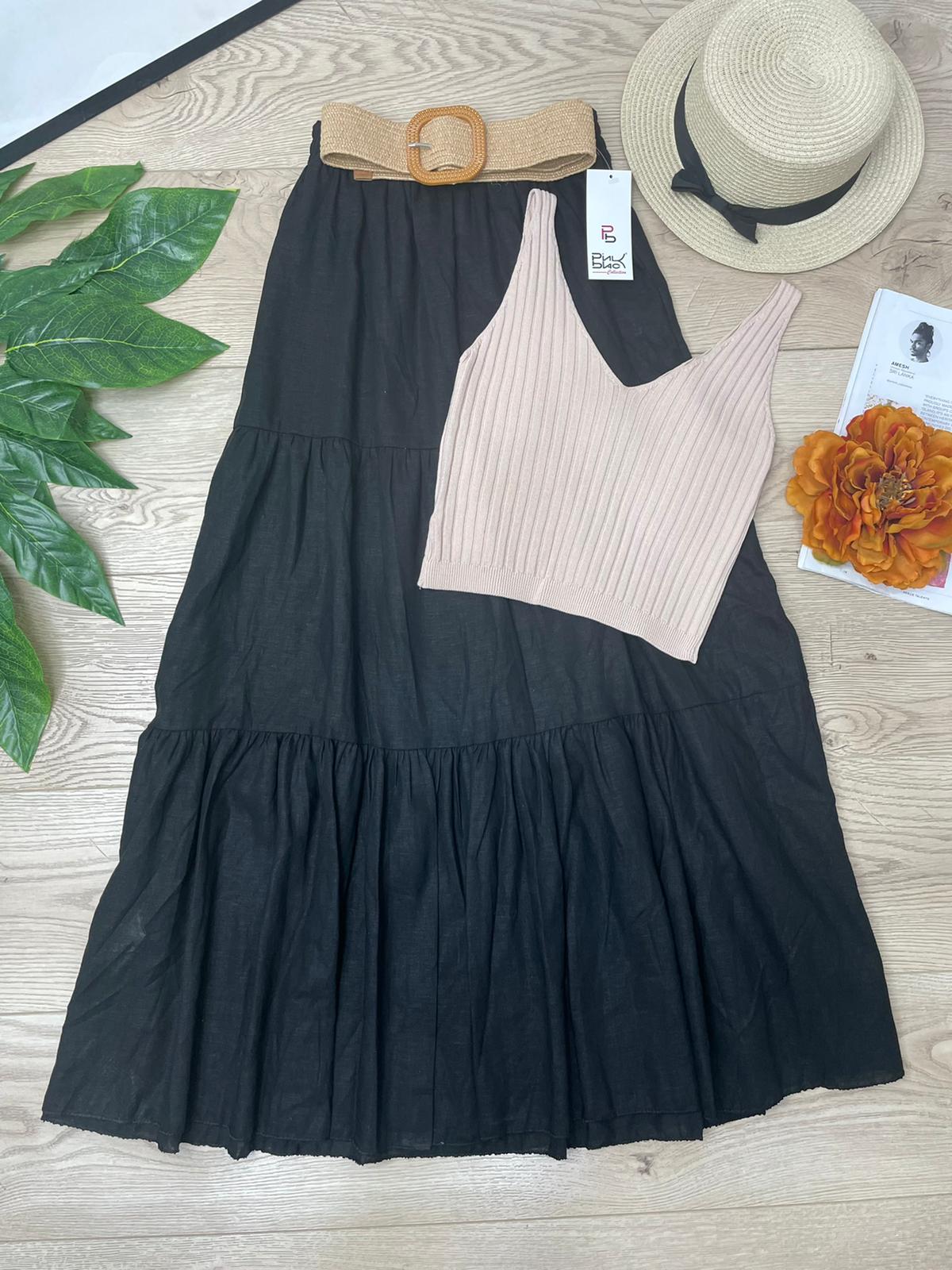Gonna lunga con fascia elastica in vita e cintura inclusa. Fabbricato in Italia.